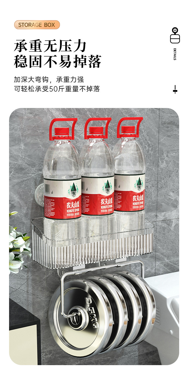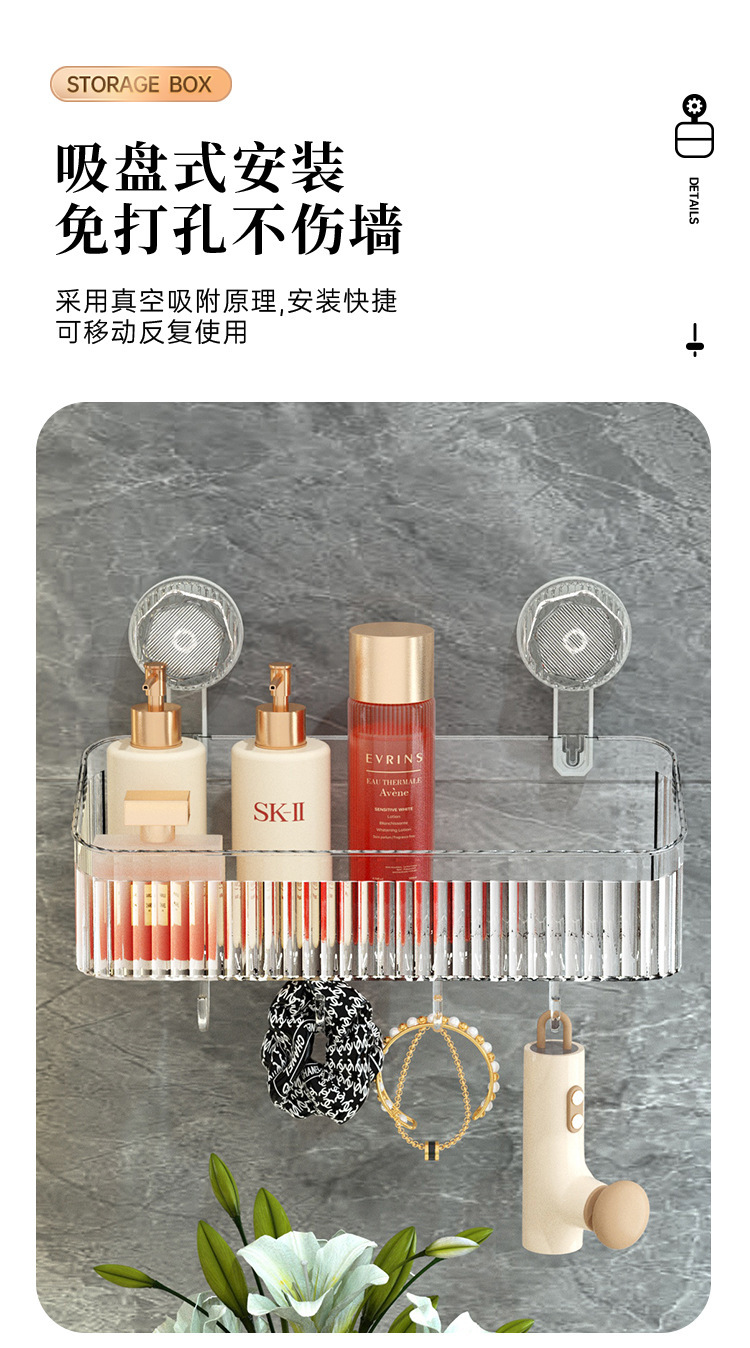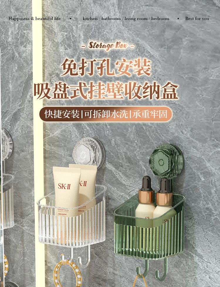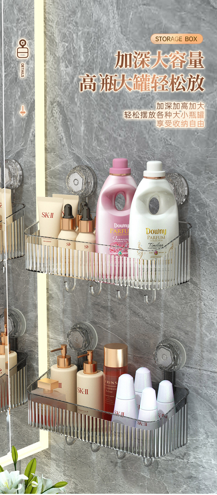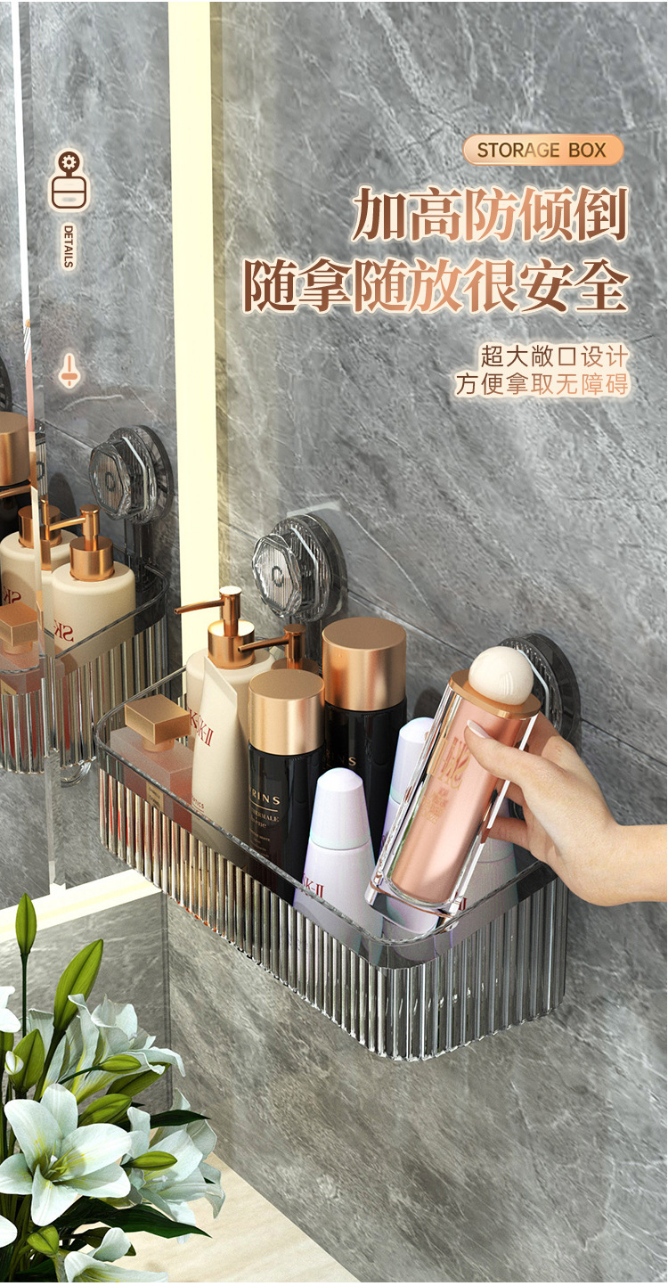 家用壁挂式卫生间置物架厕所免打孔吸盘收纳架浴室挂壁洗漱台支架