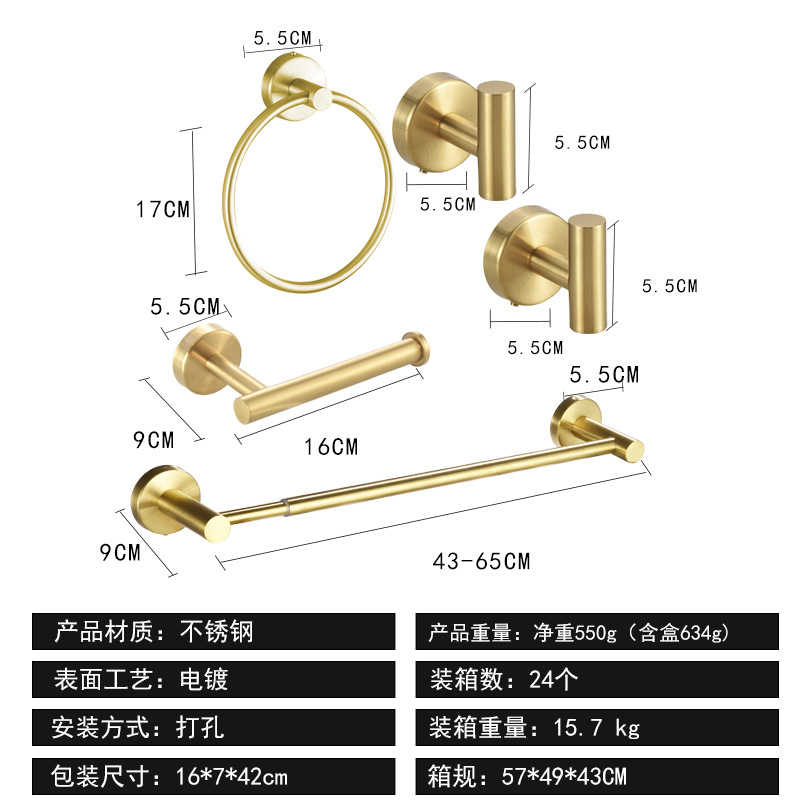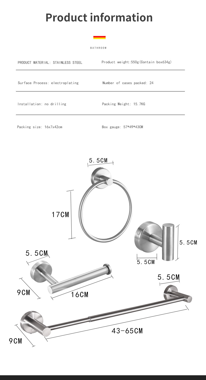跨境免打孔毛巾架浴室卫生间毛巾杆壁挂不锈钢浴巾架伸缩毛巾挂架