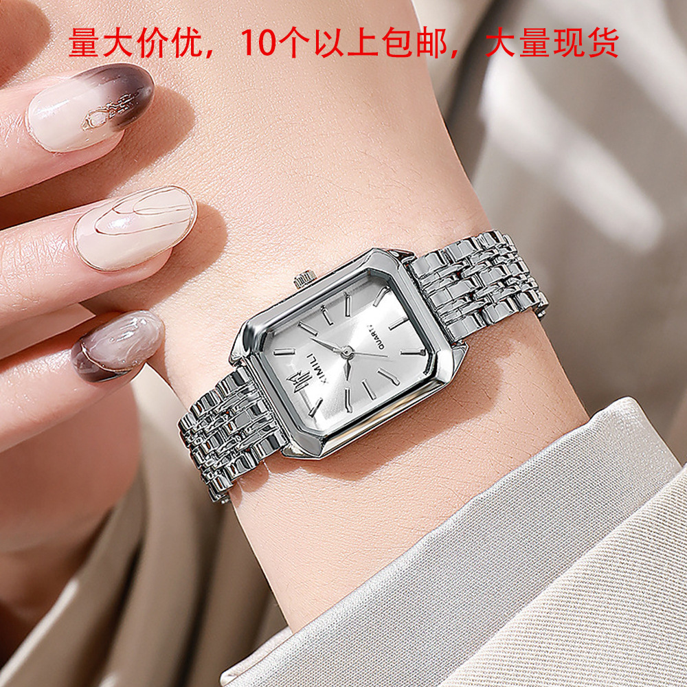 直播引流新款轻奢合金钢带女士手表 女学生时尚方形石英腕 表批发