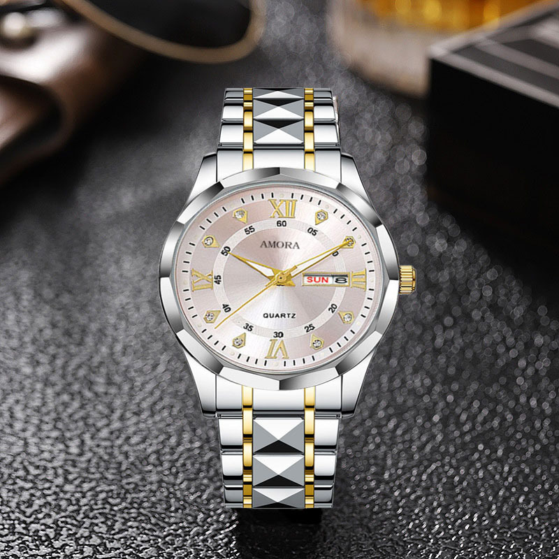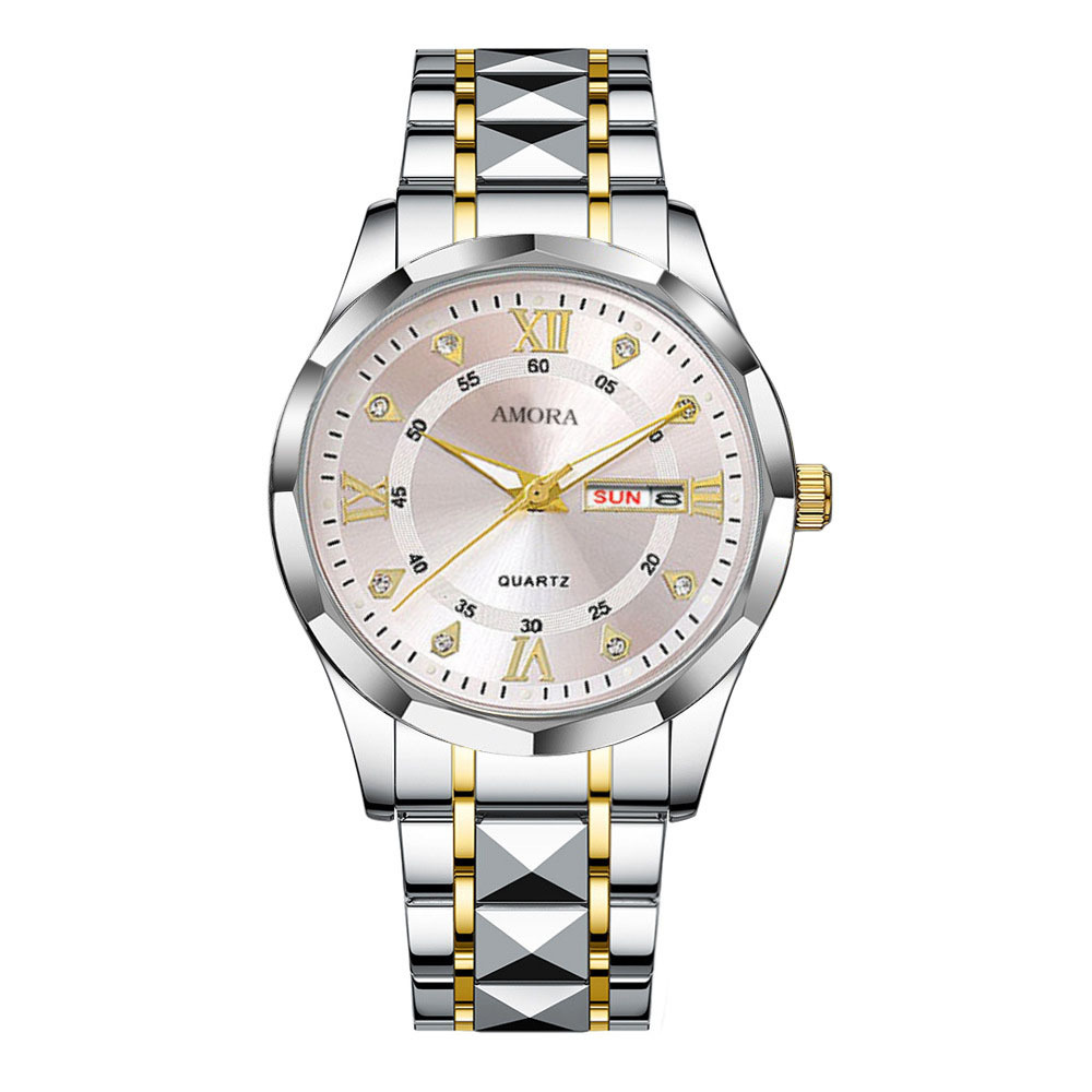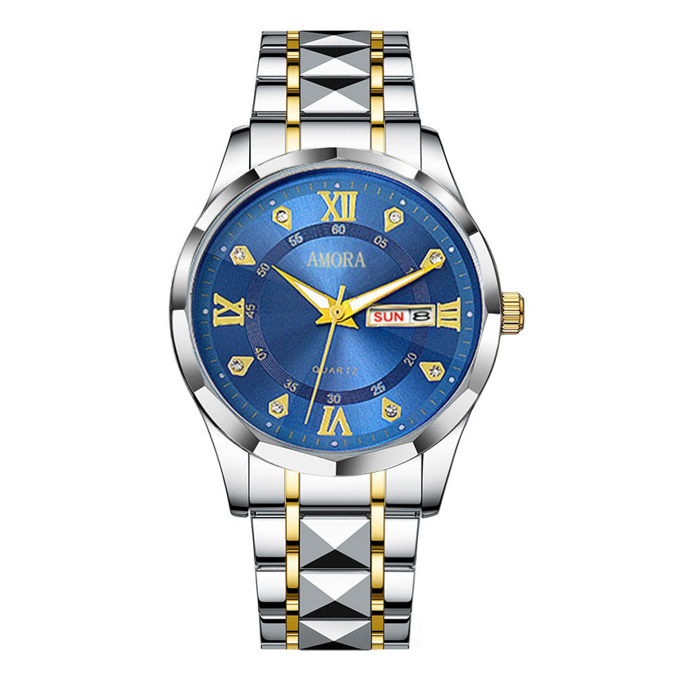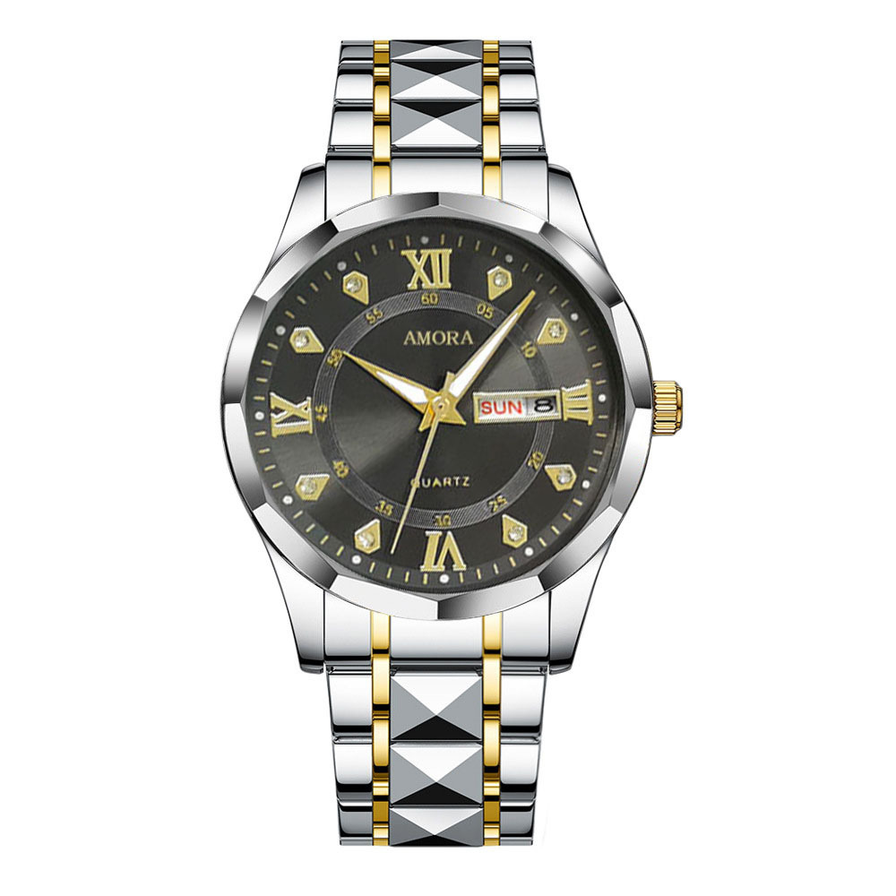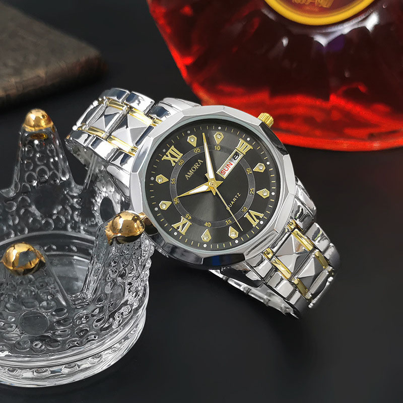 香仕漫跨境男士手表防水夜光双日历手表男款全自动石英表菱形腕表