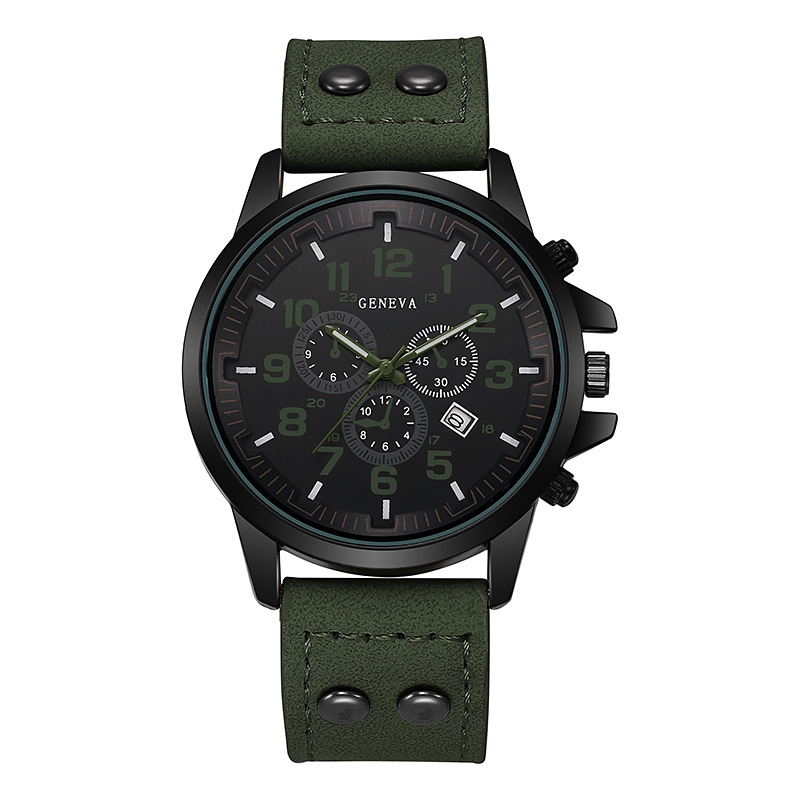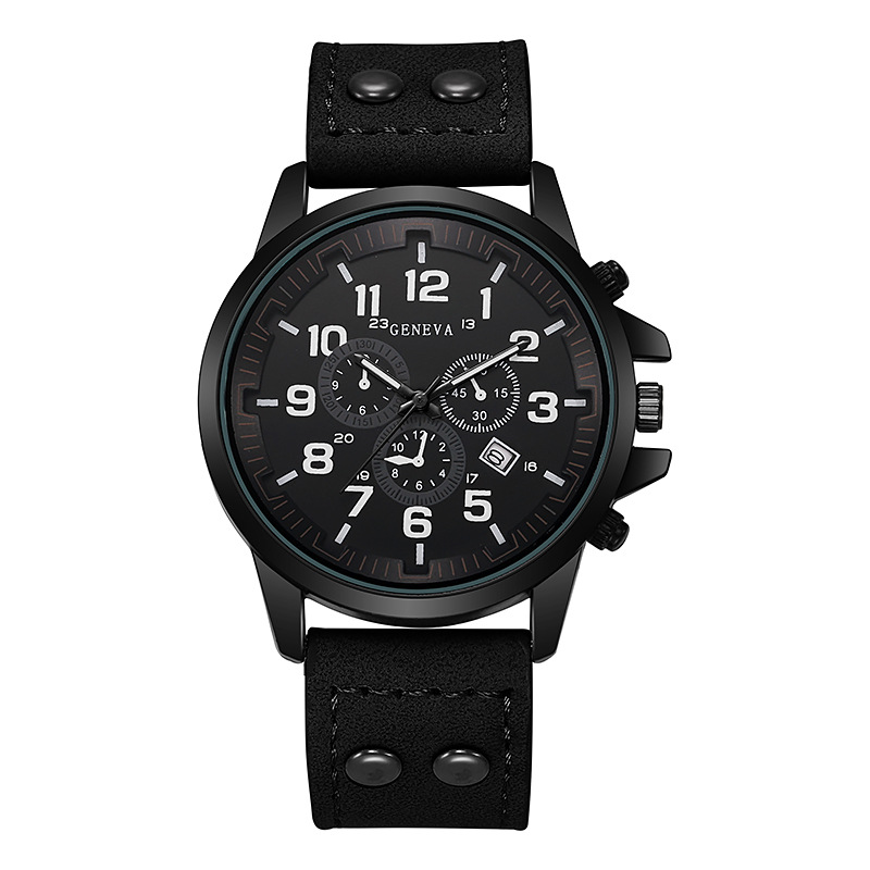 跨境热销外贸新款时尚圆形百搭石英手表 欧美大表盘商务休闲腕表