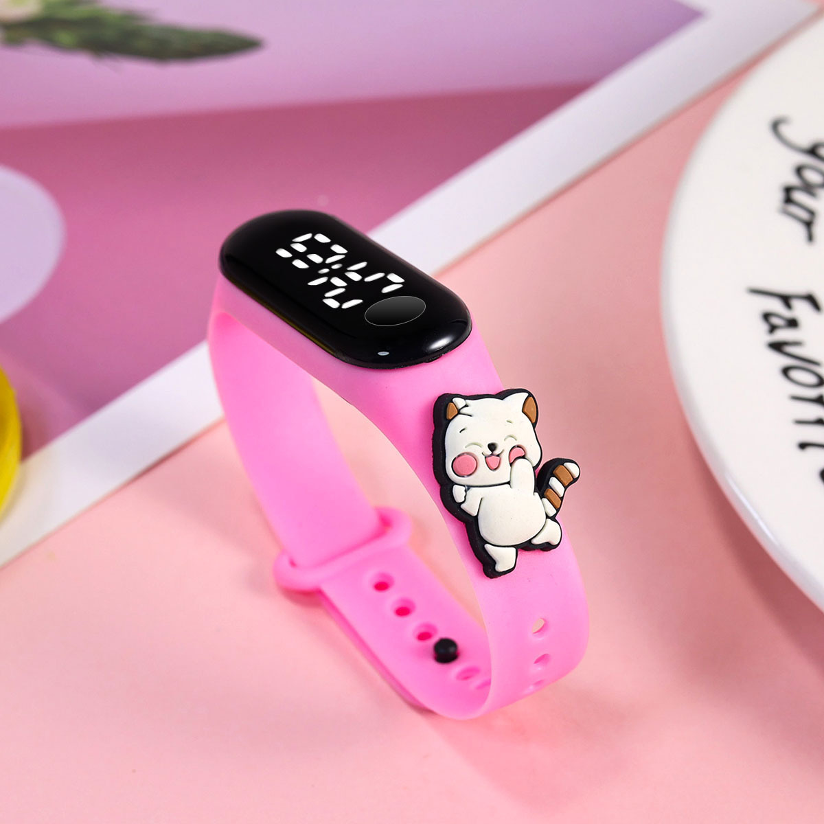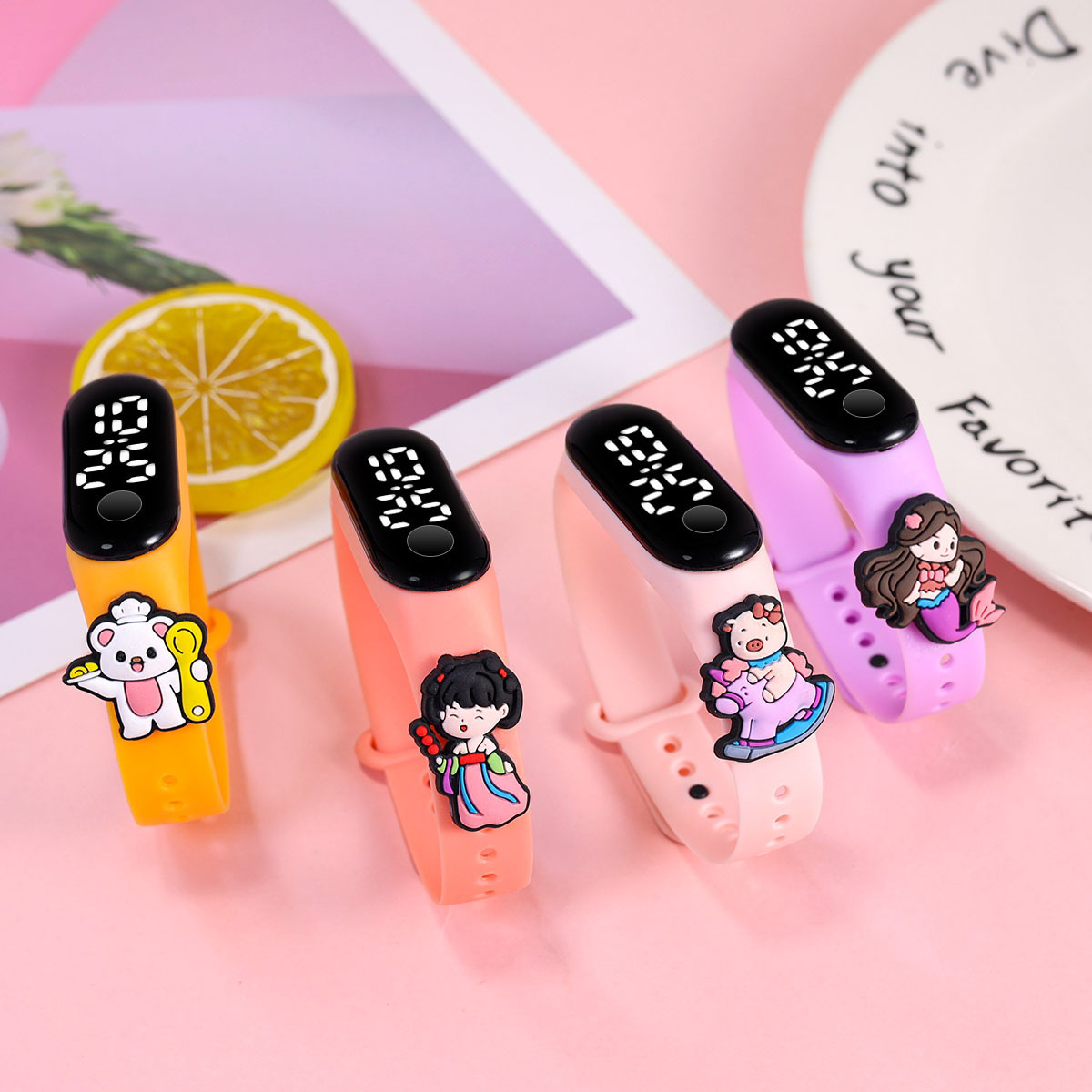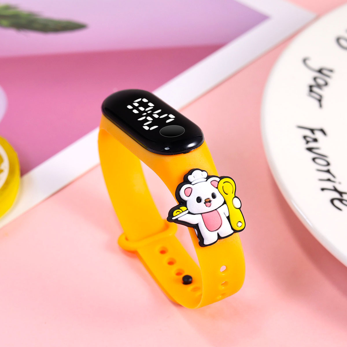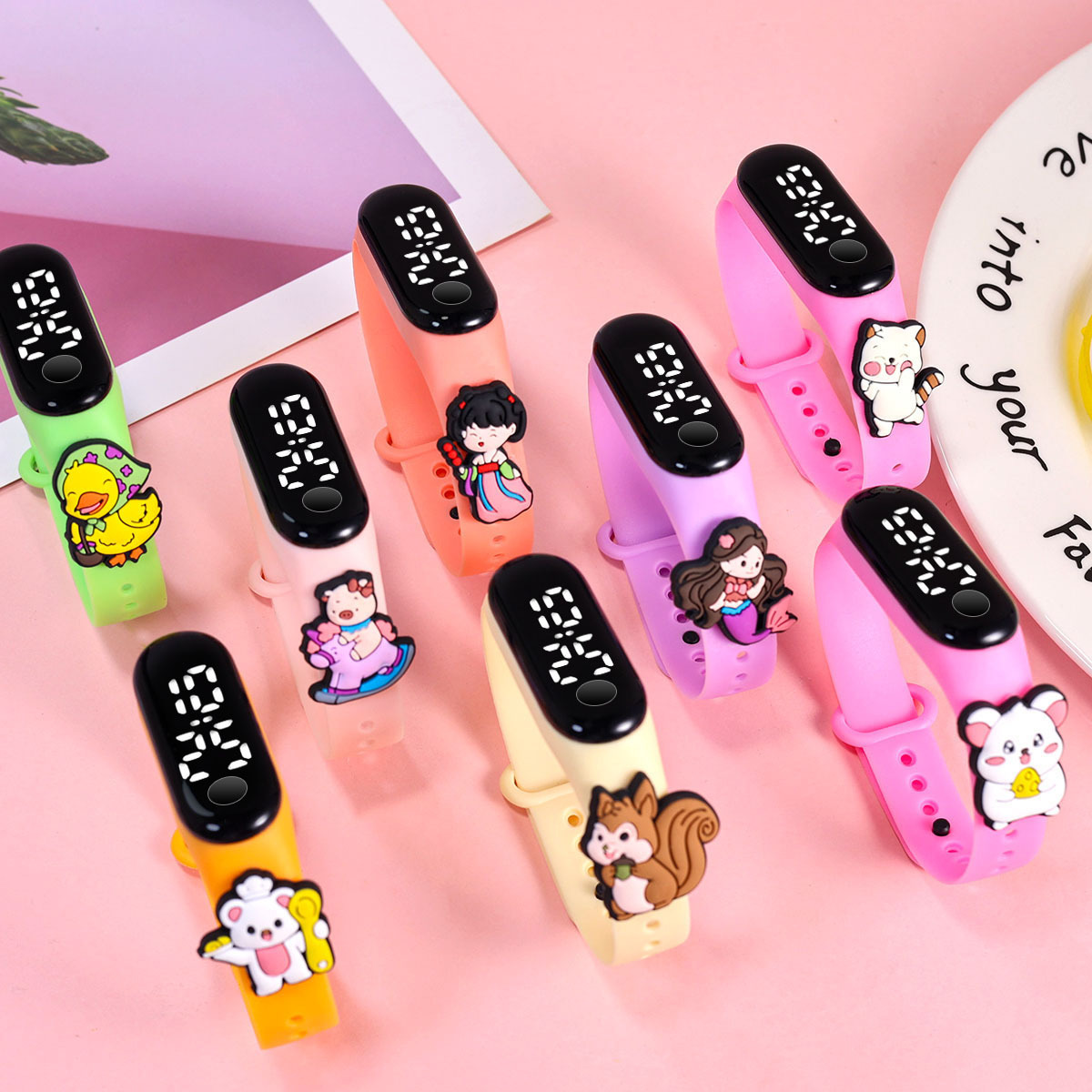新款小学生只看时间电子手表萌趣卡通可爱公仔触屏防水夜光手环表
