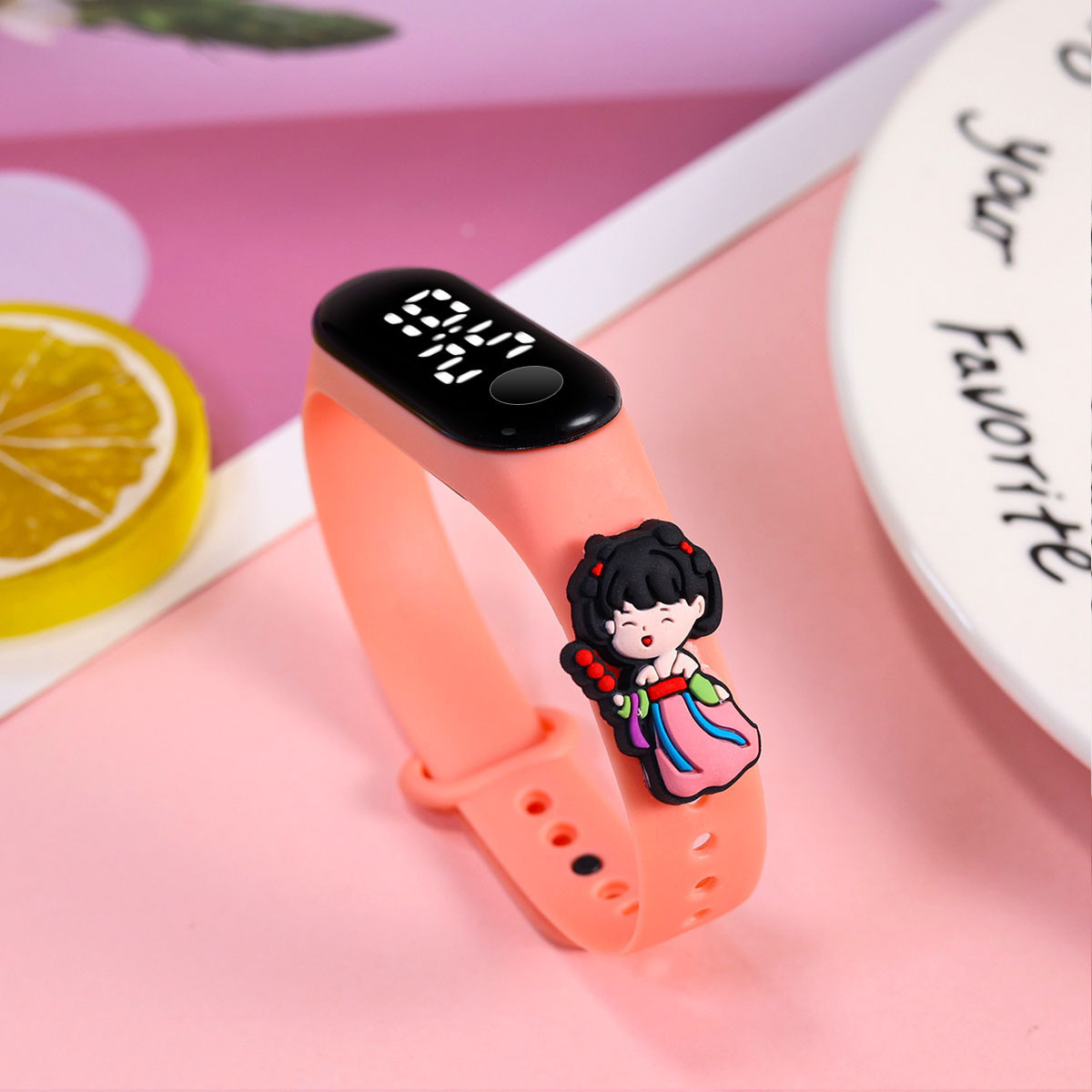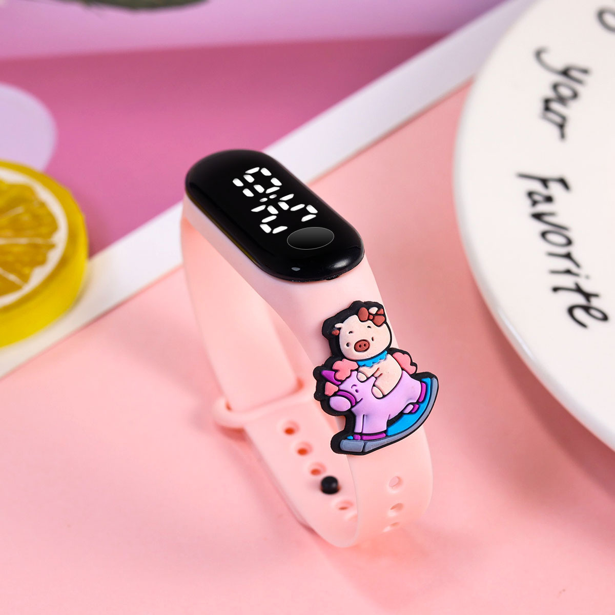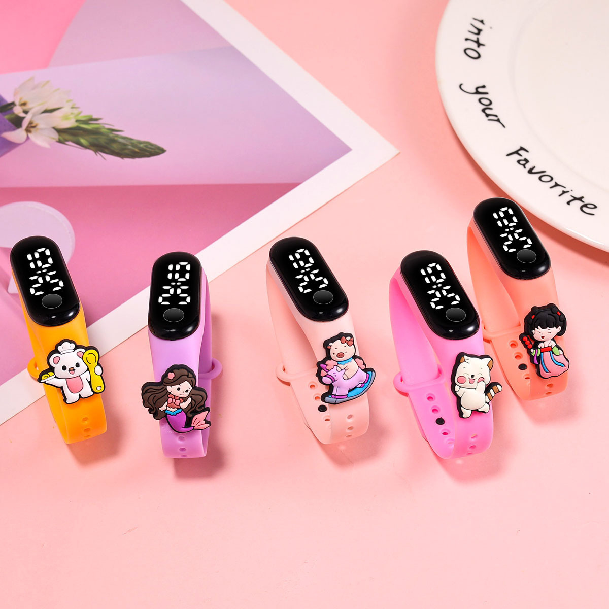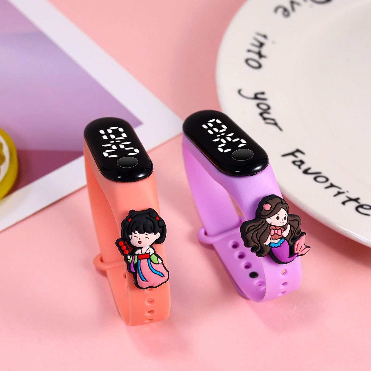 新款小学生只看时间电子手表萌趣卡通可爱公仔触屏防水夜光手环表