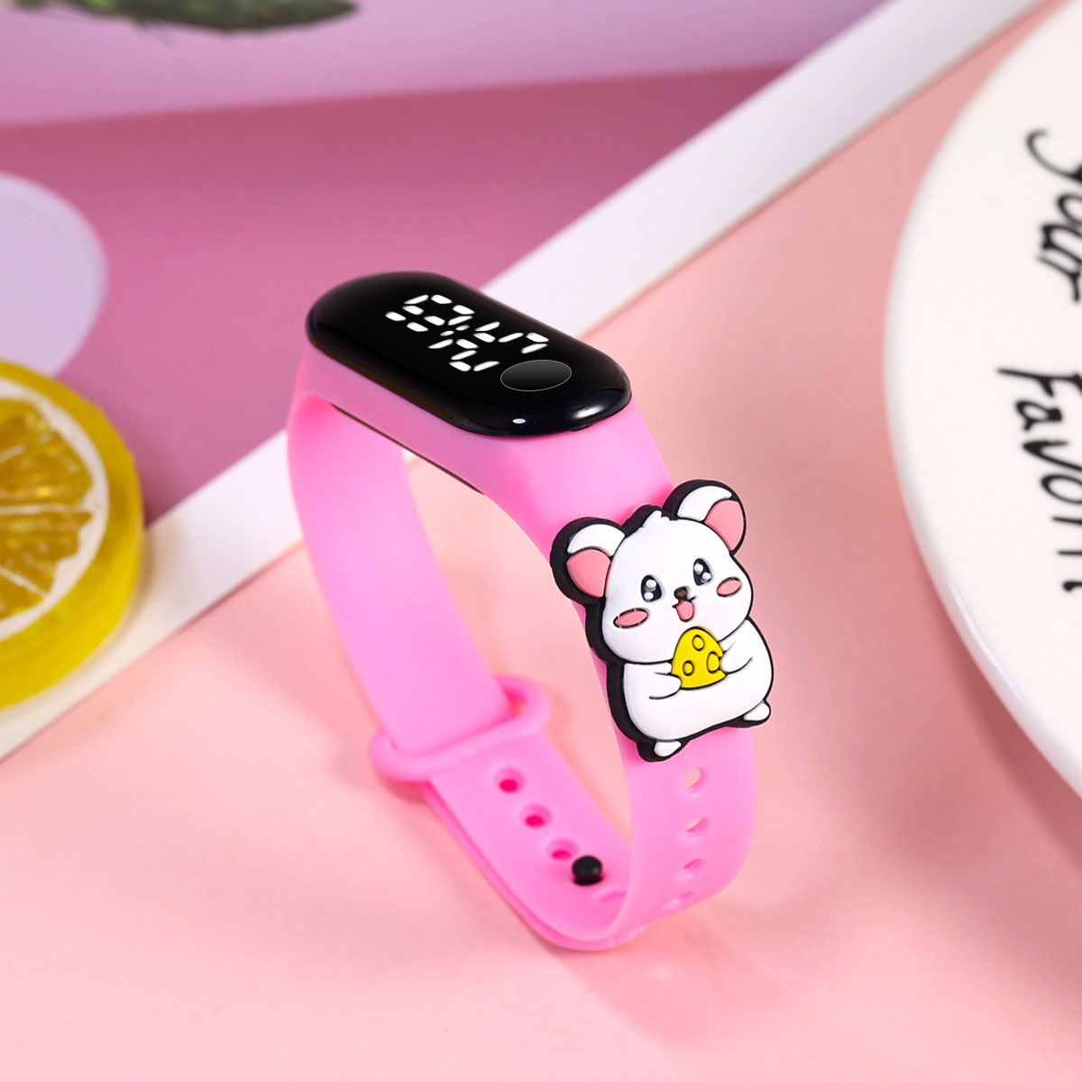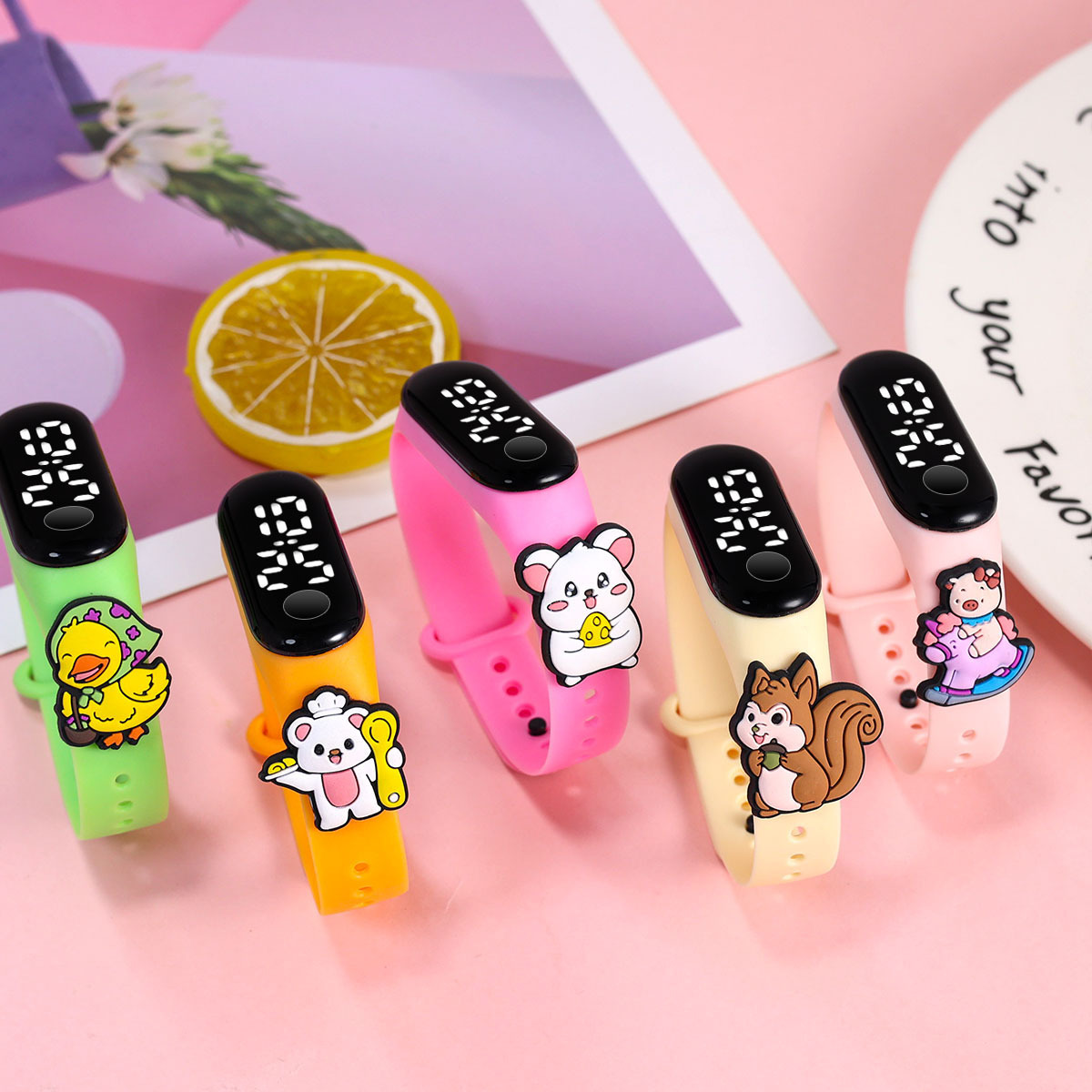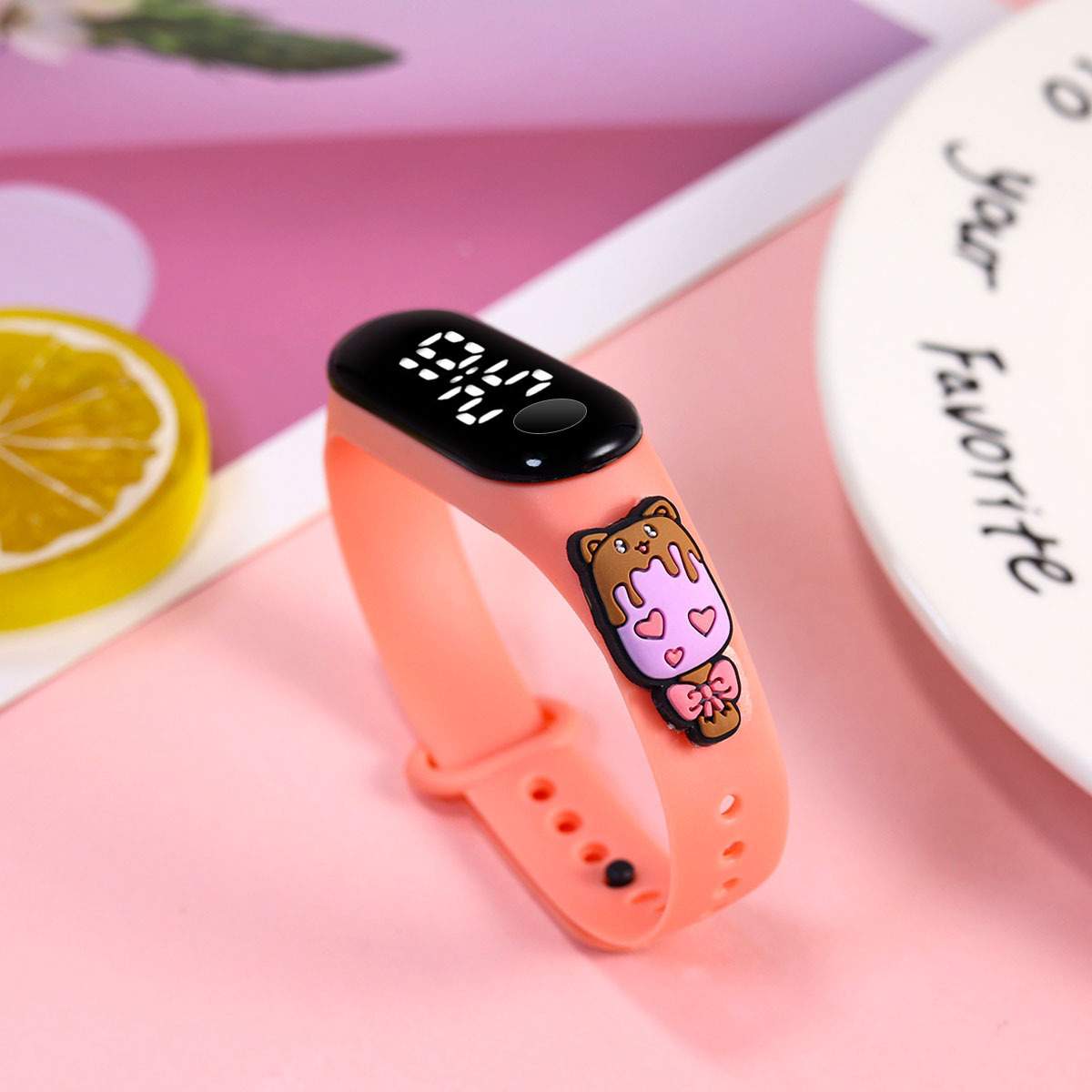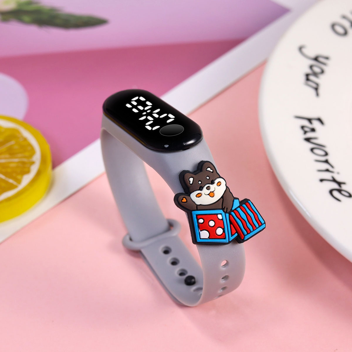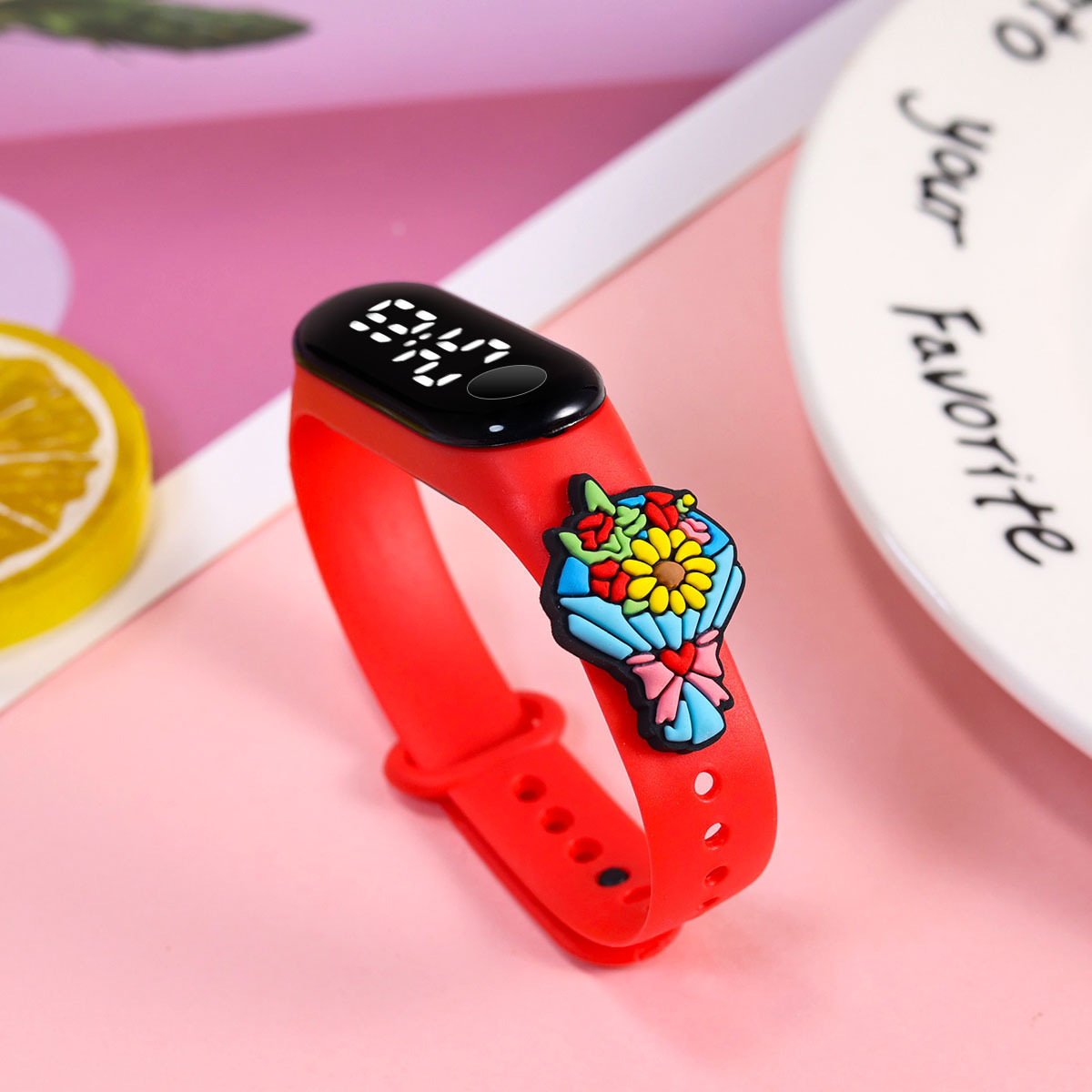 新款小学生只看时间电子手表萌趣卡通可爱公仔触屏防水夜光手环表