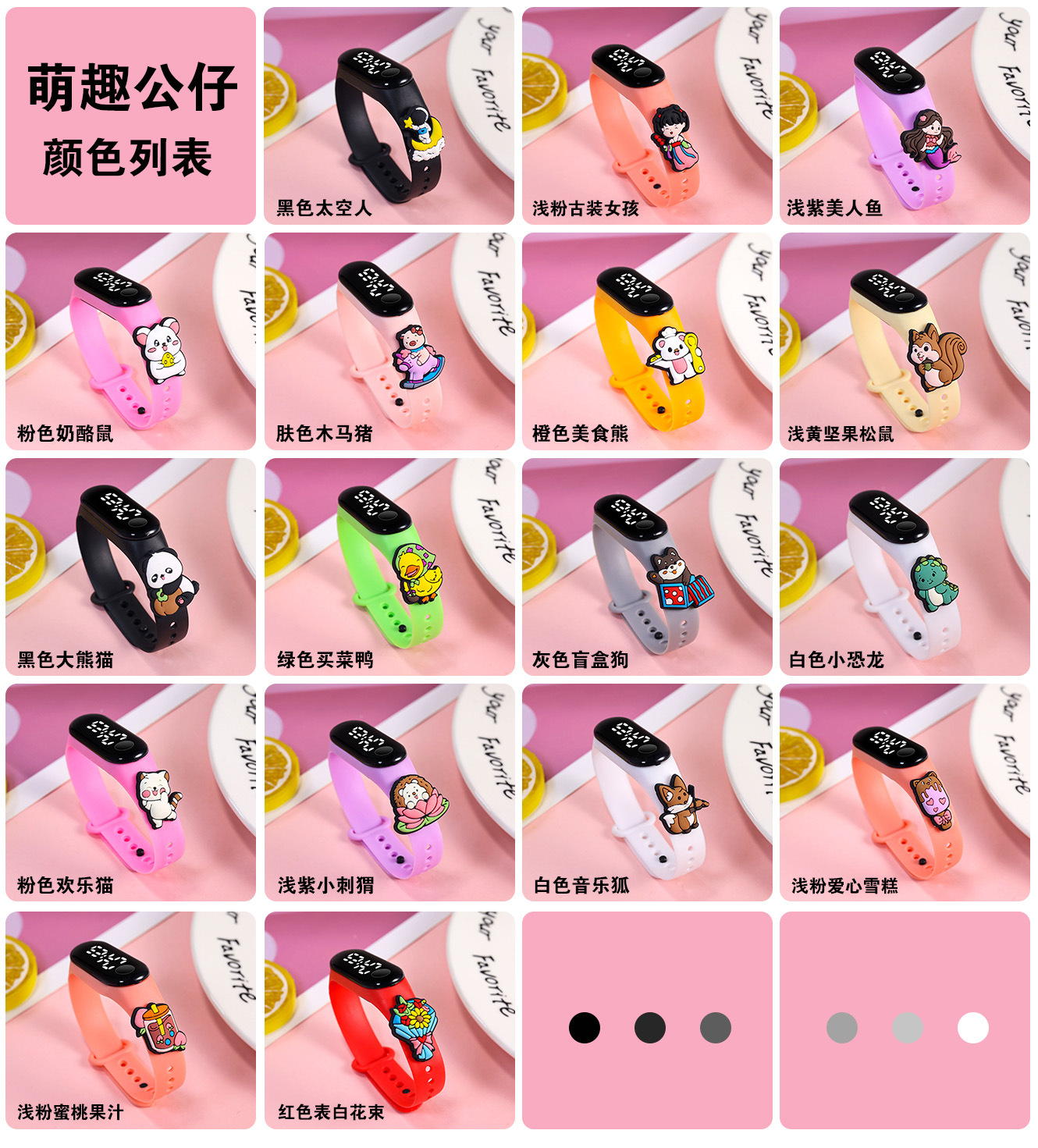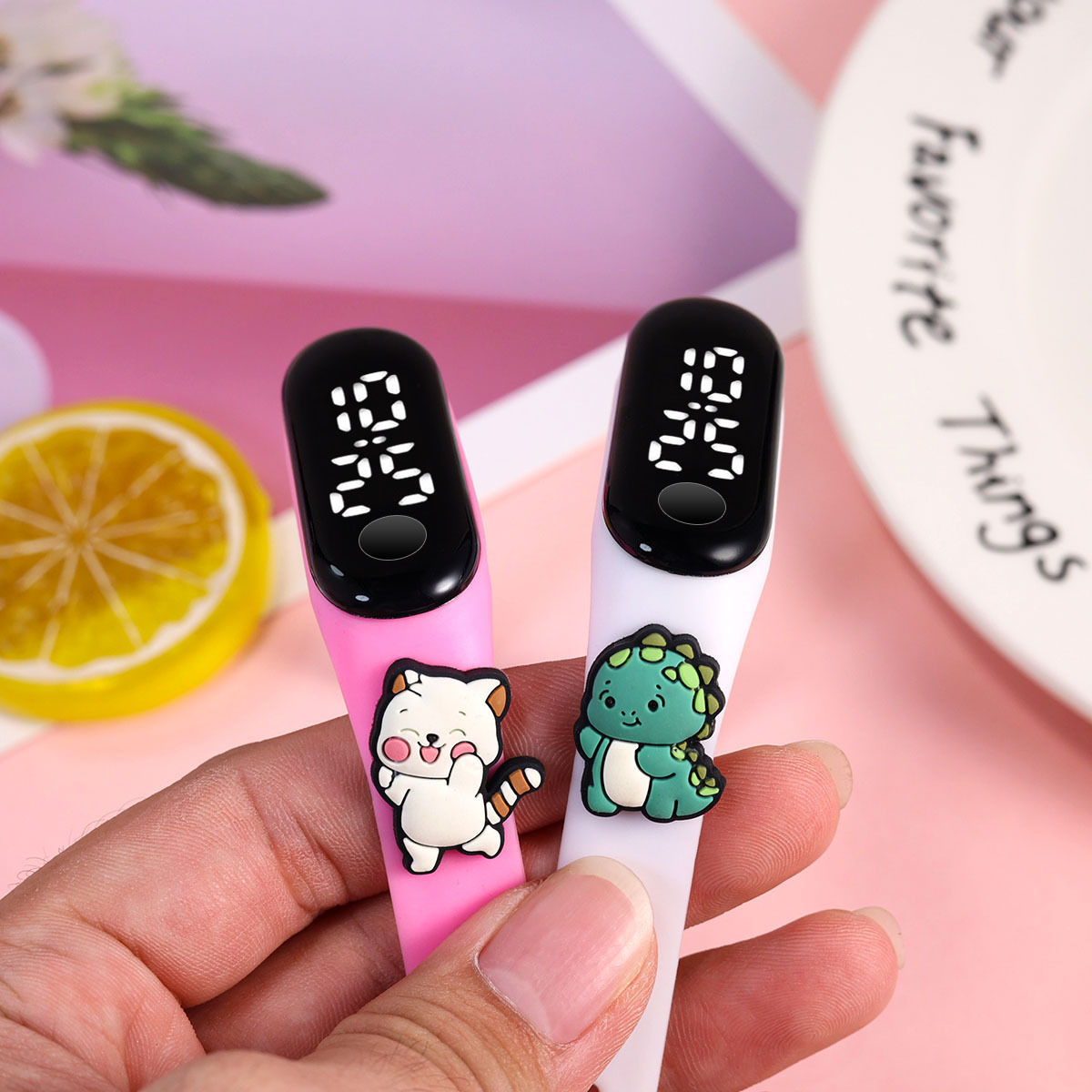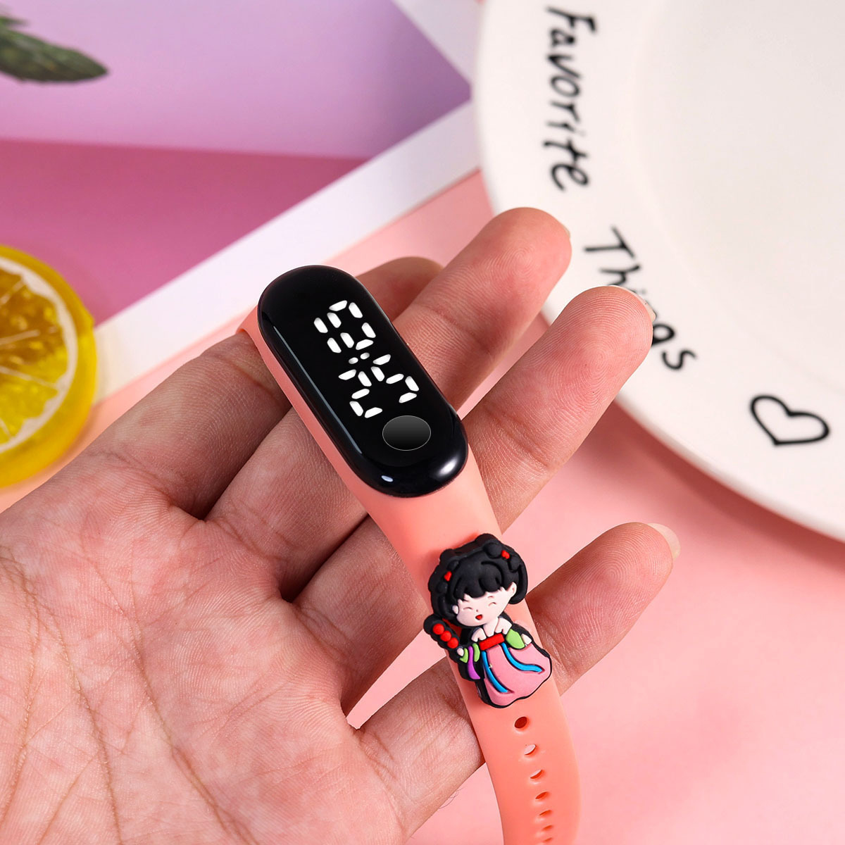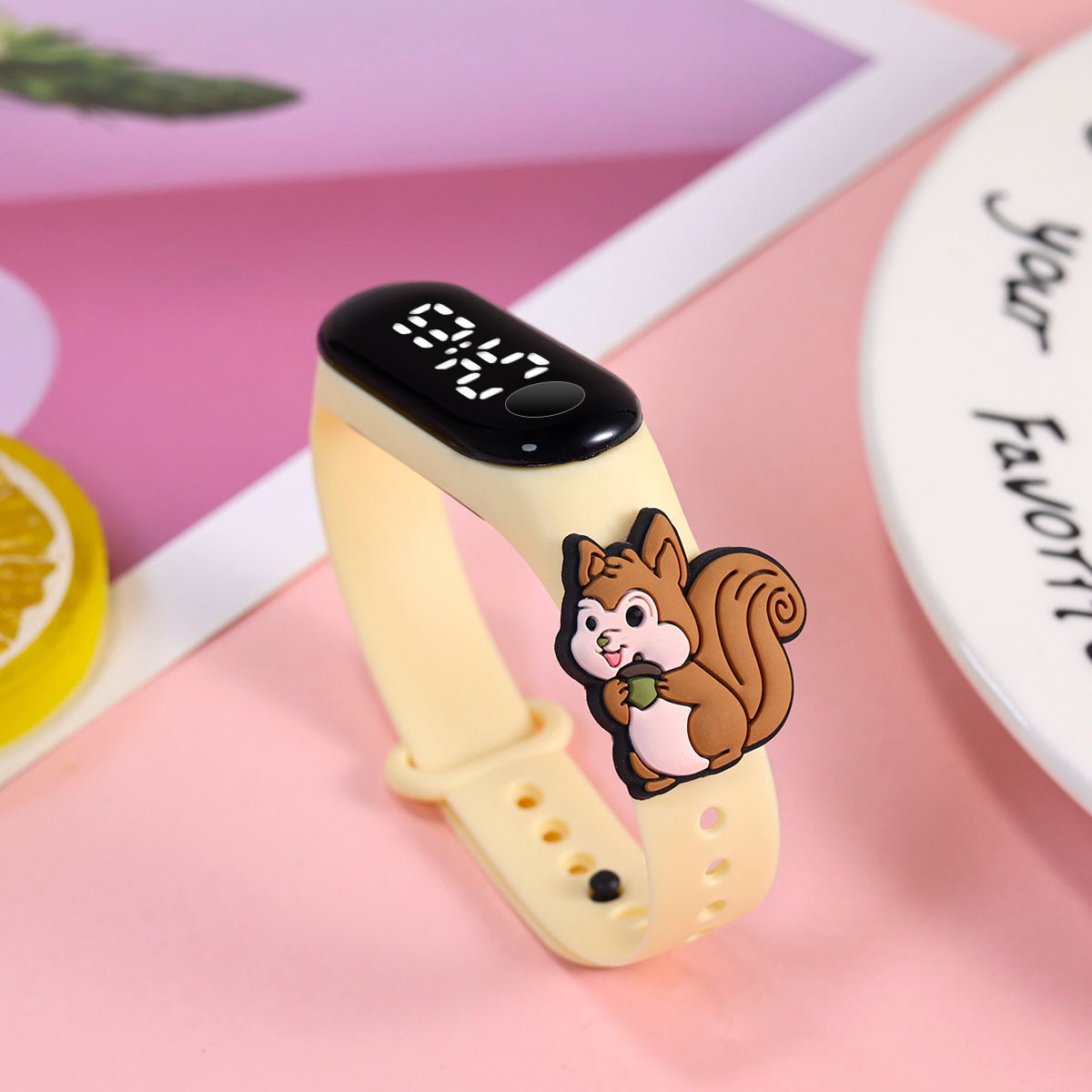 新款小学生只看时间电子手表萌趣卡通可爱公仔触屏防水夜光手环表