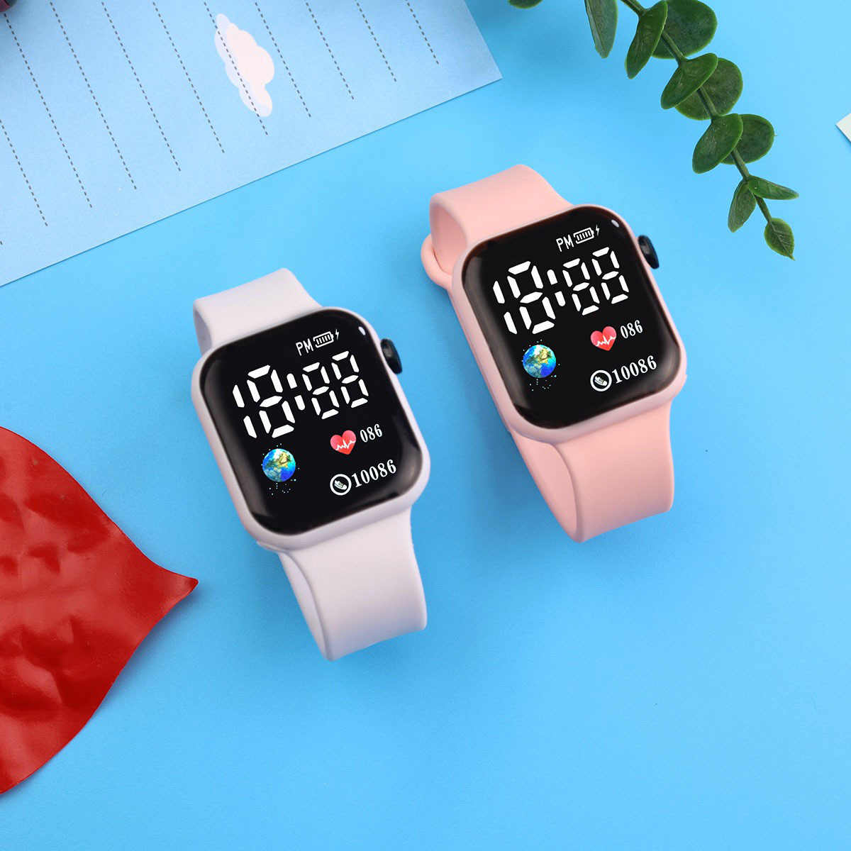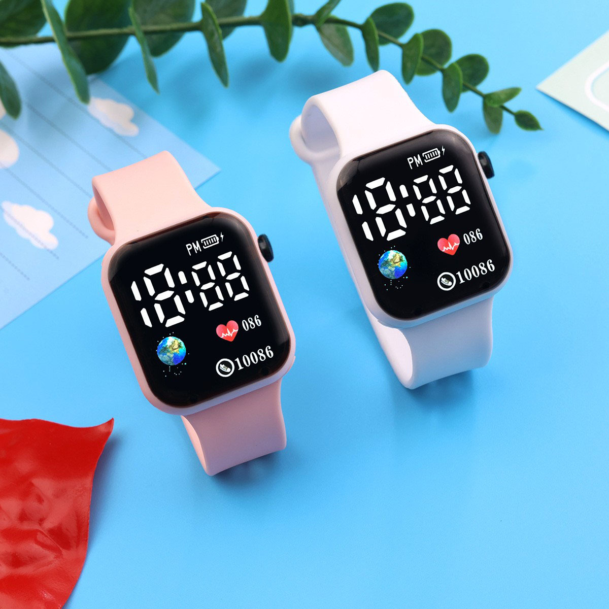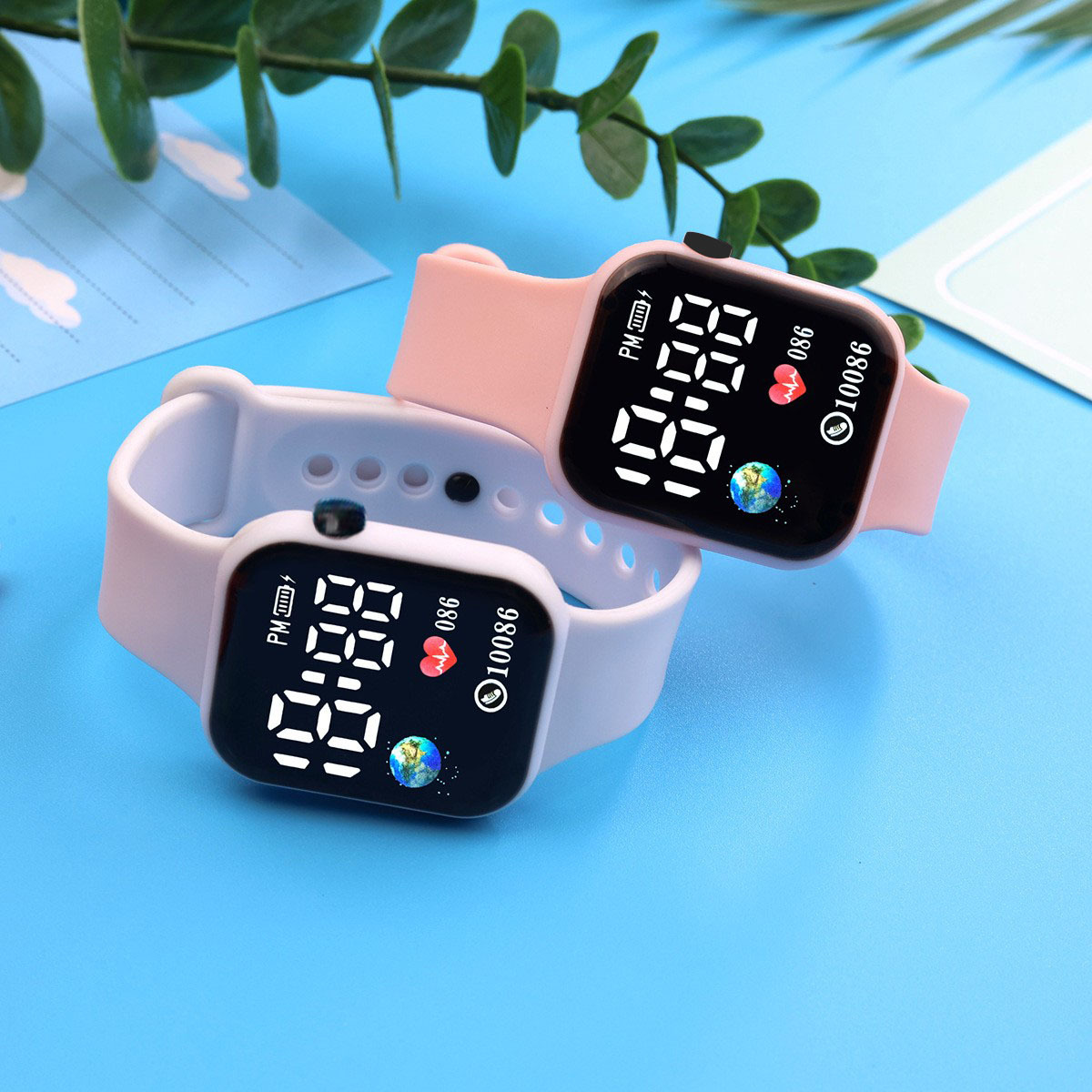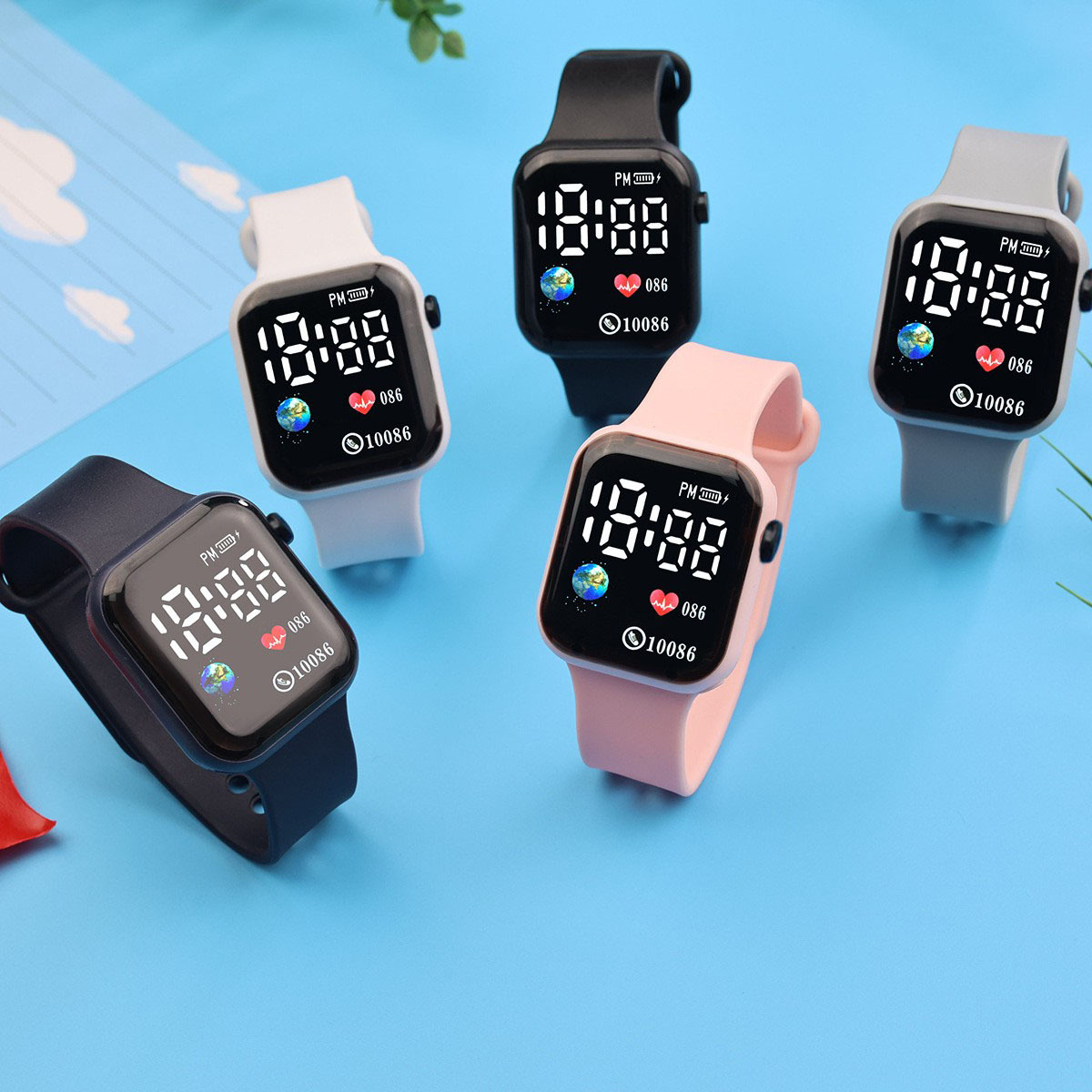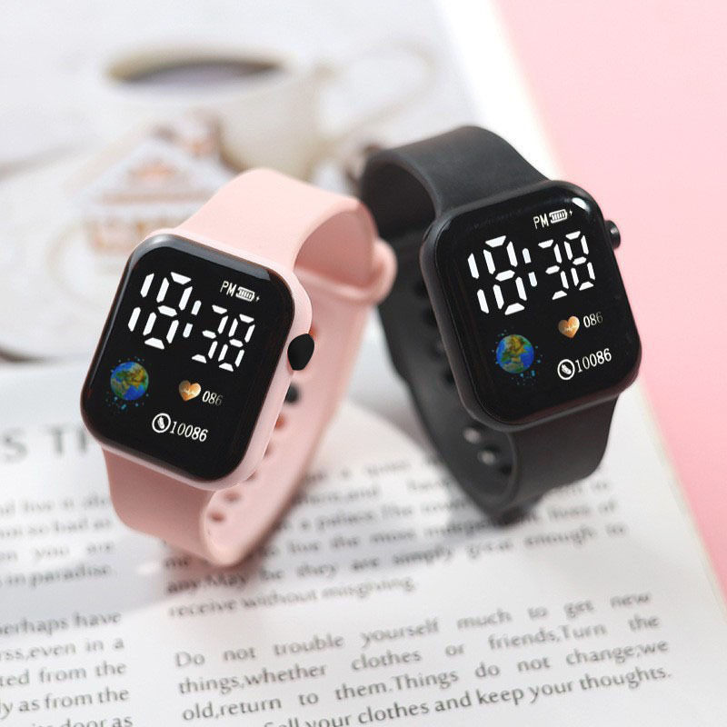 外贸跨境新款LED电子手表方块地球爱心数字情侣学生时尚手表现货
