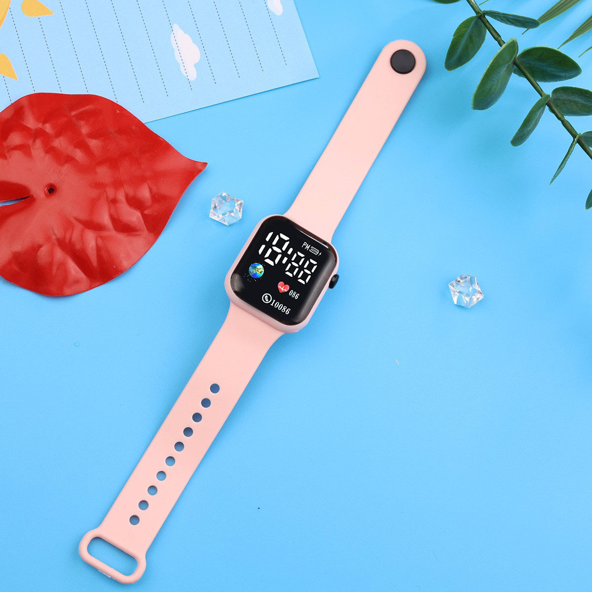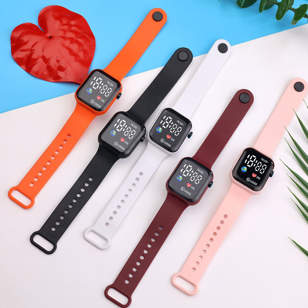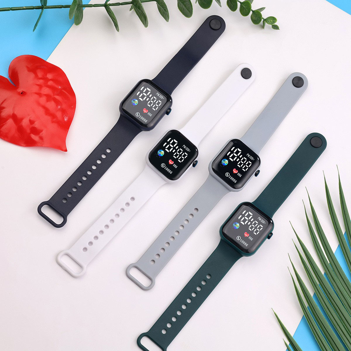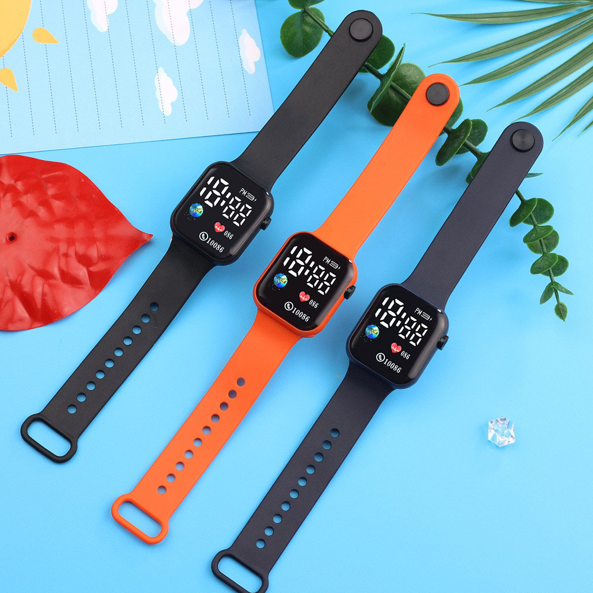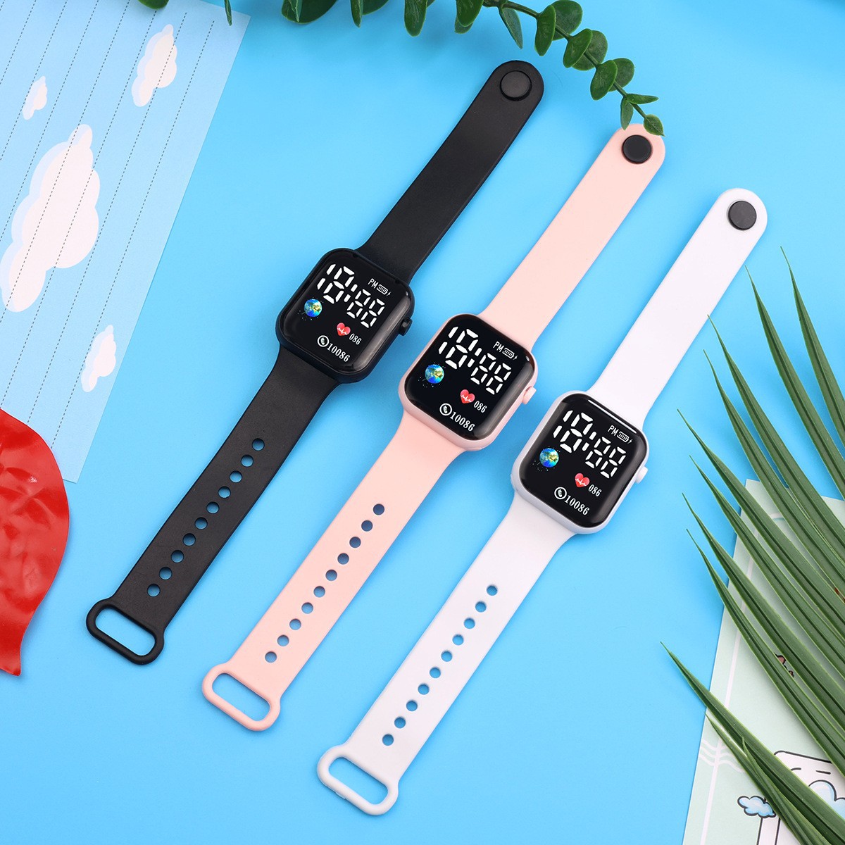 外贸跨境新款LED电子手表方块地球爱心数字情侣学生时尚手表现货