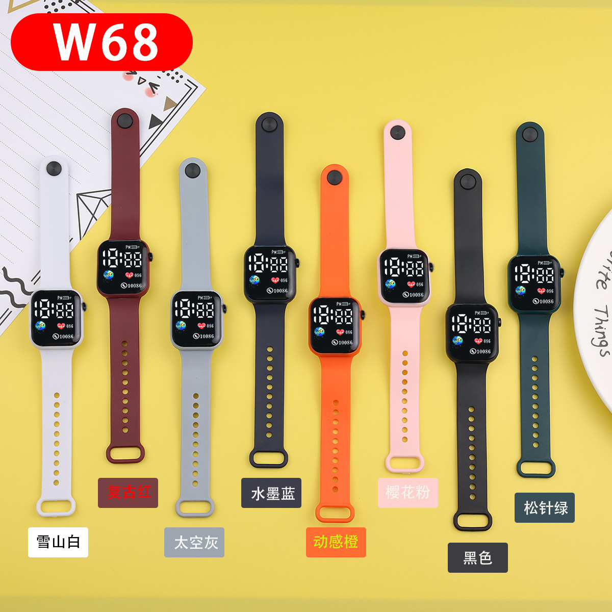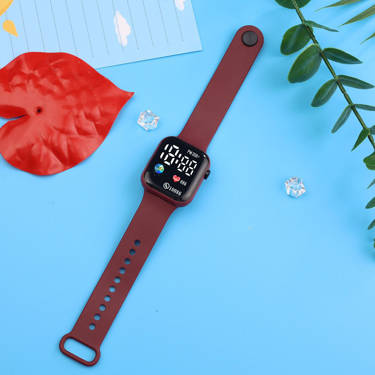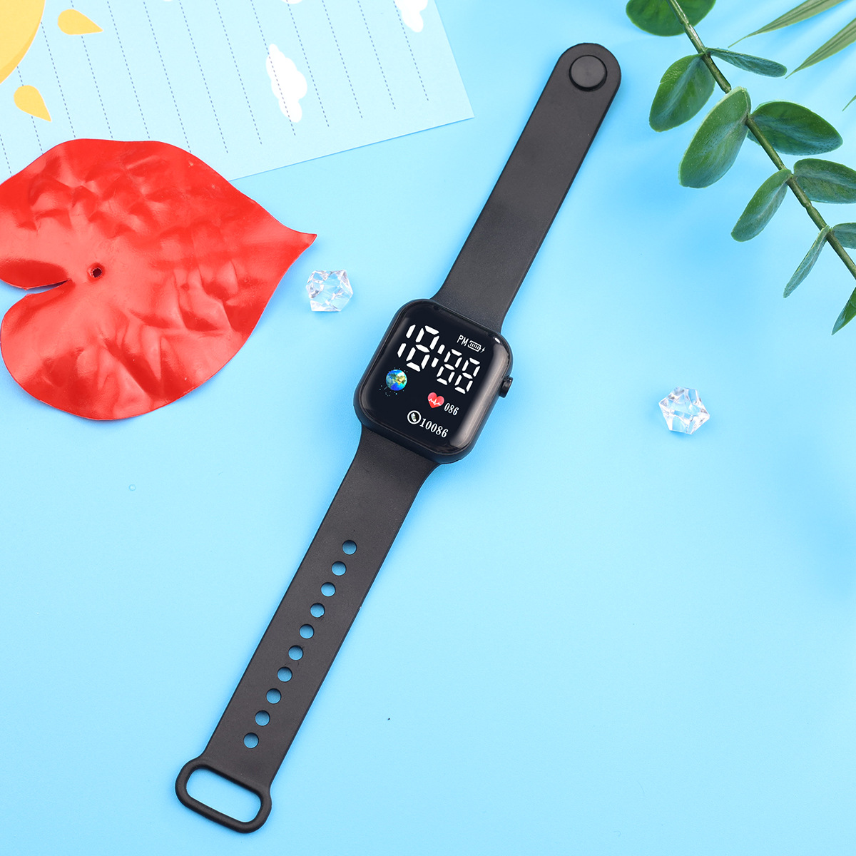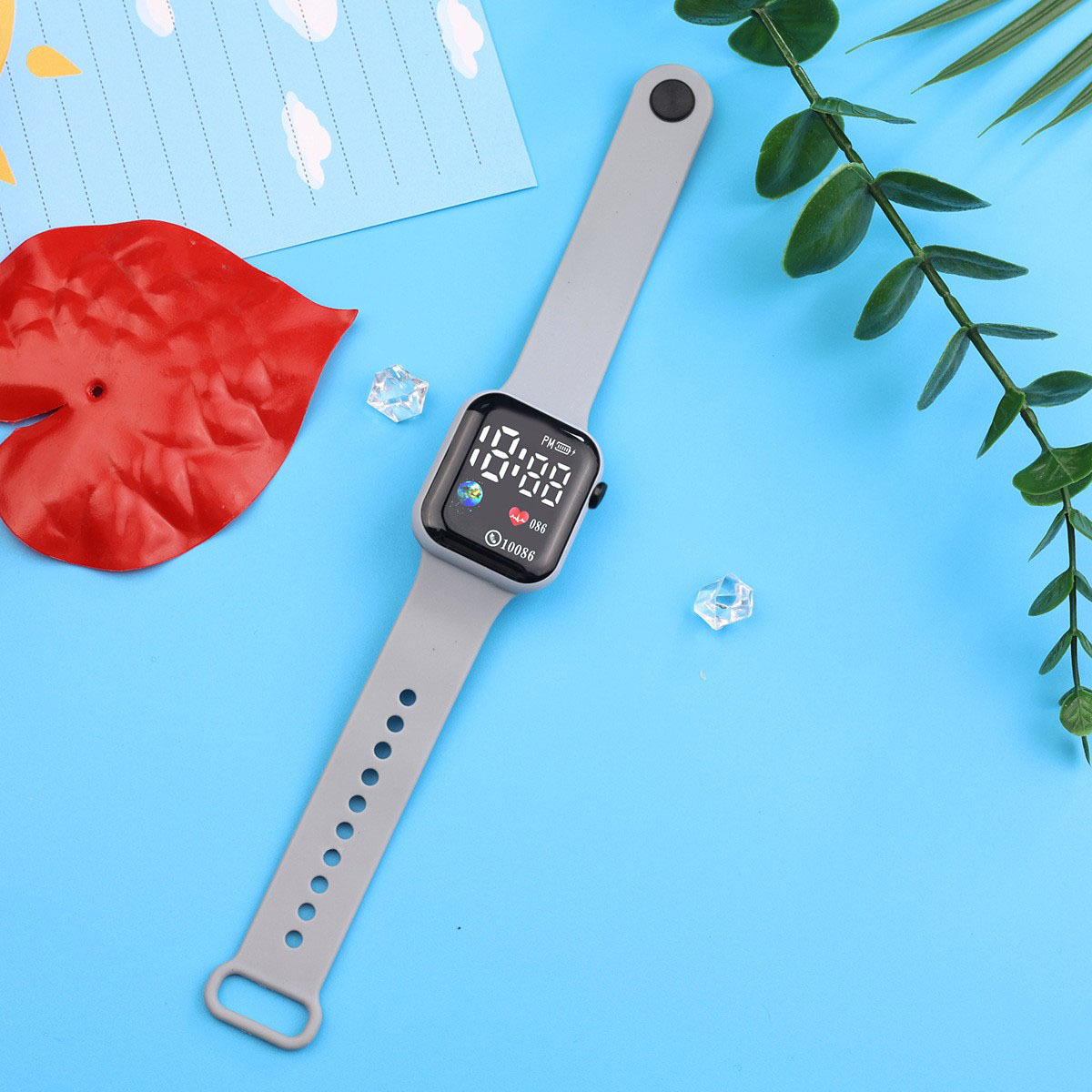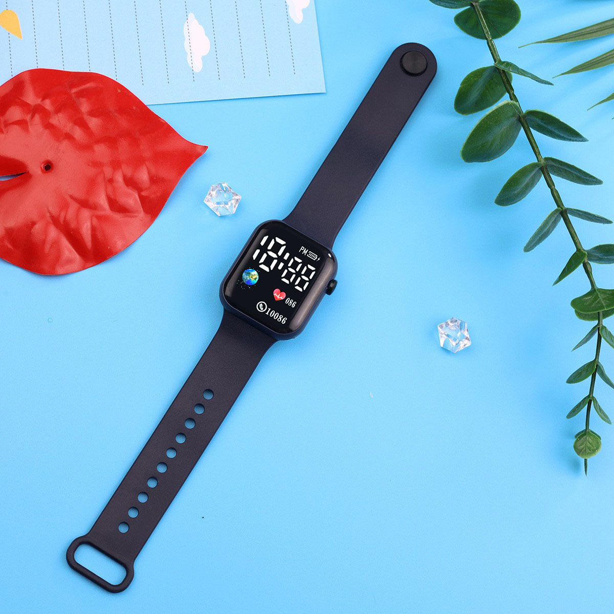 外贸跨境新款LED电子手表方块地球爱心数字情侣学生时尚手表现货