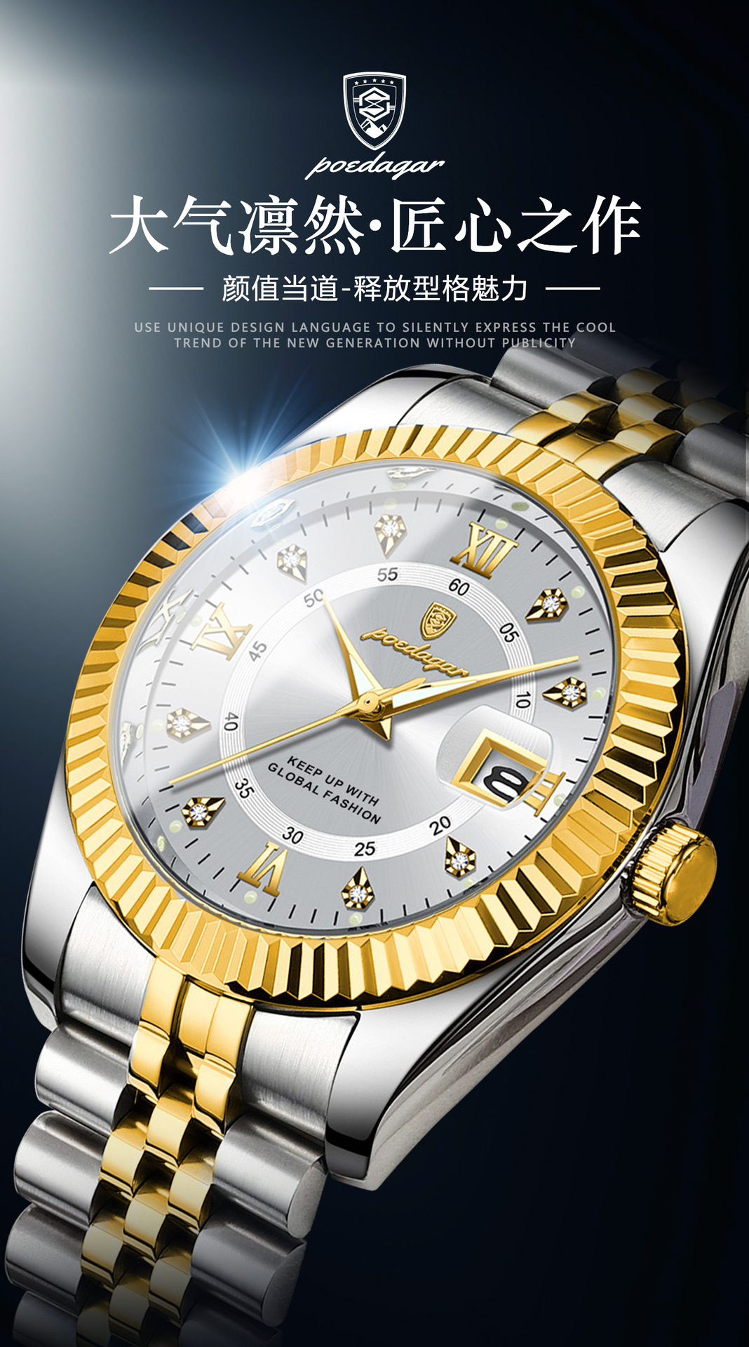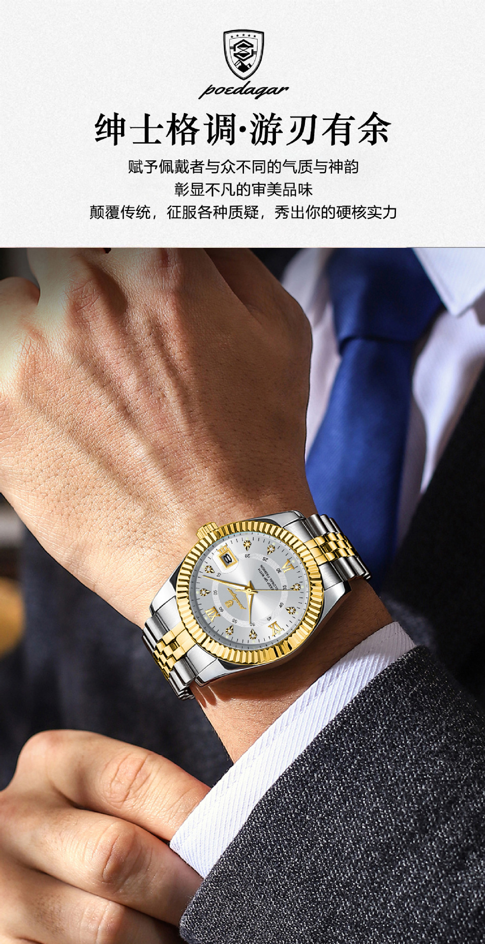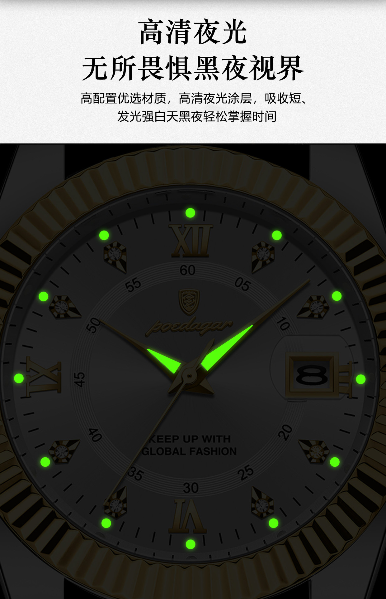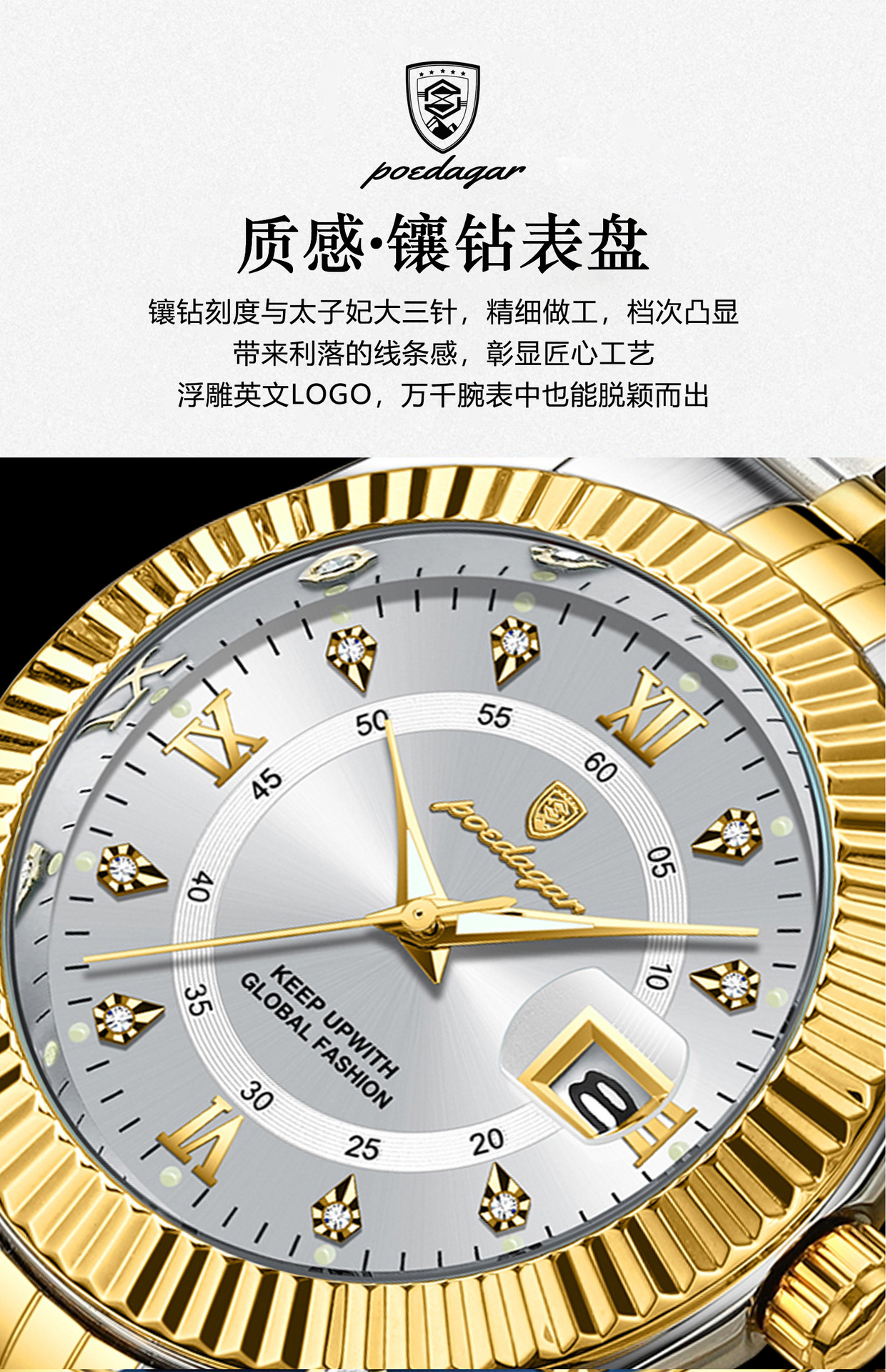 POEDAGAR奢华男士手表防水夜光商务镶钻款石英表直播外贸爆款腕表