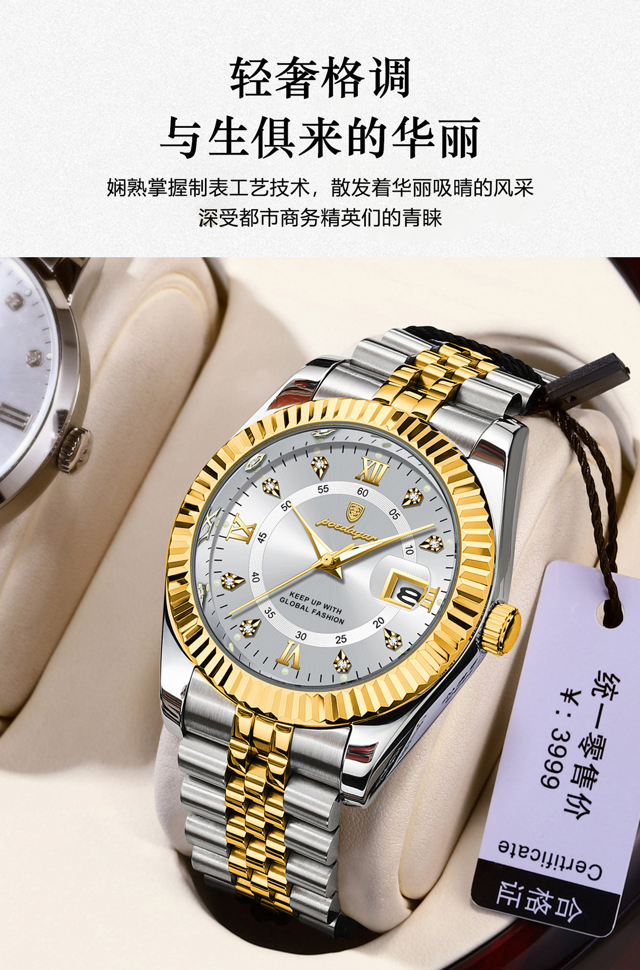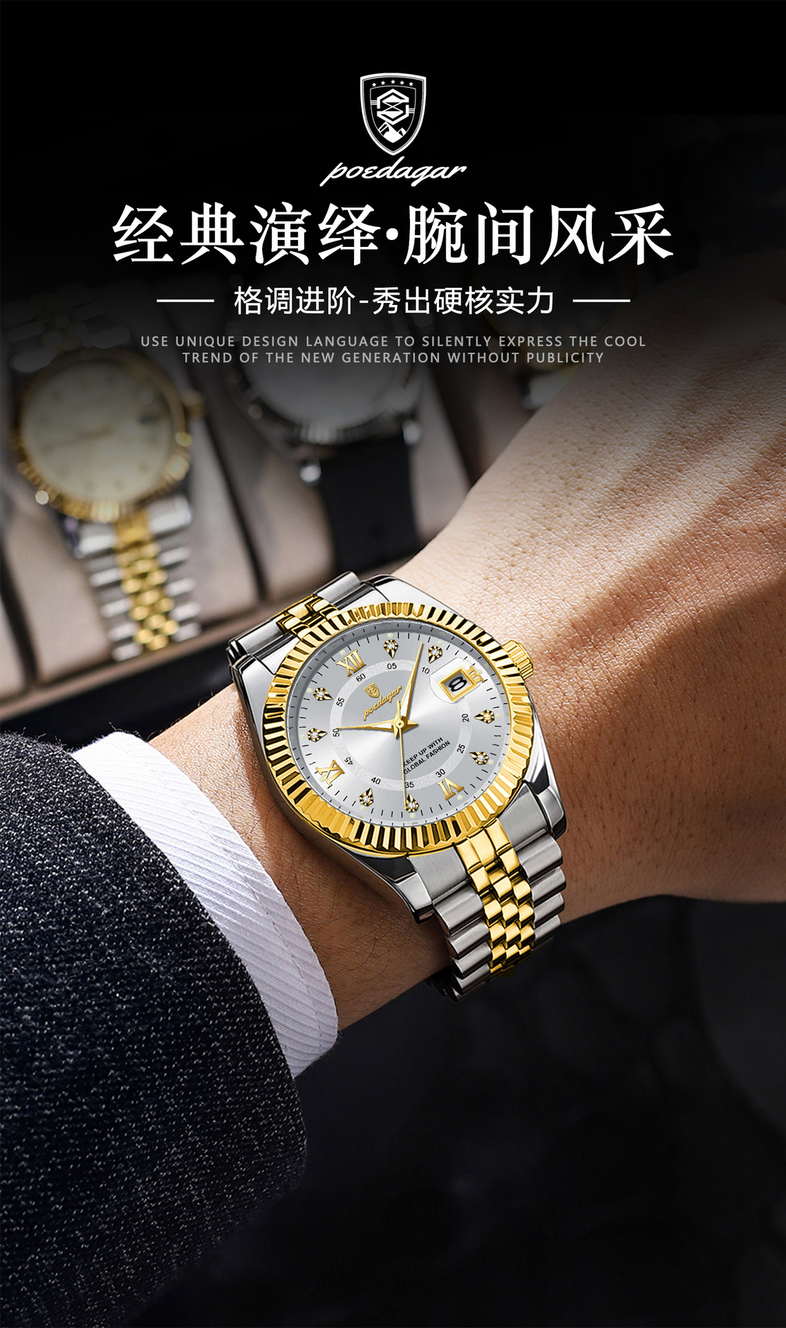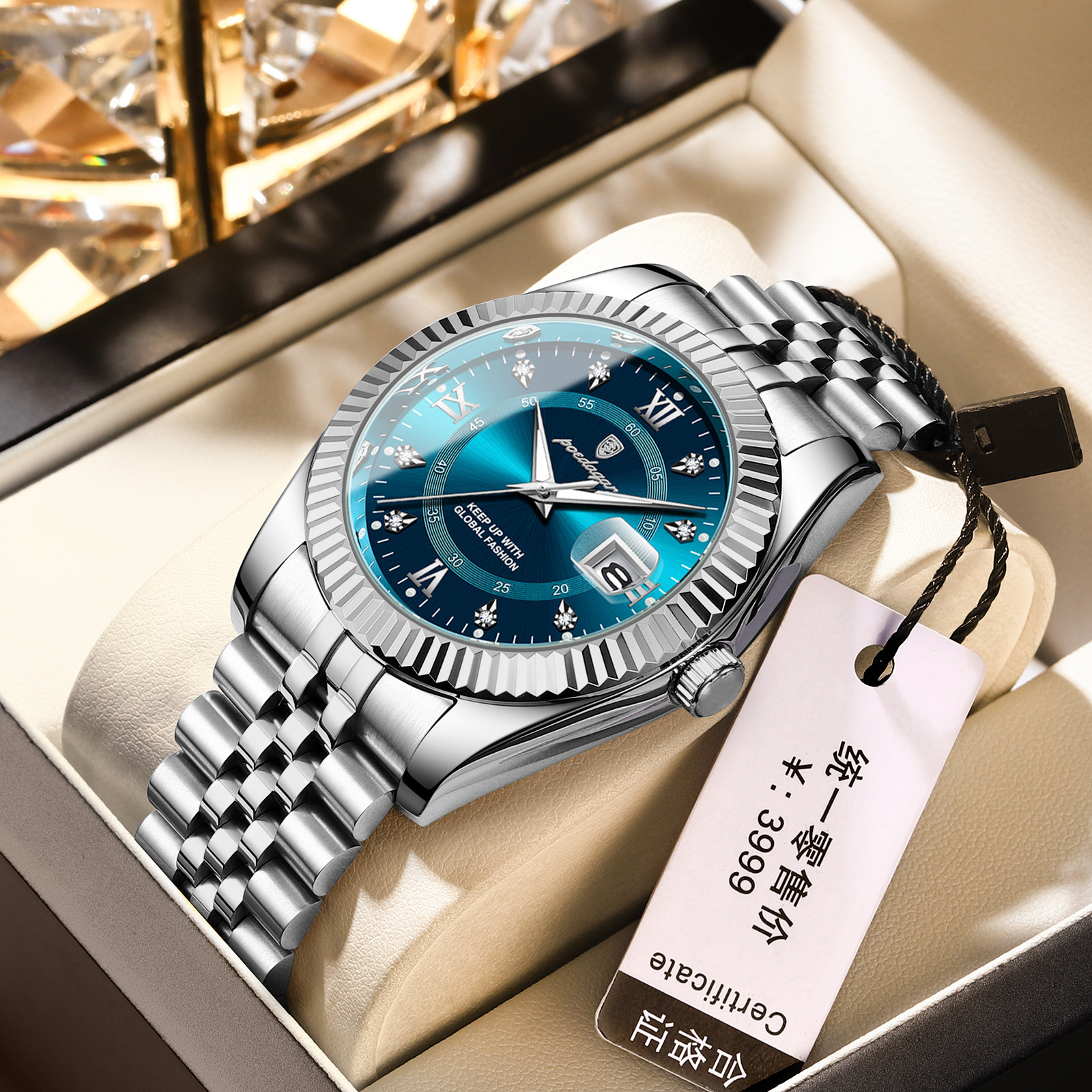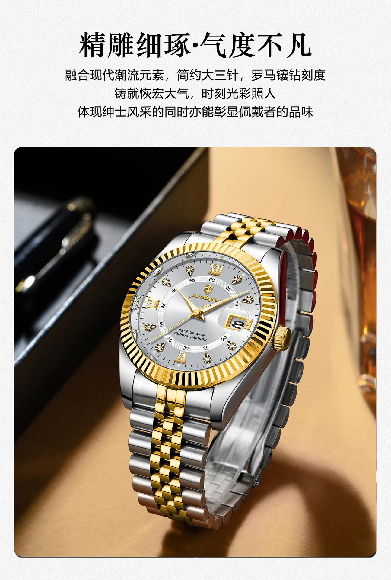 POEDAGAR奢华男士手表防水夜光商务镶钻款石英表直播外贸爆款腕表
