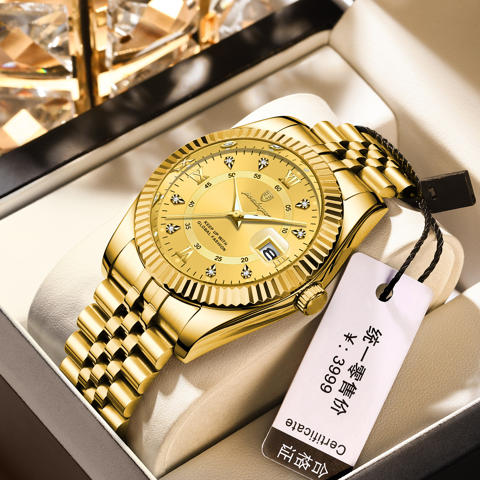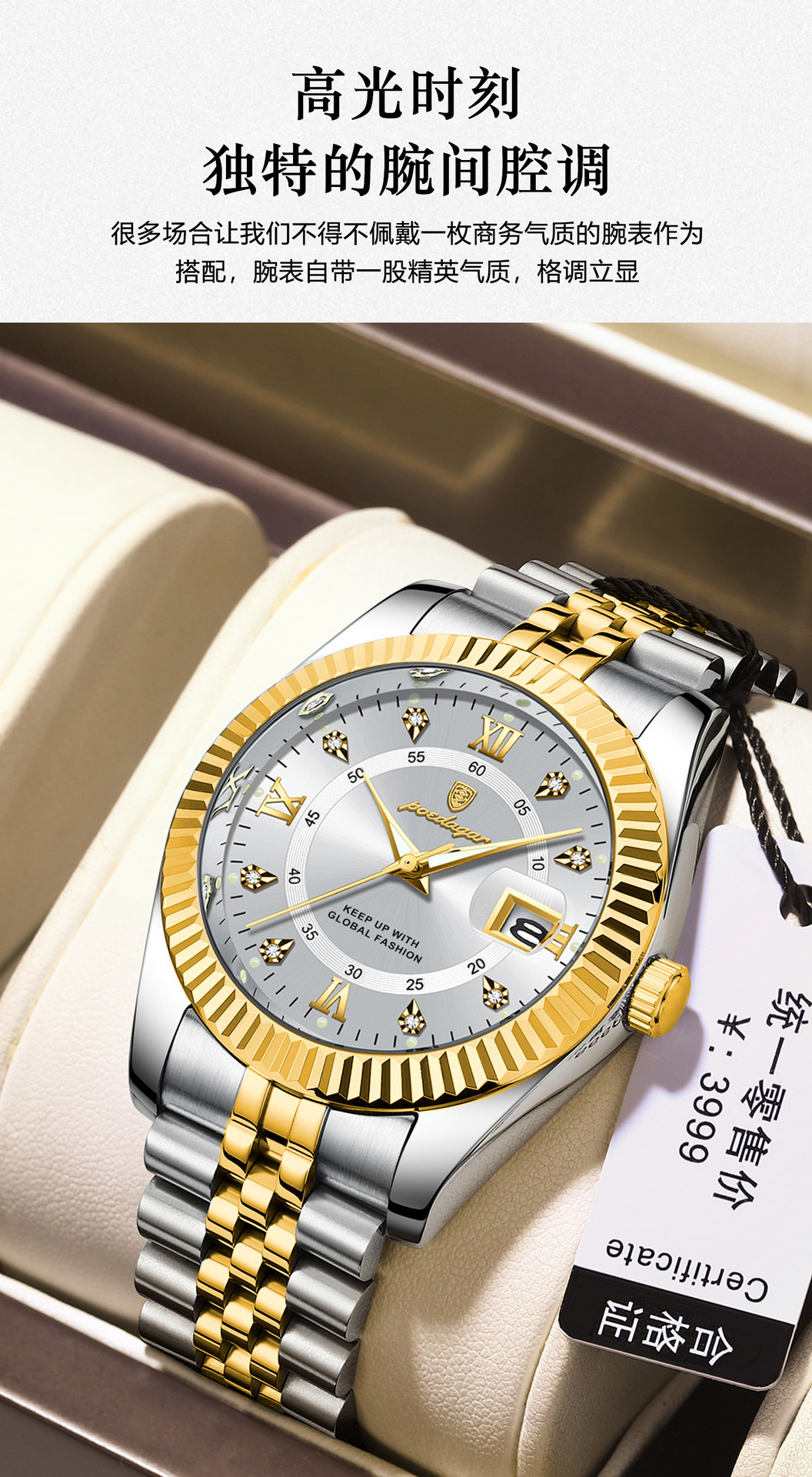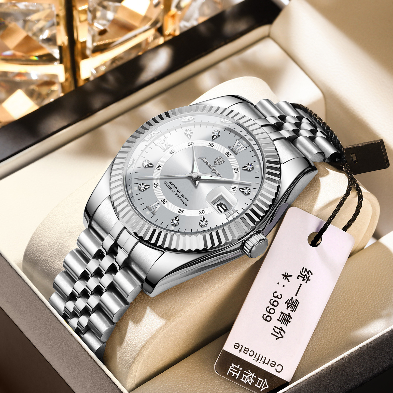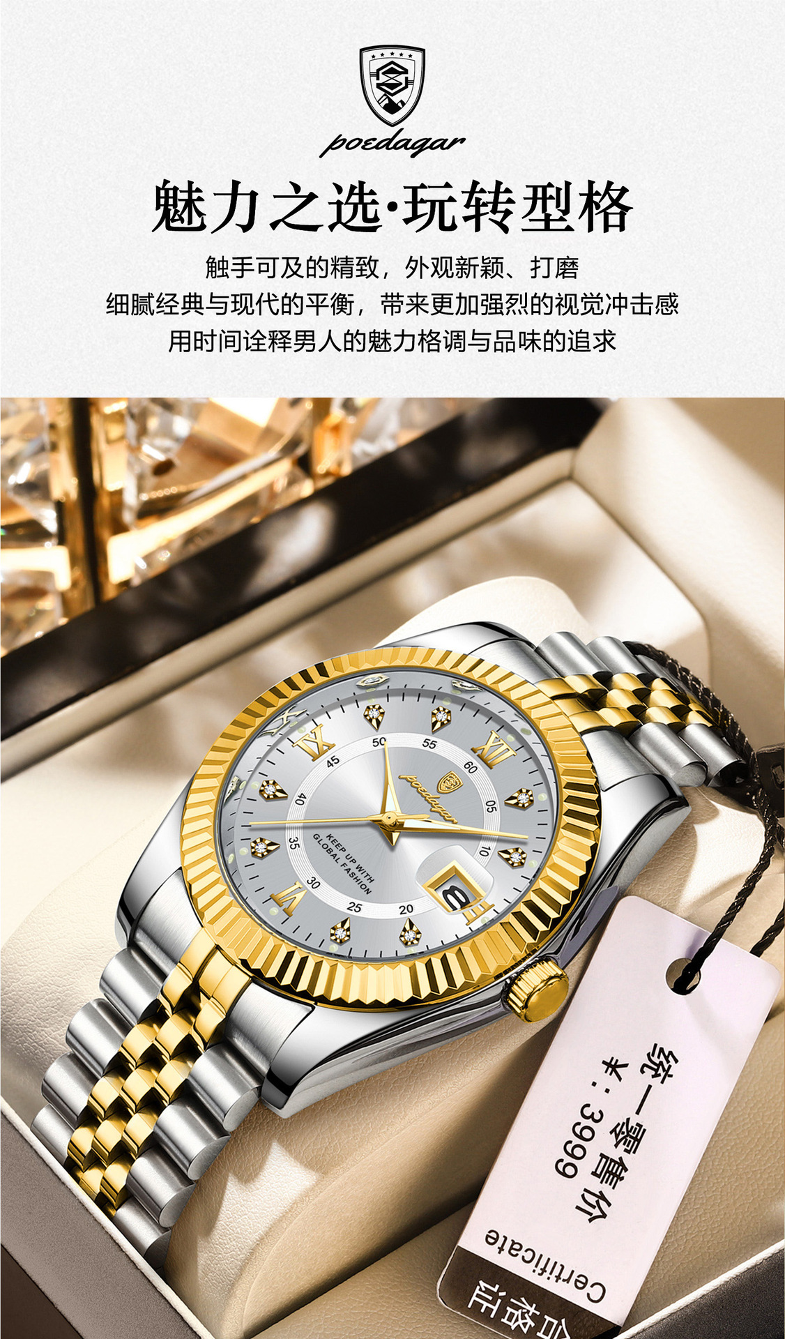 POEDAGAR奢华男士手表防水夜光商务镶钻款石英表直播外贸爆款腕表