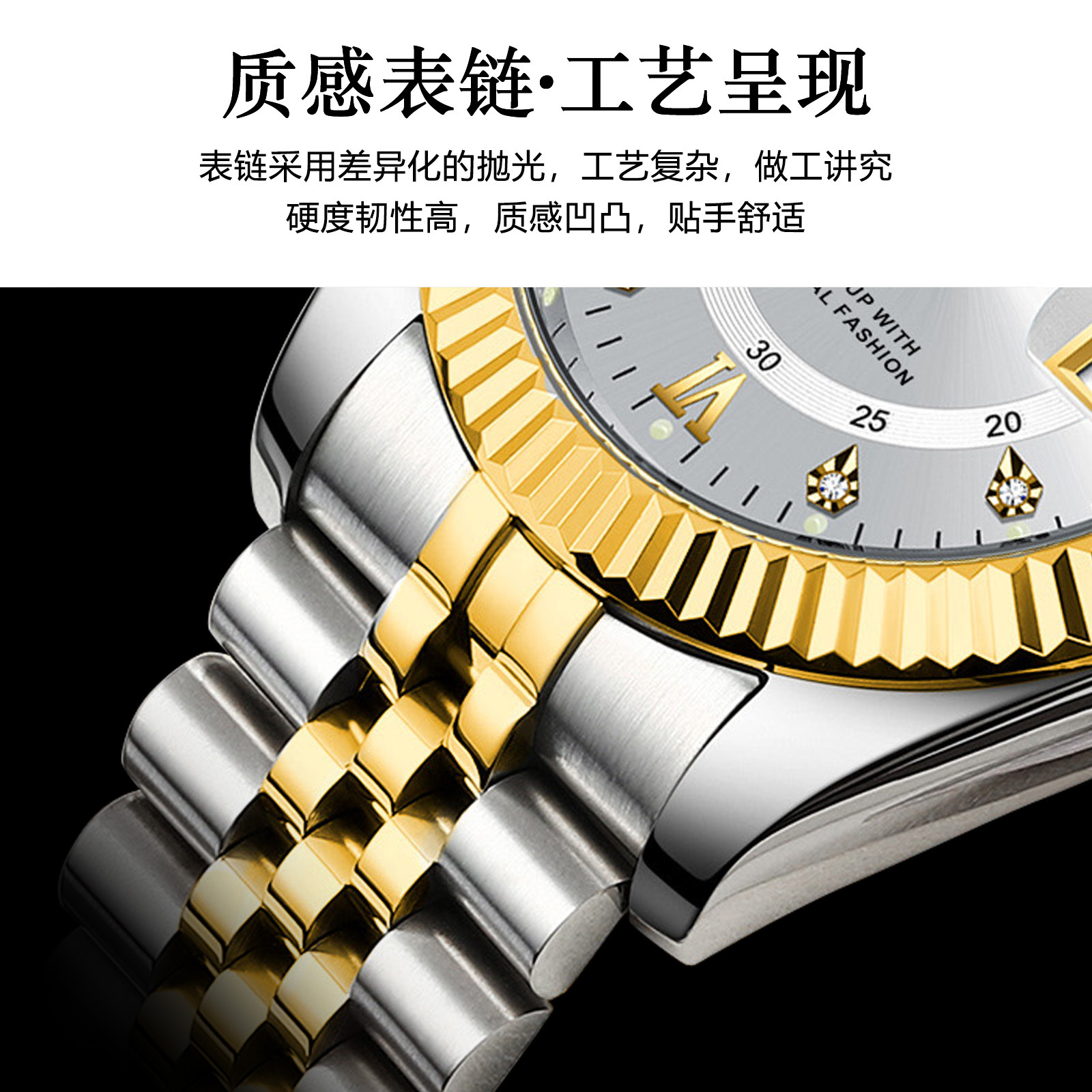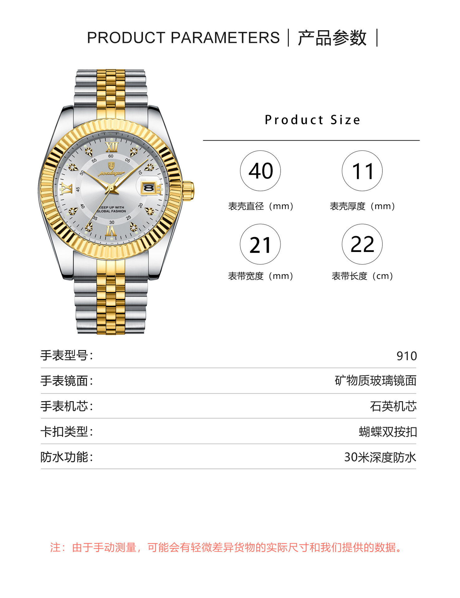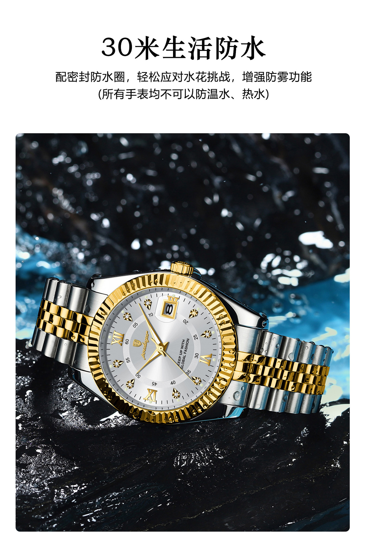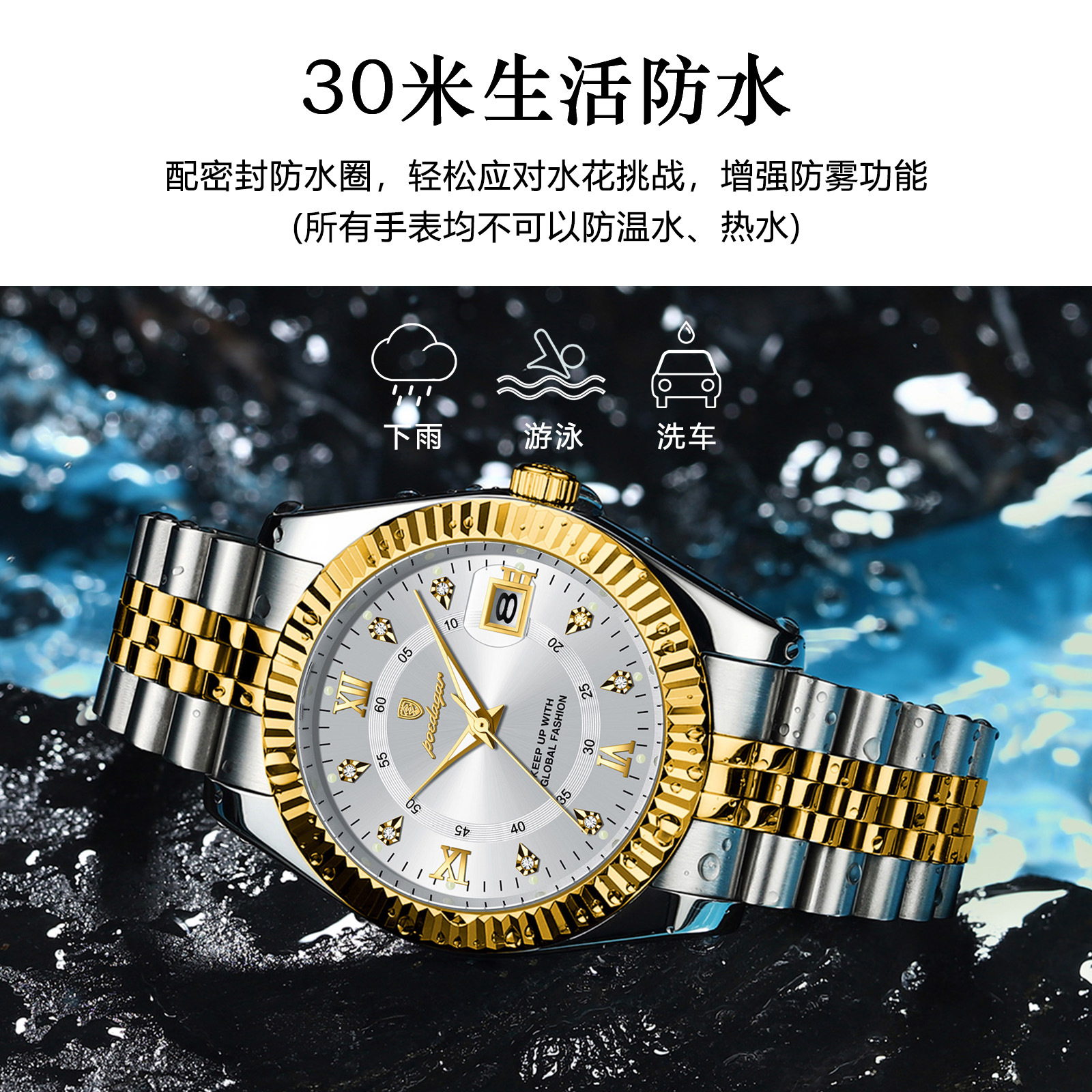 POEDAGAR奢华男士手表防水夜光商务镶钻款石英表直播外贸爆款腕表