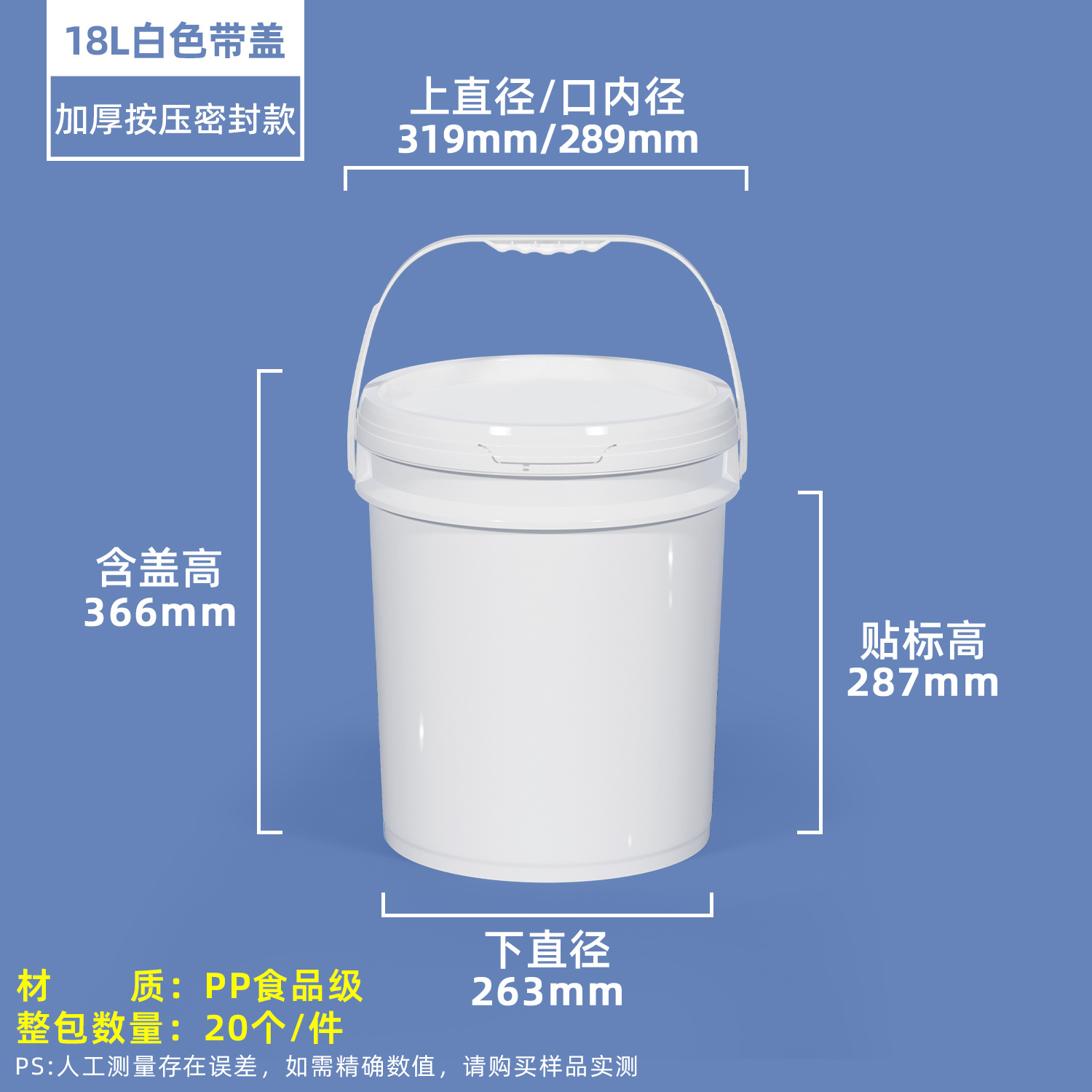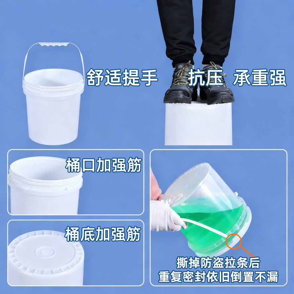 水杉食品级塑料桶圆桶5升塑料桶加厚油漆桶带盖塑料桶水桶牛筋桶
