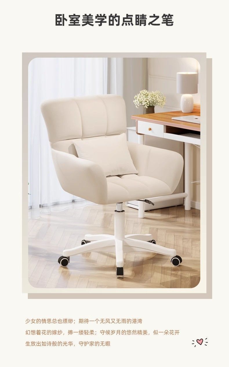电脑舒适久坐电脑椅女生化妆宿舍大学生学习家用靠背椅卧室升降椅