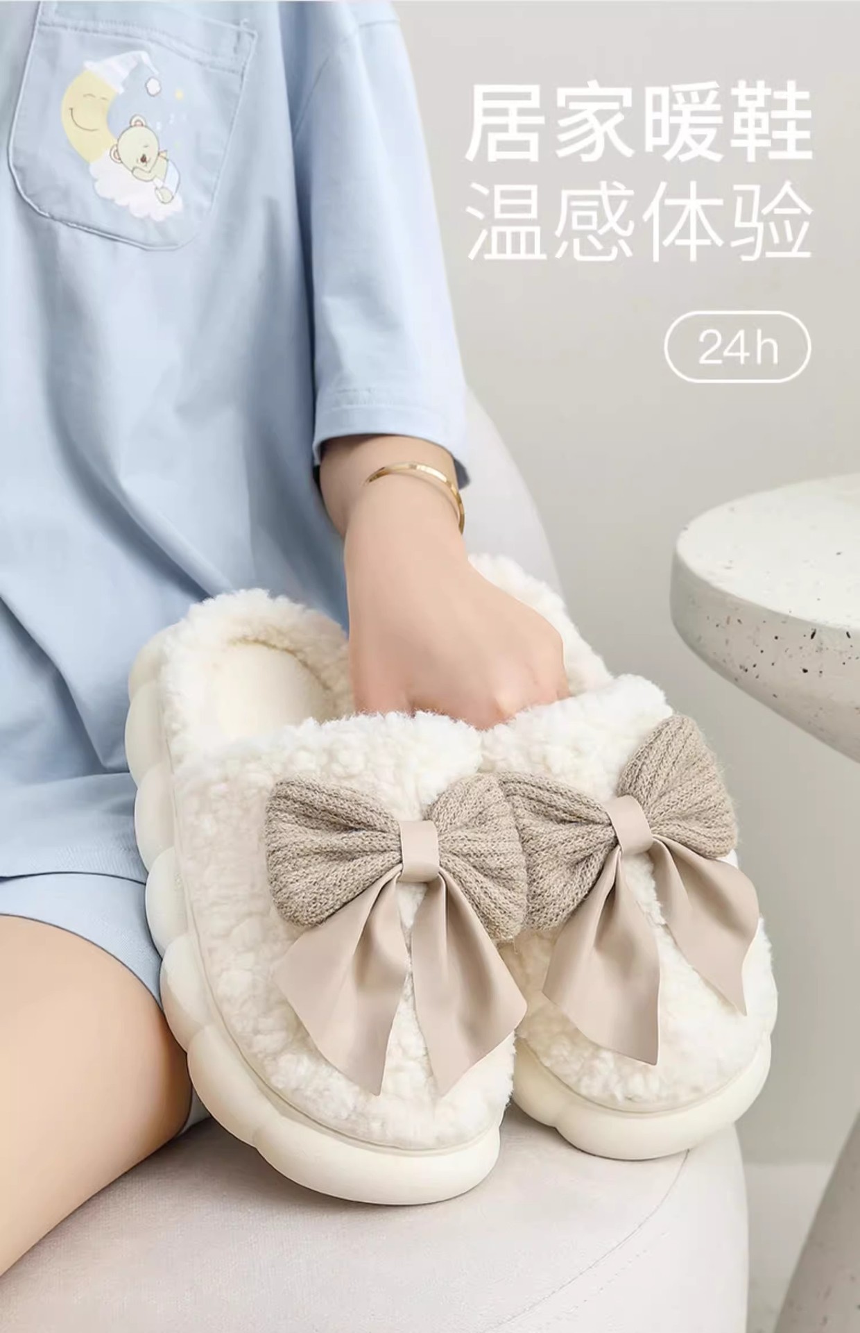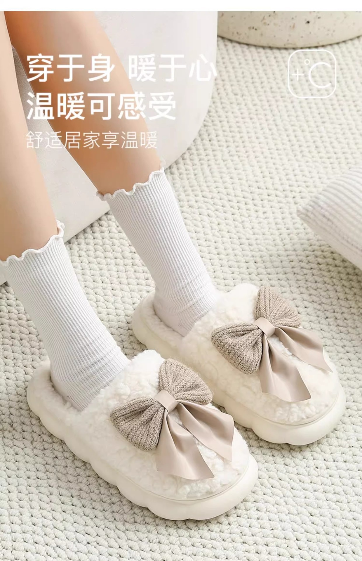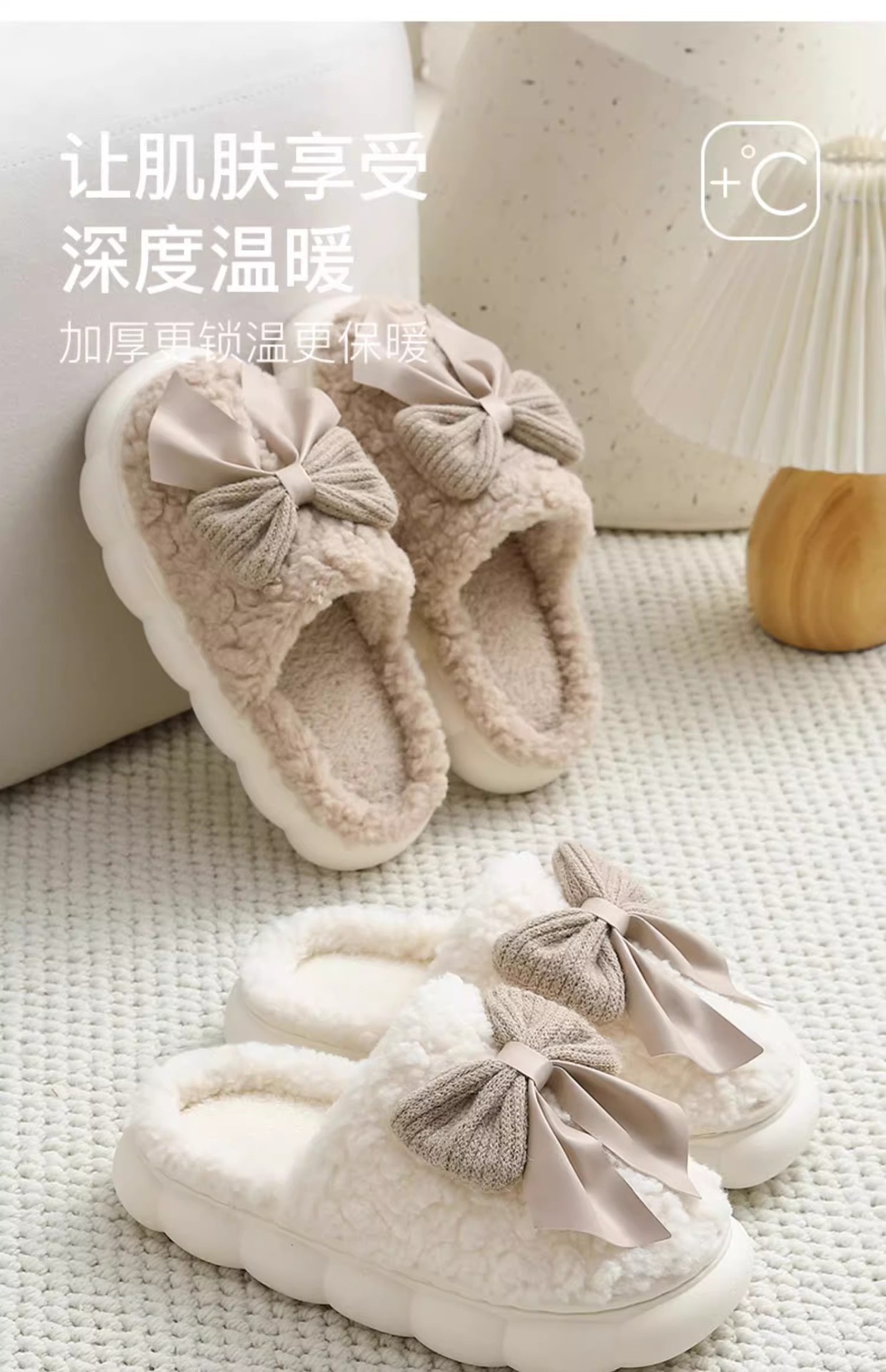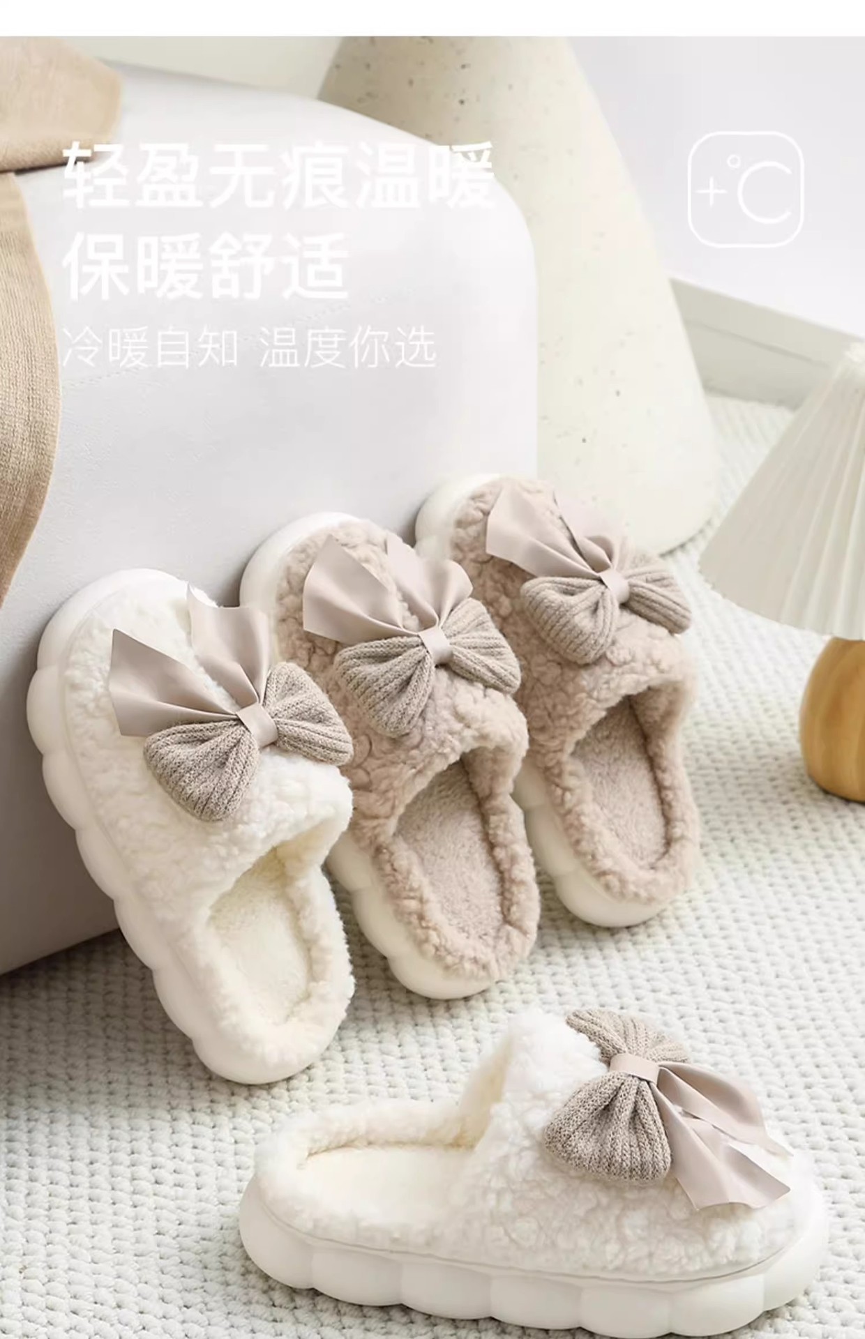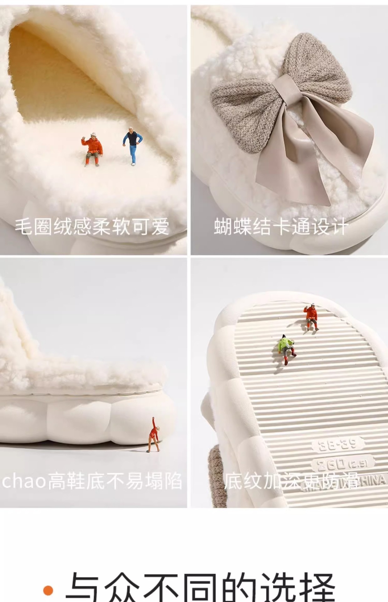 2025新款秋冬季可爱保暖室内家居厚底毛毛拖鞋蝴蝶棉拖鞋女士月子