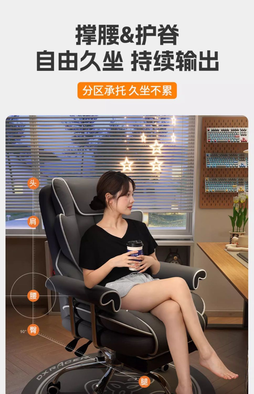 电竞椅舒适久坐家用电脑椅游戏沙发椅办公椅靠背可躺椅子卧室午睡