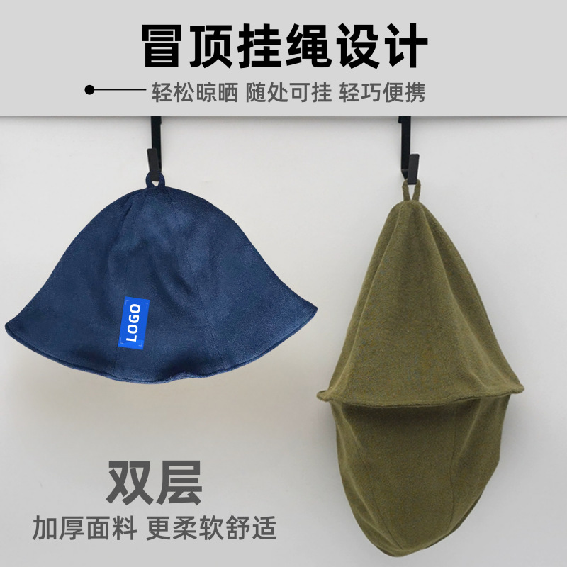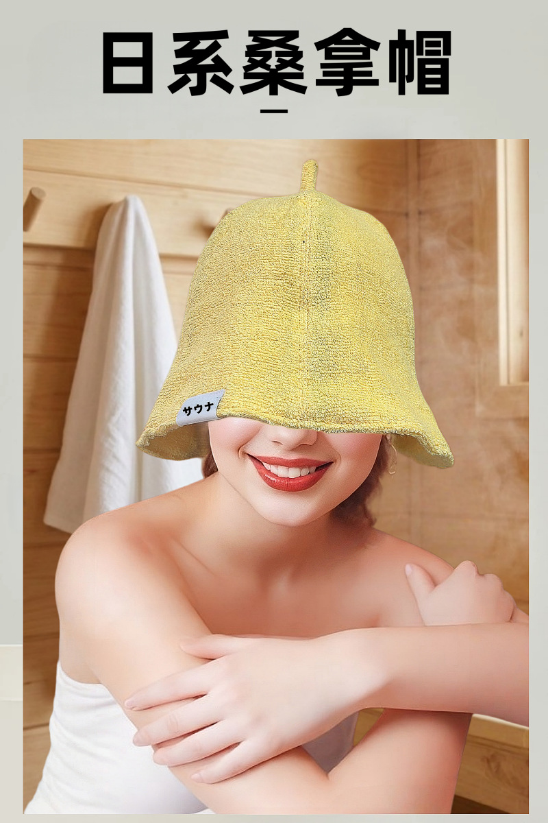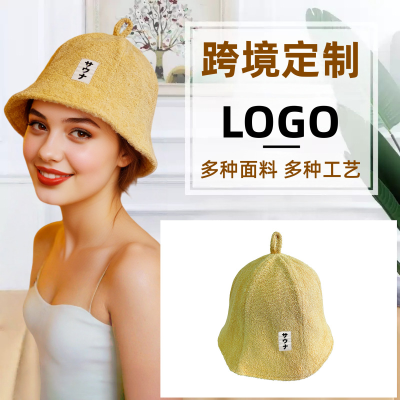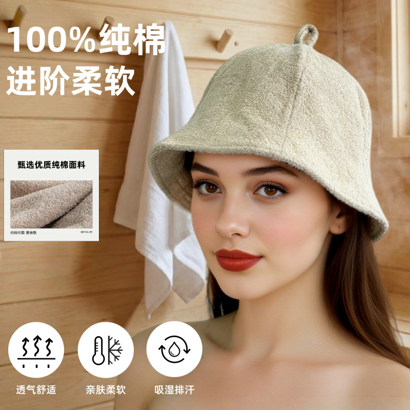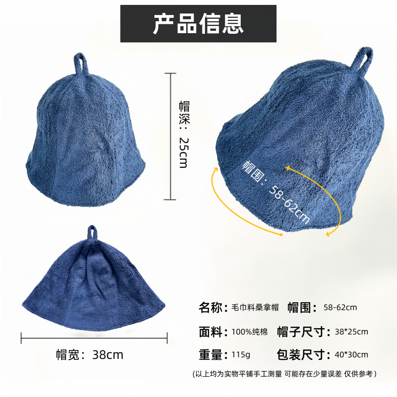 跨境纯棉毛巾料桑拿帽日本专供双层休闲渔夫帽女日系简约汗蒸浴帽