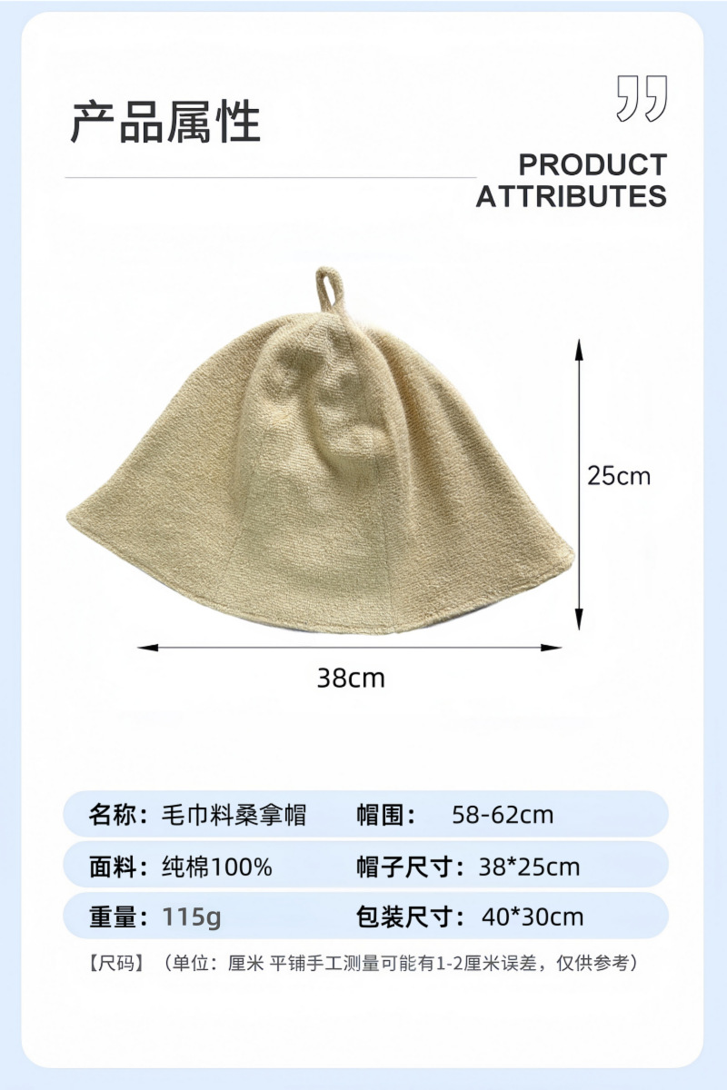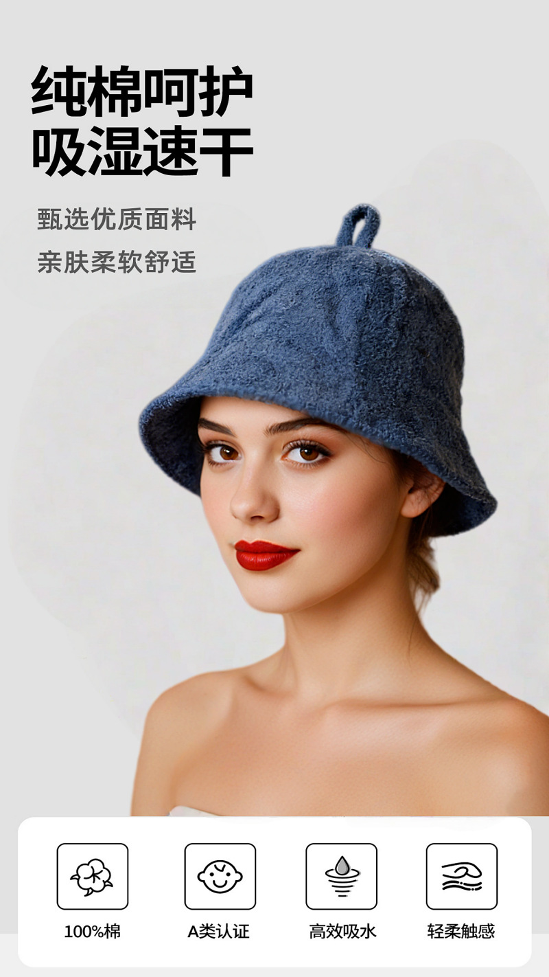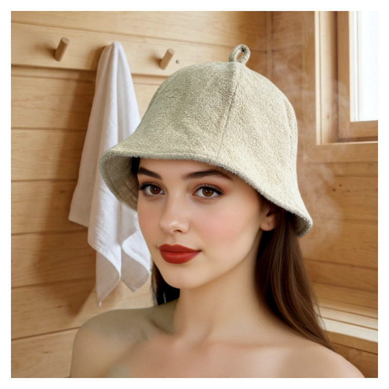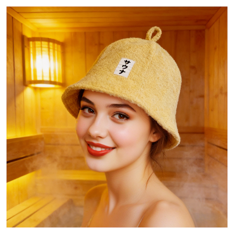 跨境纯棉毛巾料桑拿帽日本专供双层休闲渔夫帽女日系简约汗蒸浴帽