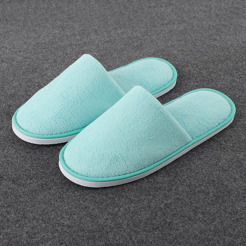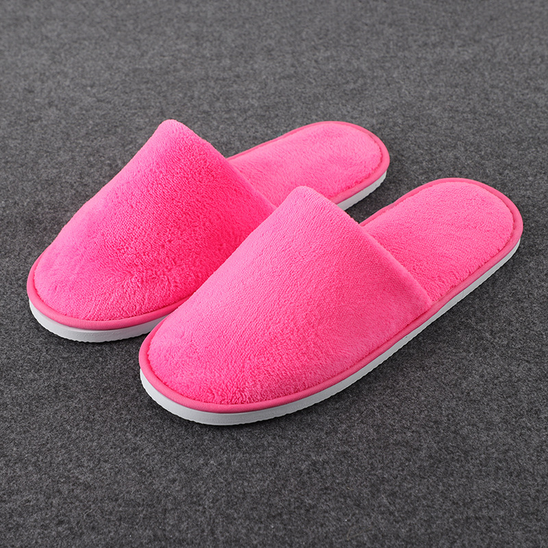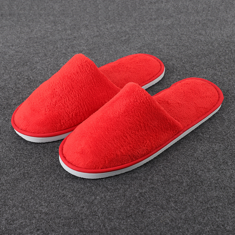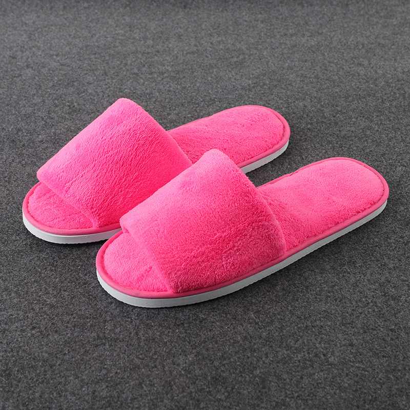 一次性纯色珊瑚绒拖鞋 酒店民宿情侣拖鞋 客房宾馆加厚拖鞋批发
