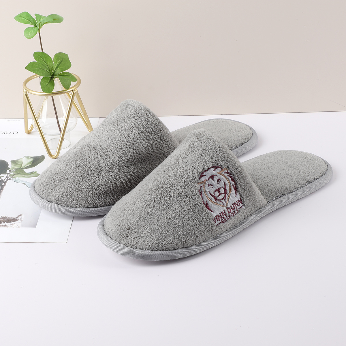【工厂定制】酒店一次性拖鞋民宿居家待客加厚珊瑚绒点珠防滑拖鞋