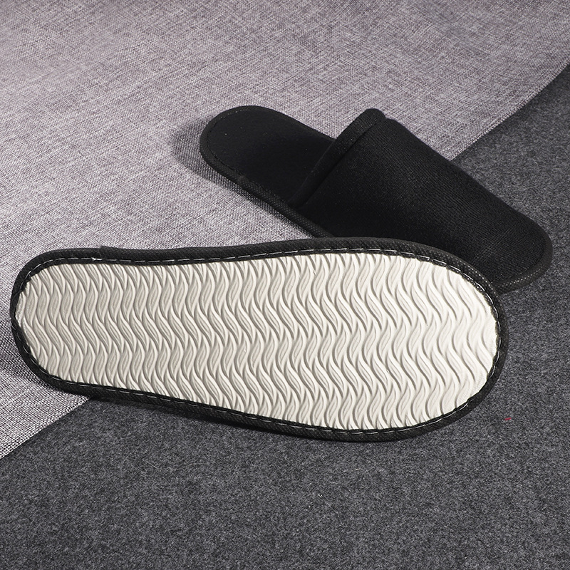 现货批发 民宿酒店宾馆一次性黑色拉毛绒拉毛布拖鞋6MM加厚防滑底