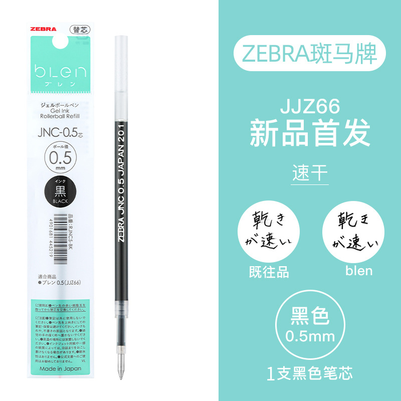 日本ZEBRA斑马bLen笔芯JJZ66替芯JNC-0.5减振中性笔现货批发黑0.5