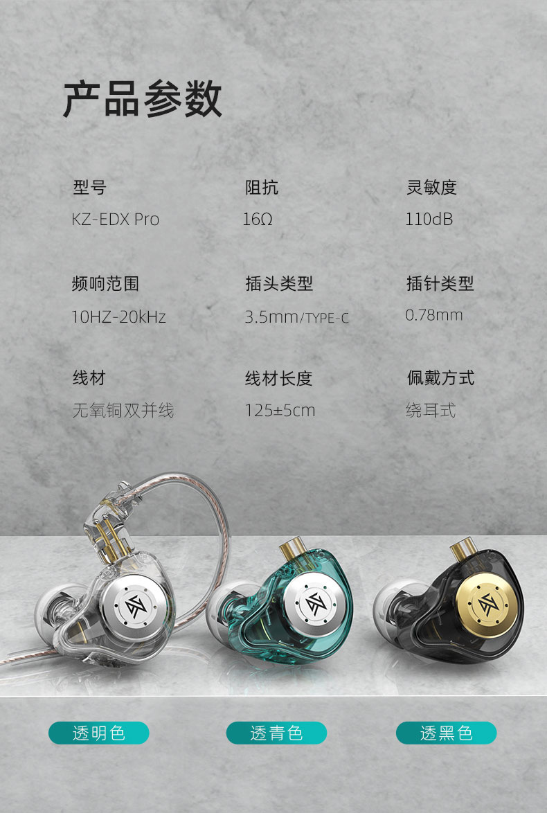 KZ-EDX PRO动圈HiFi耳机带麦线控手机电脑游戏入耳式运动音乐耳机