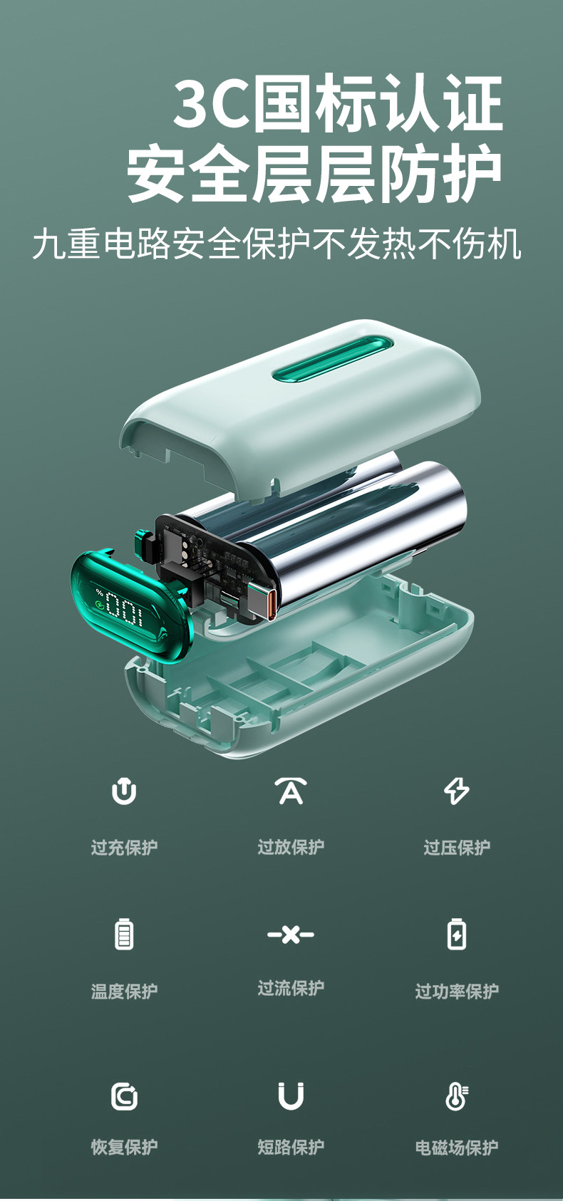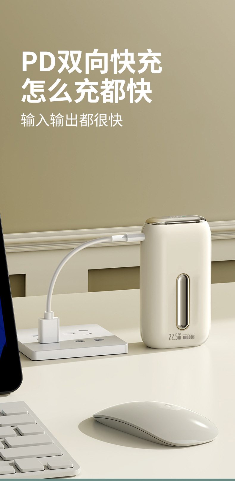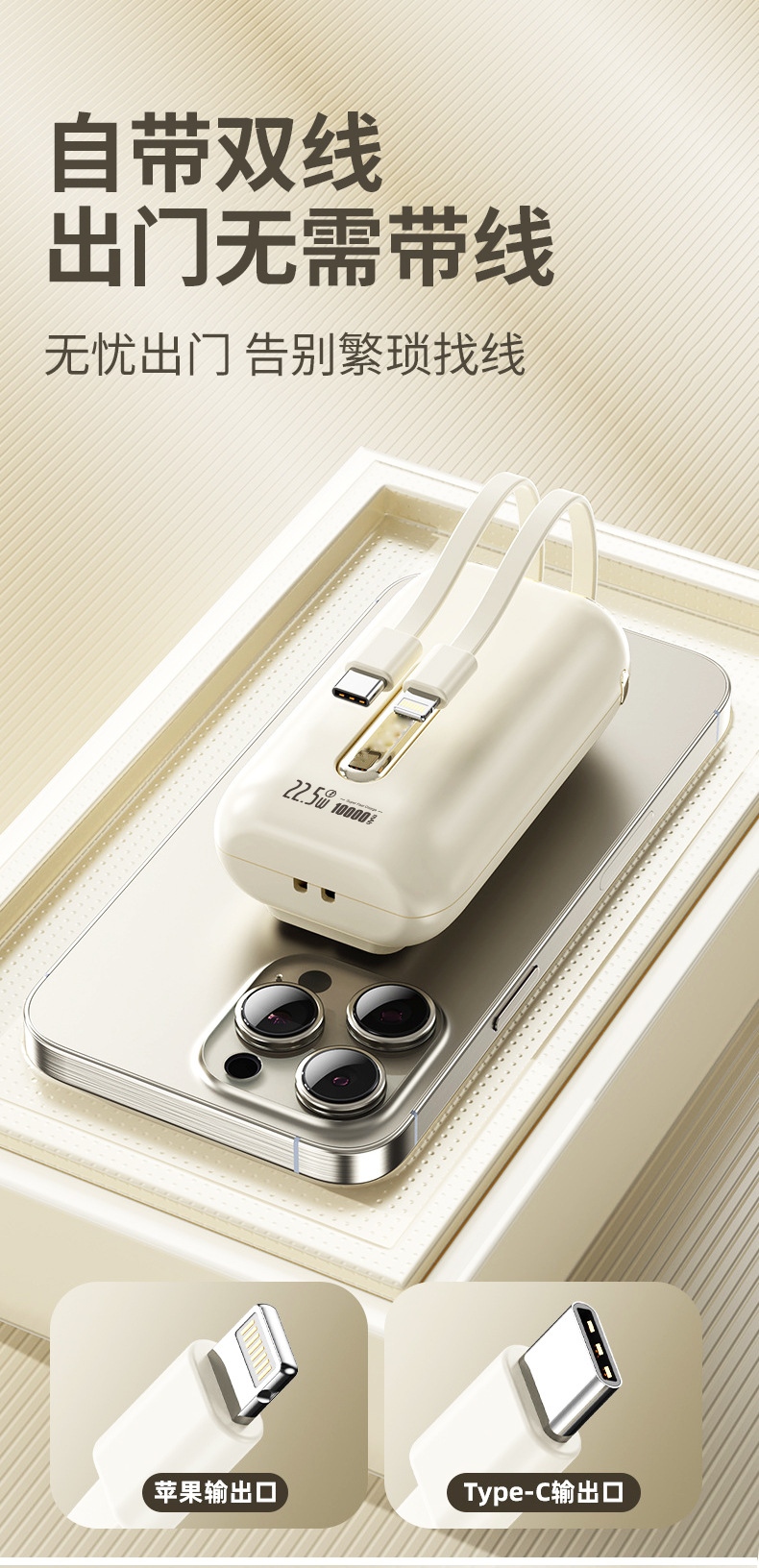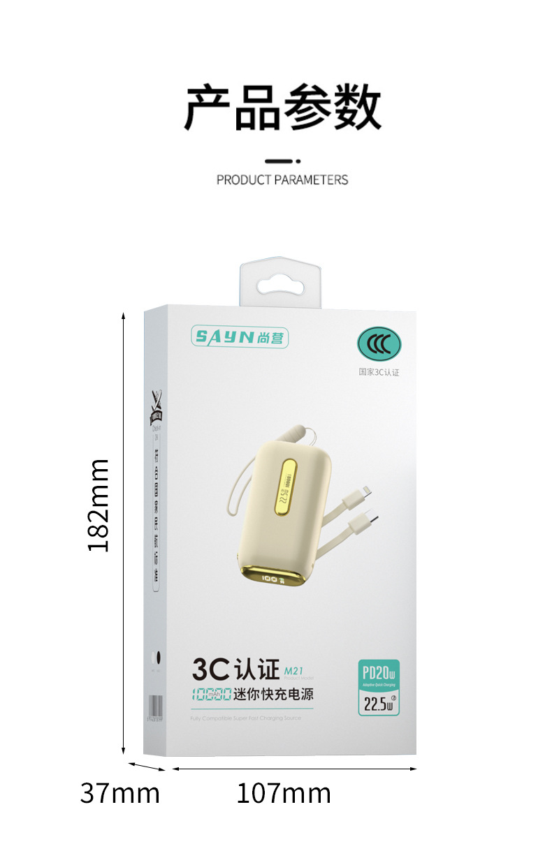3C认证10000毫安实标移动电源大容量带双线迷你便携PD 快充充电宝