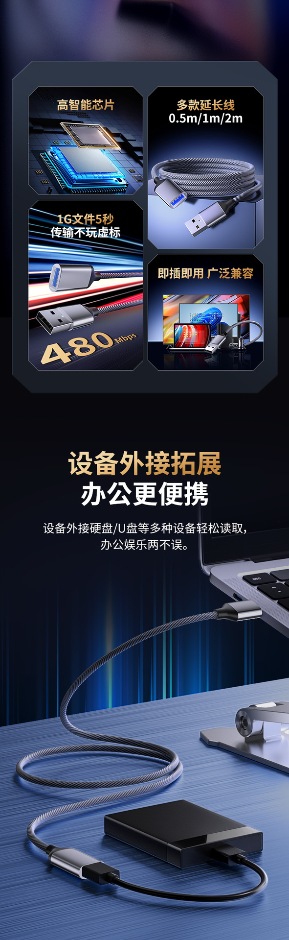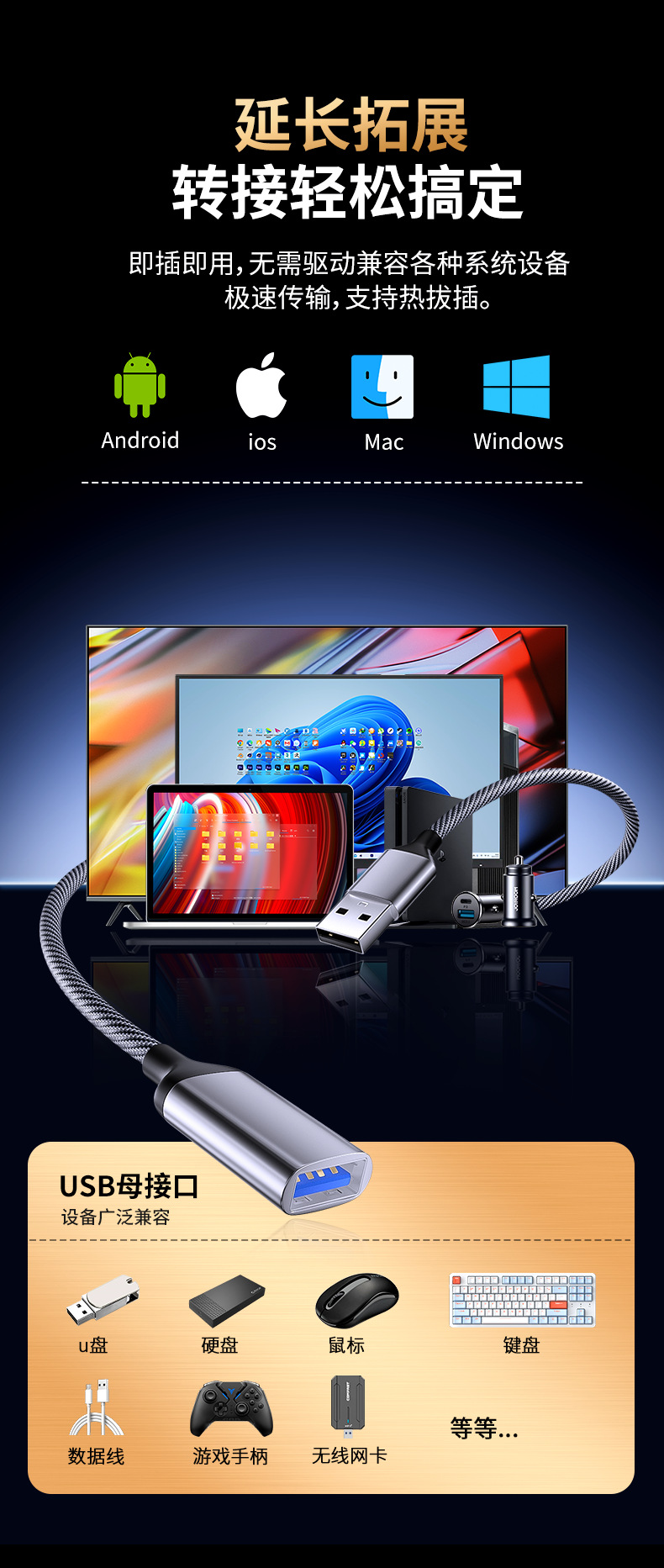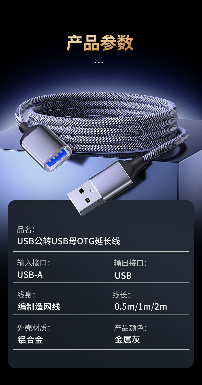 加工定制usb2.03.0延长线公母对接编织铝合金套壳电脑u盘鼠标