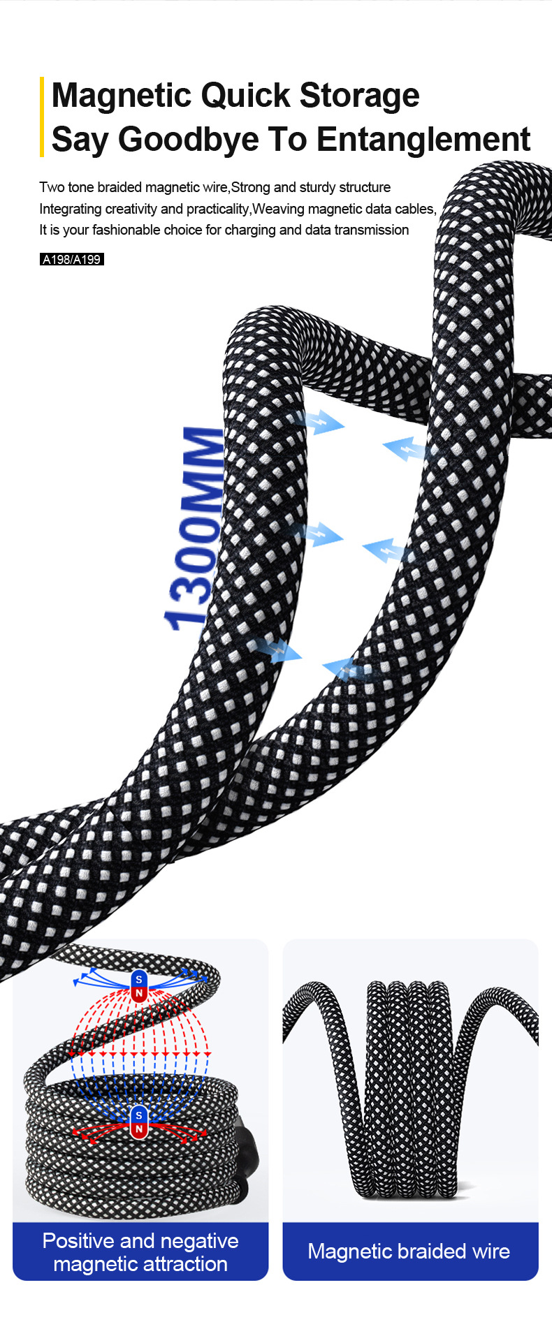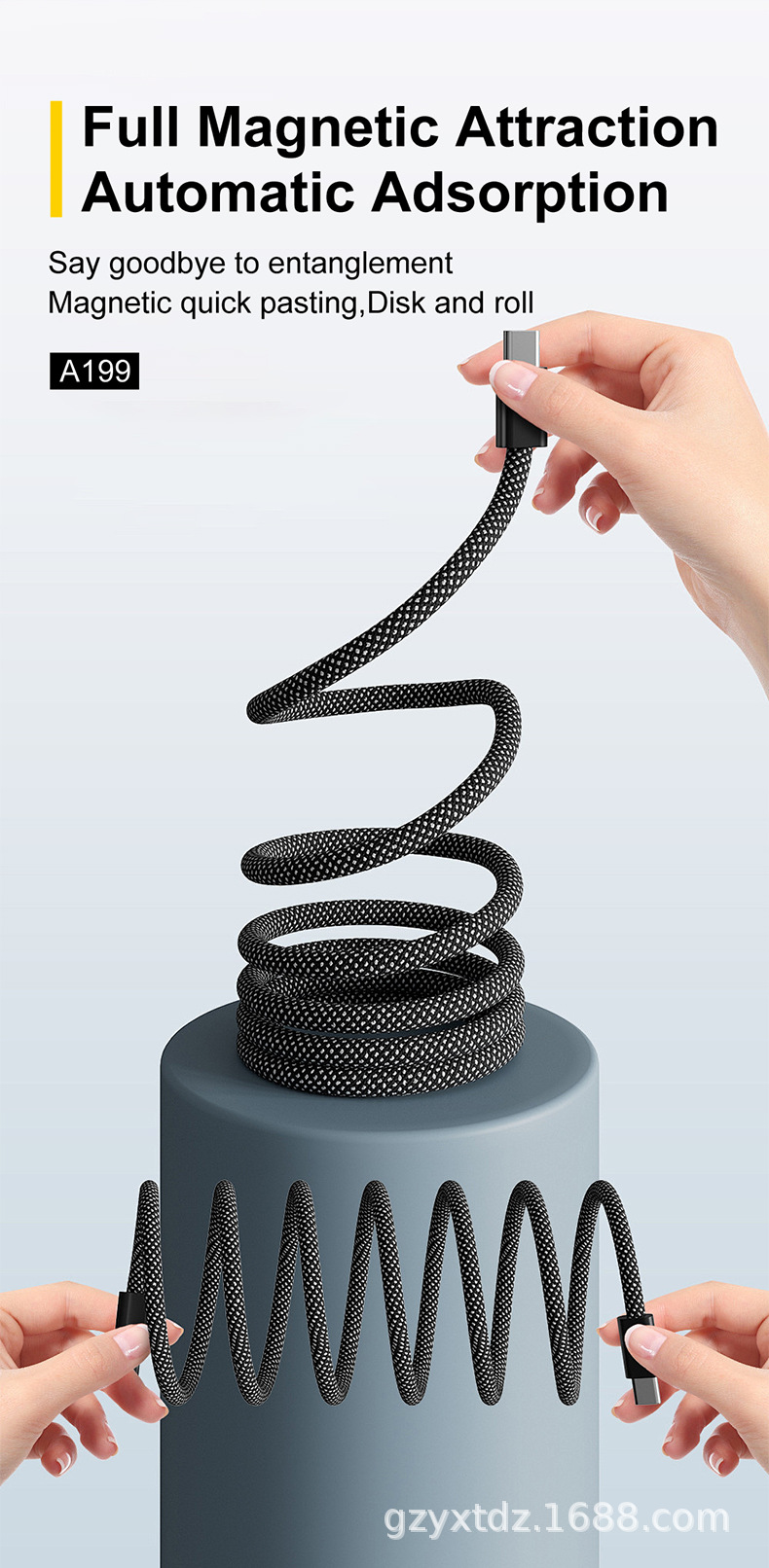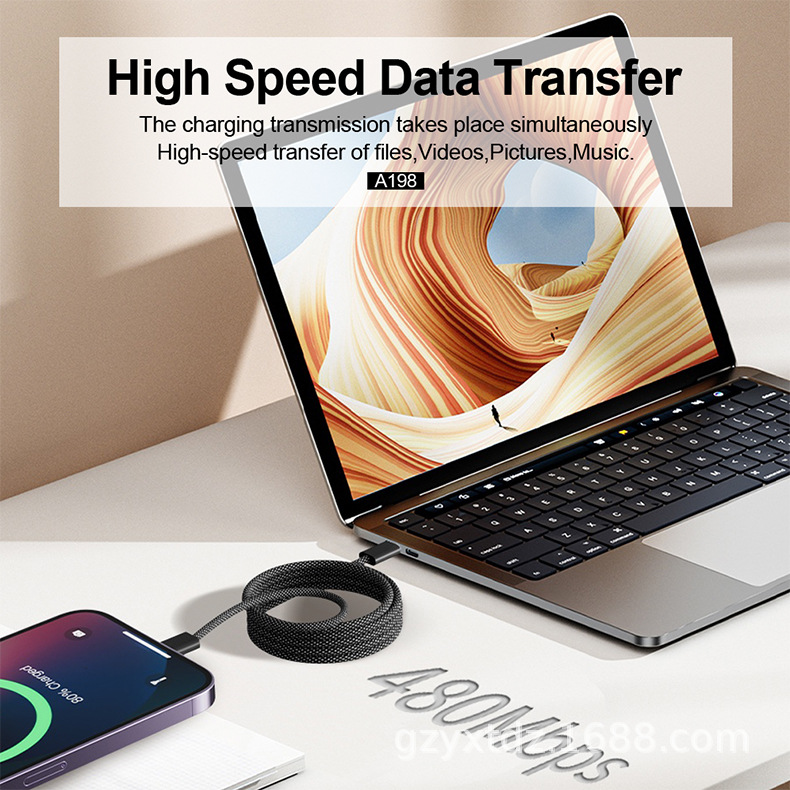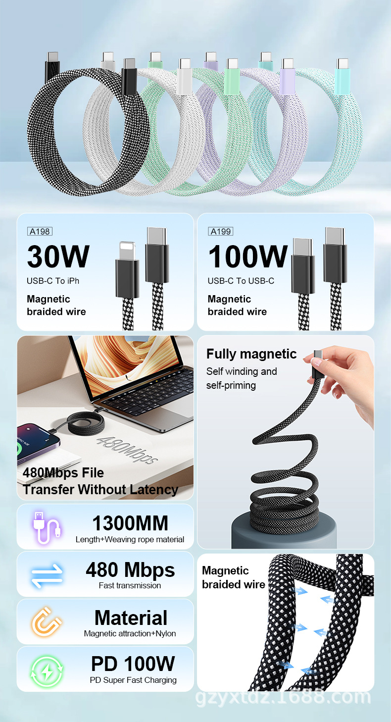 现货供应60100w磁吸手机数据线尼龙编织多个颜色及长度可选择