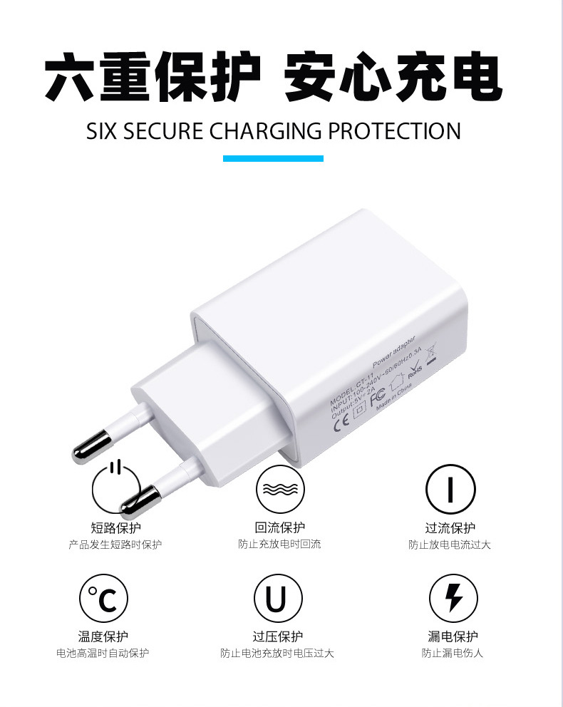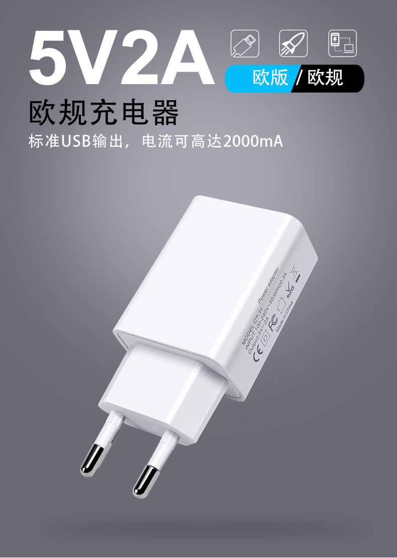 欧规5V2A充电器CE/ROHS认证手机电源适配器USB口手机充电头批发