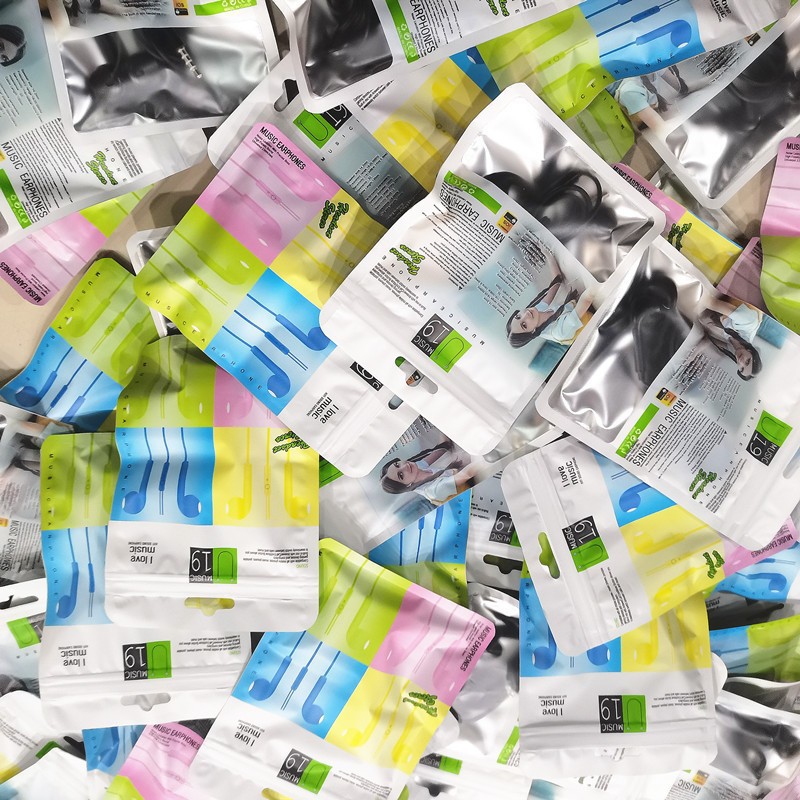 U19 音乐有线 半入耳式 重低音带麦线控 彩色耳机袋装 耳机批发
