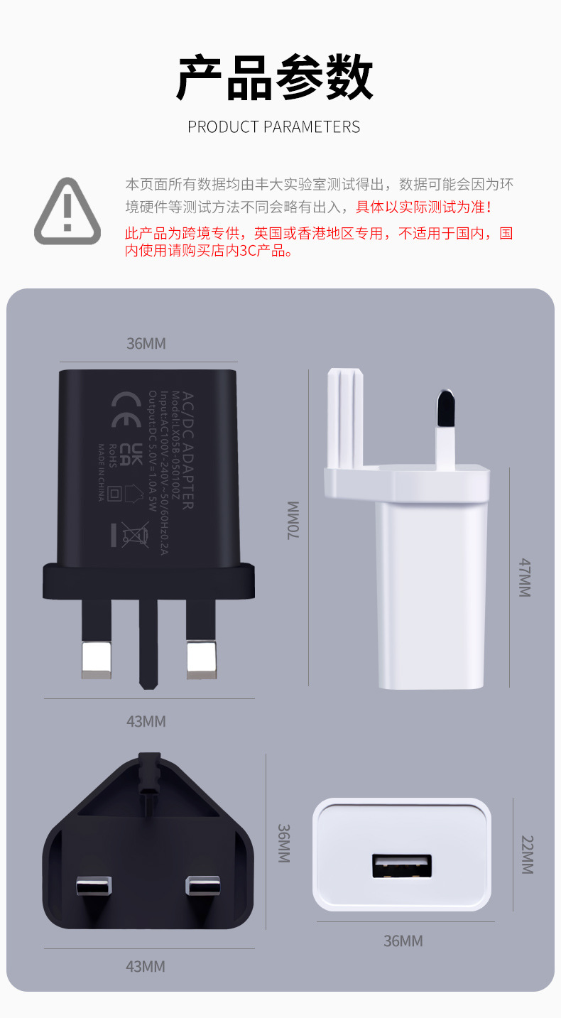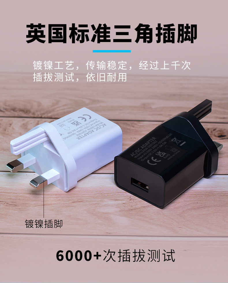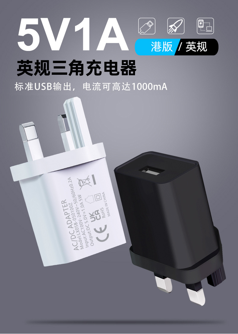 5V1A英规充电器手机充电头快充单USB电源适配器小家电头插头英标