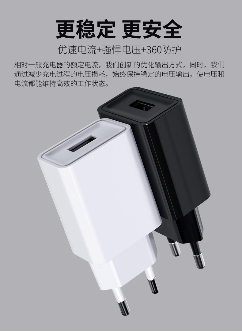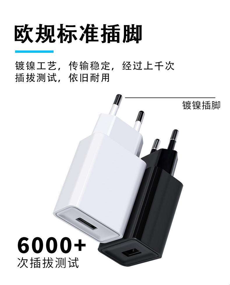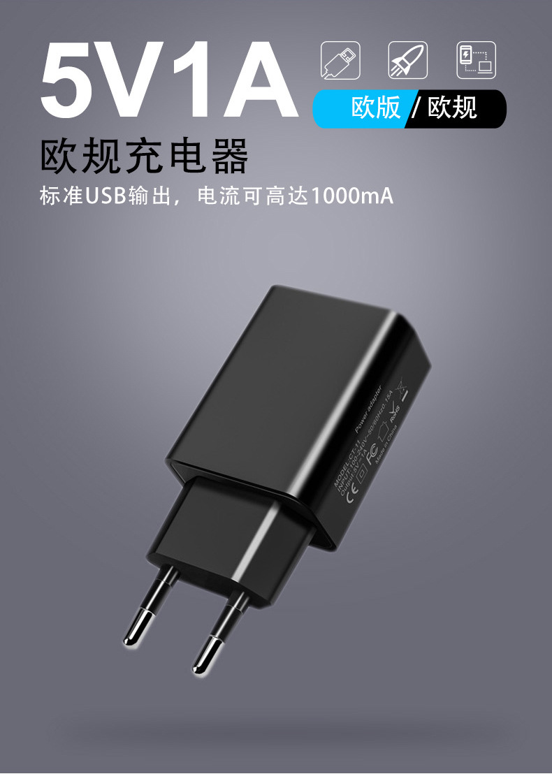 认证5V1A欧规充电器适用于平板手机电源适配器充电头usb插头