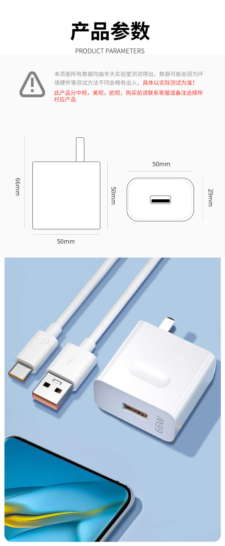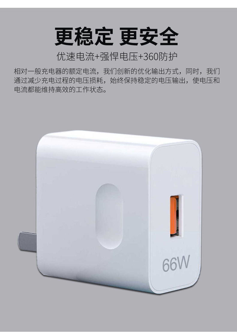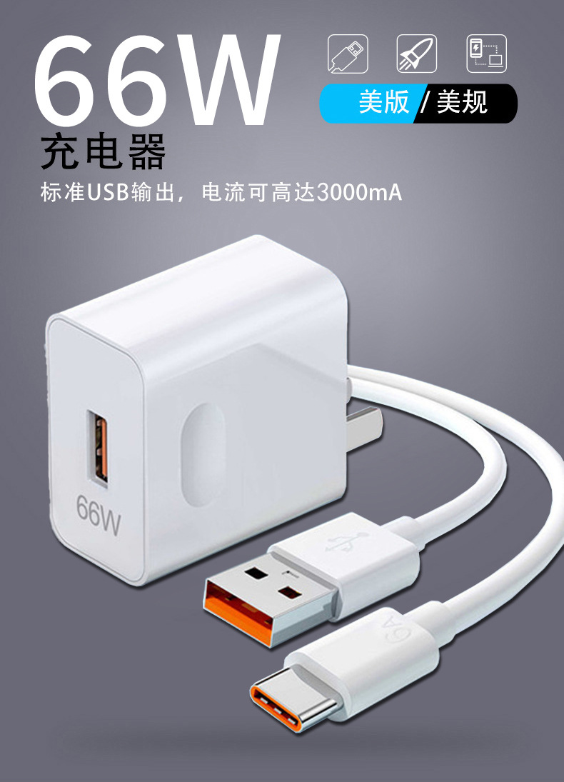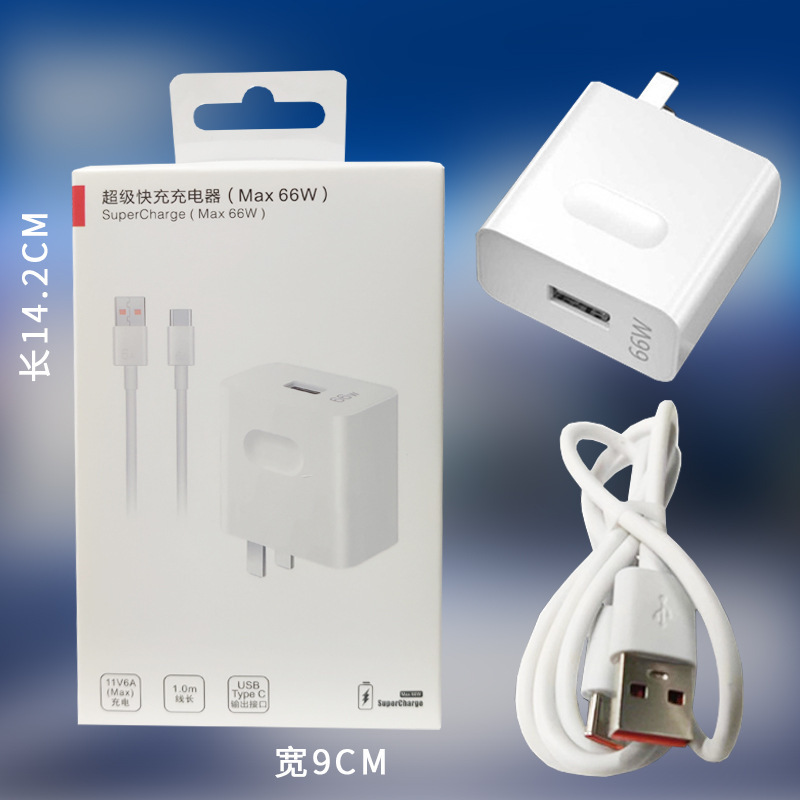 66W超级快充充电器适用于华为手机充电头套装数据线厂家批发