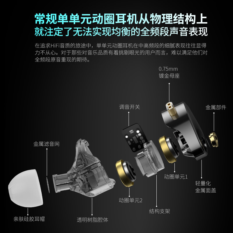 KZ Castor PRO双单元10 mm+10 mm动圈驱动HIFI耳机可调音两种版本