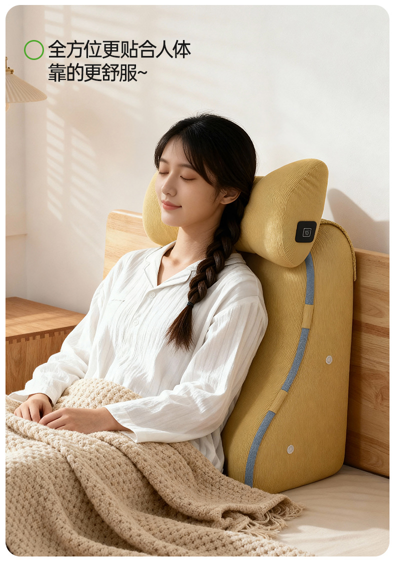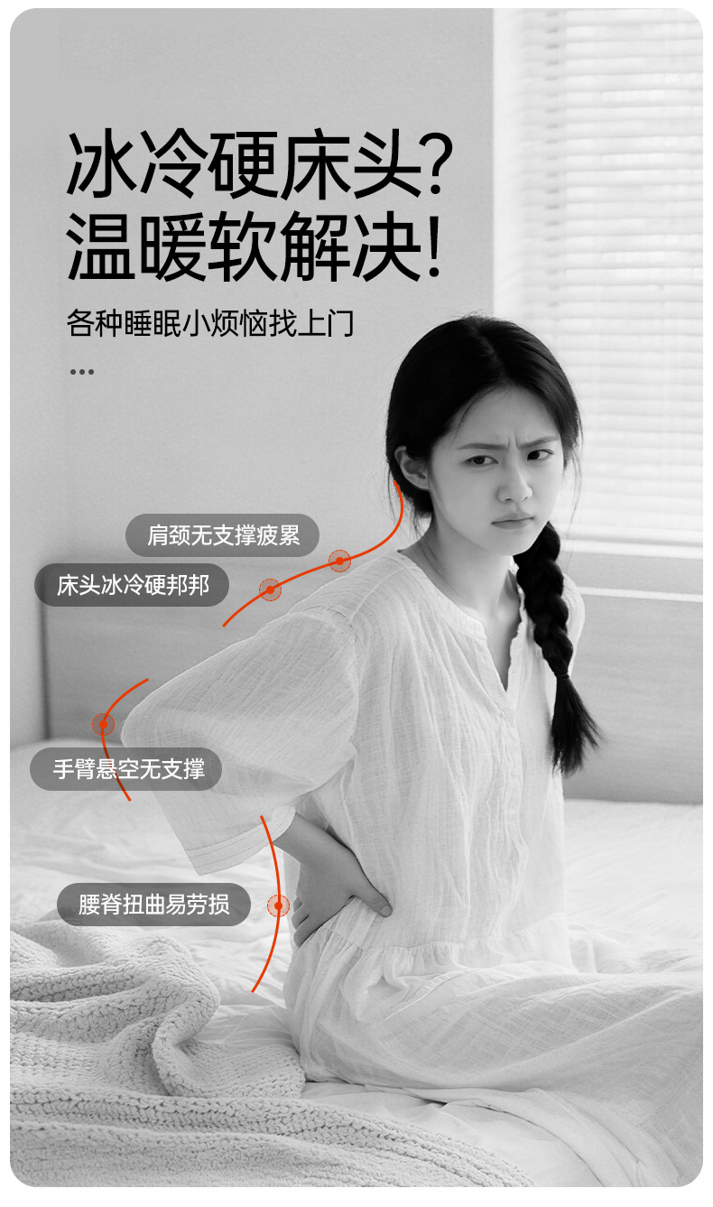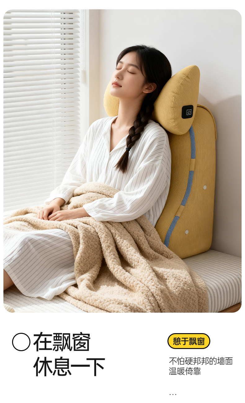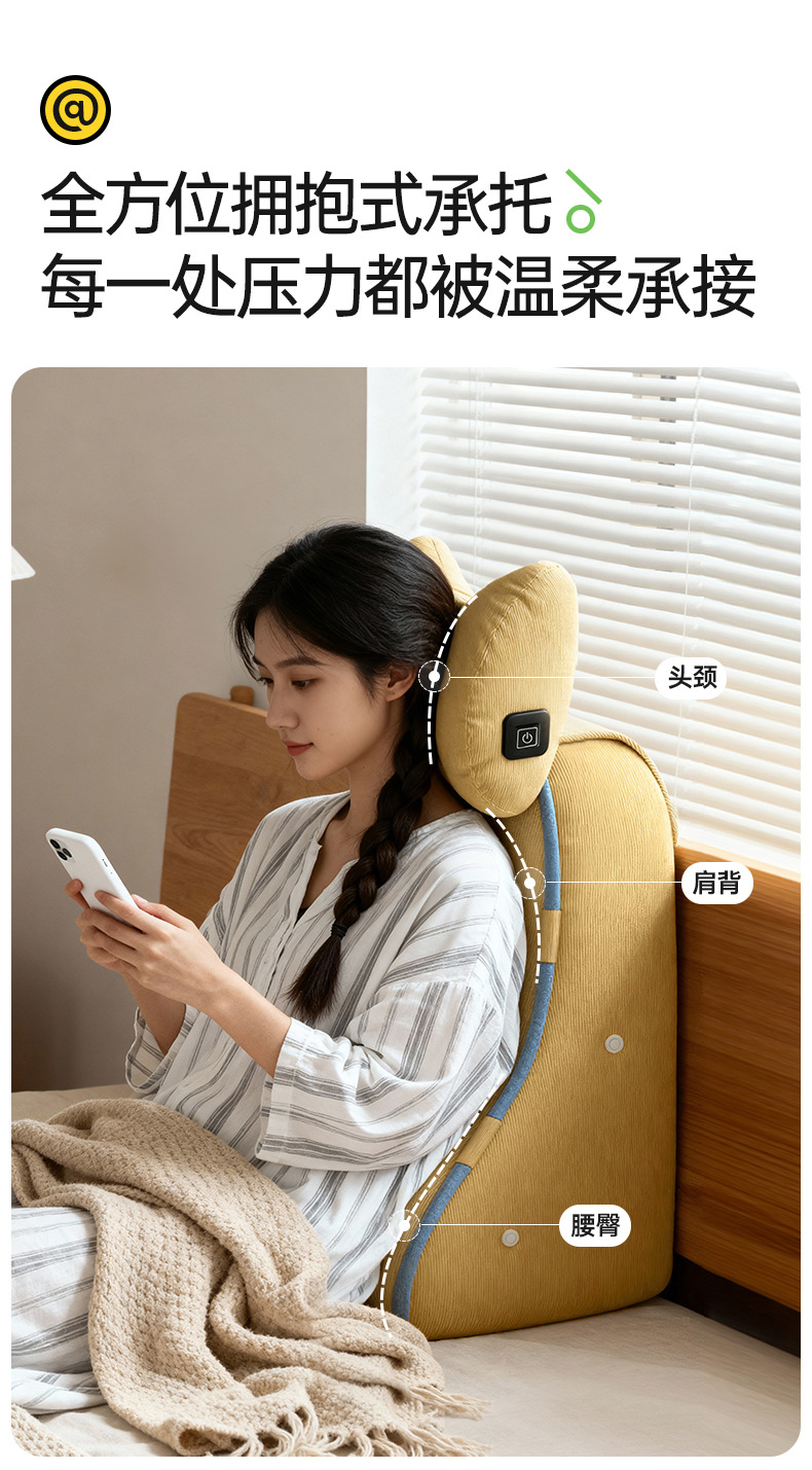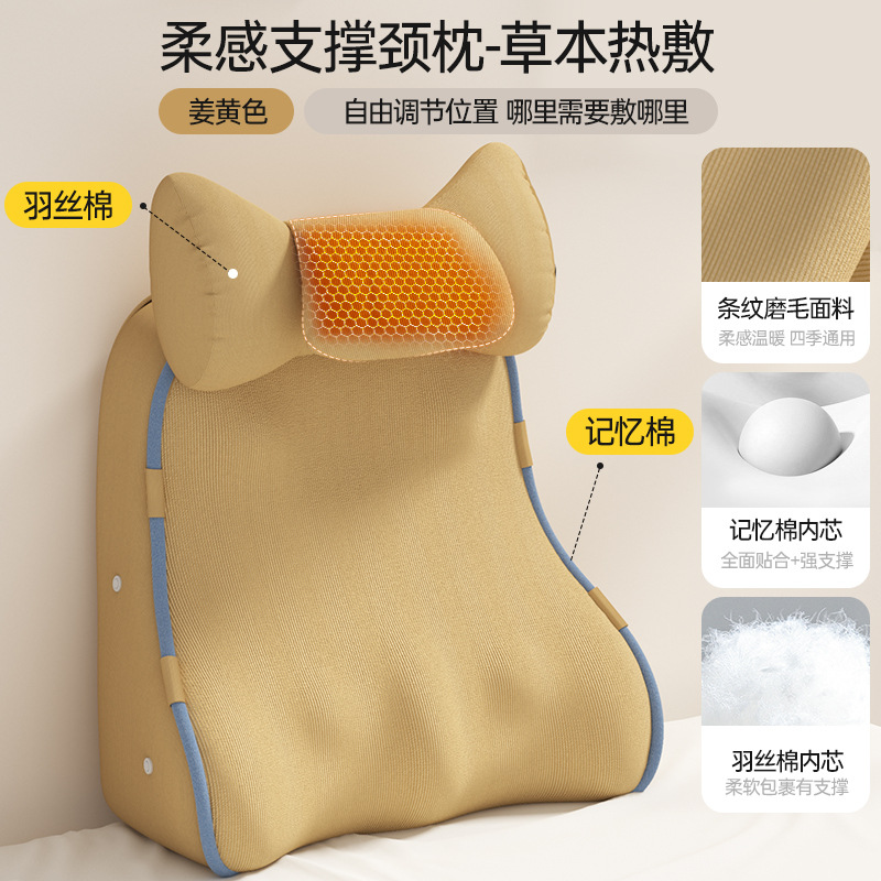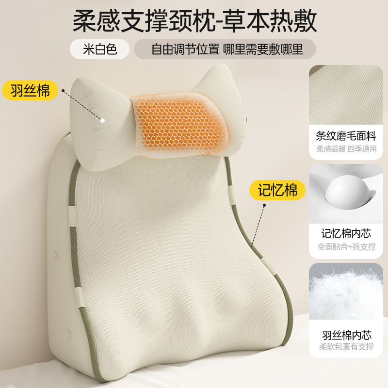 床头软包可加热靠垫靠枕床上大靠背垫半躺神器护颈护腰床靠背靠枕