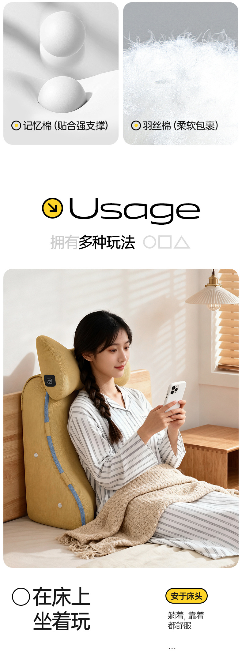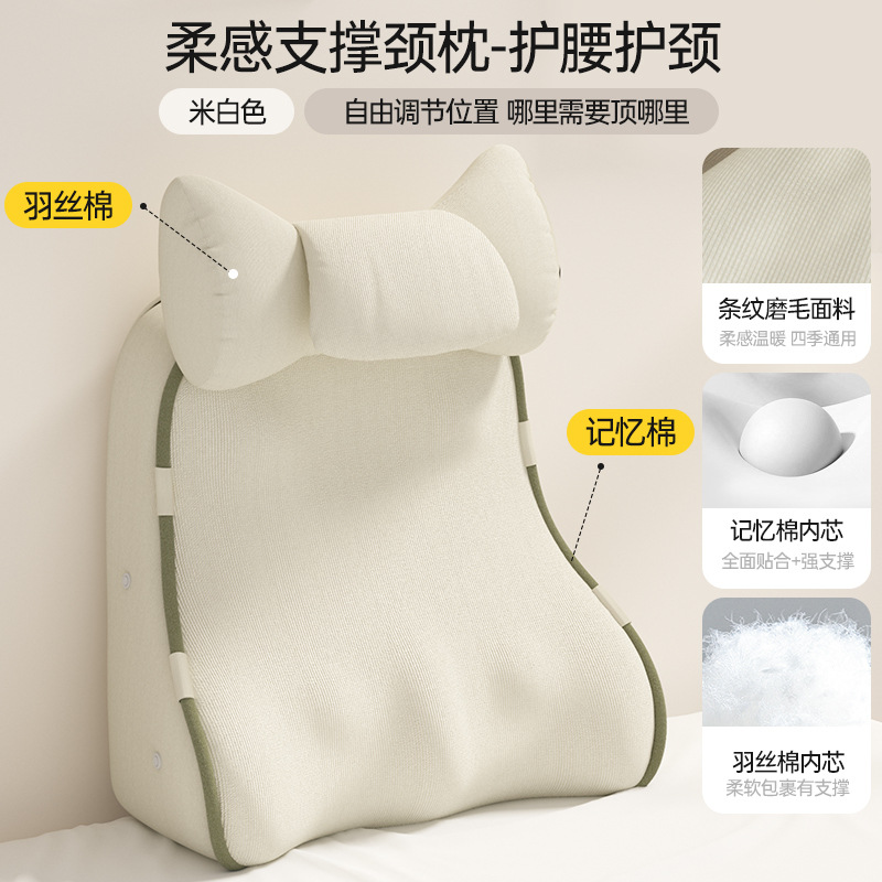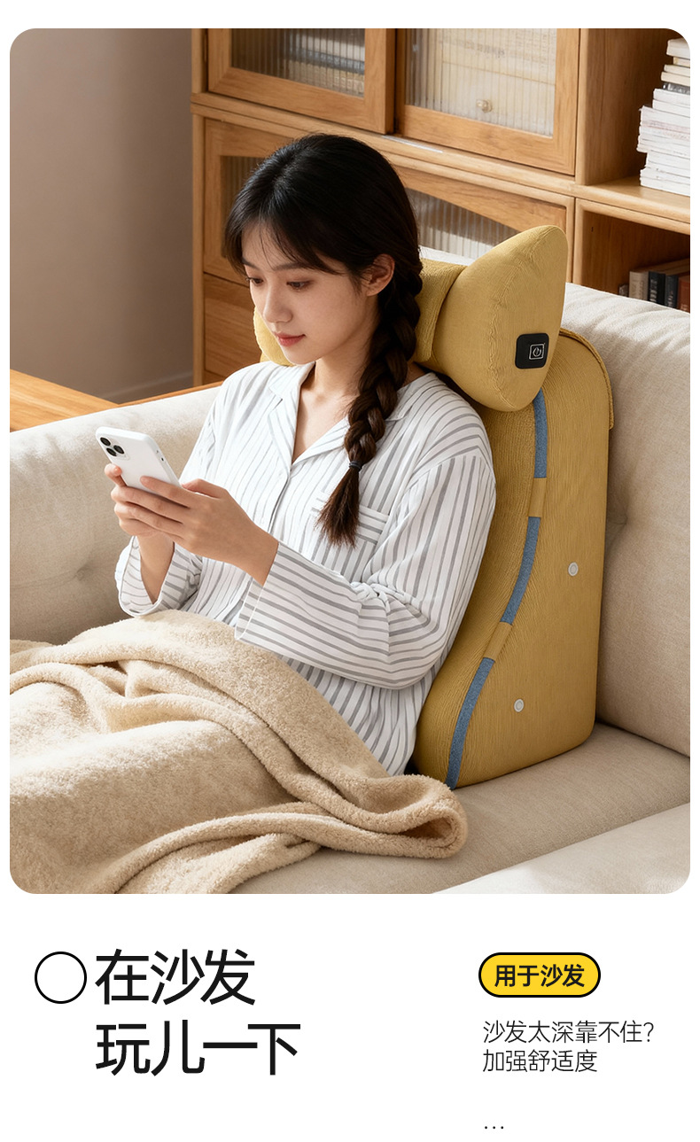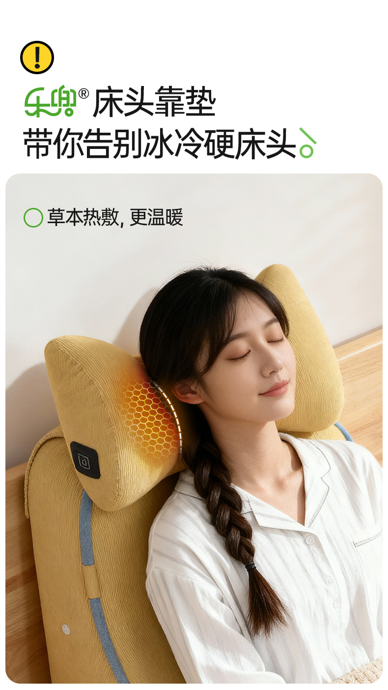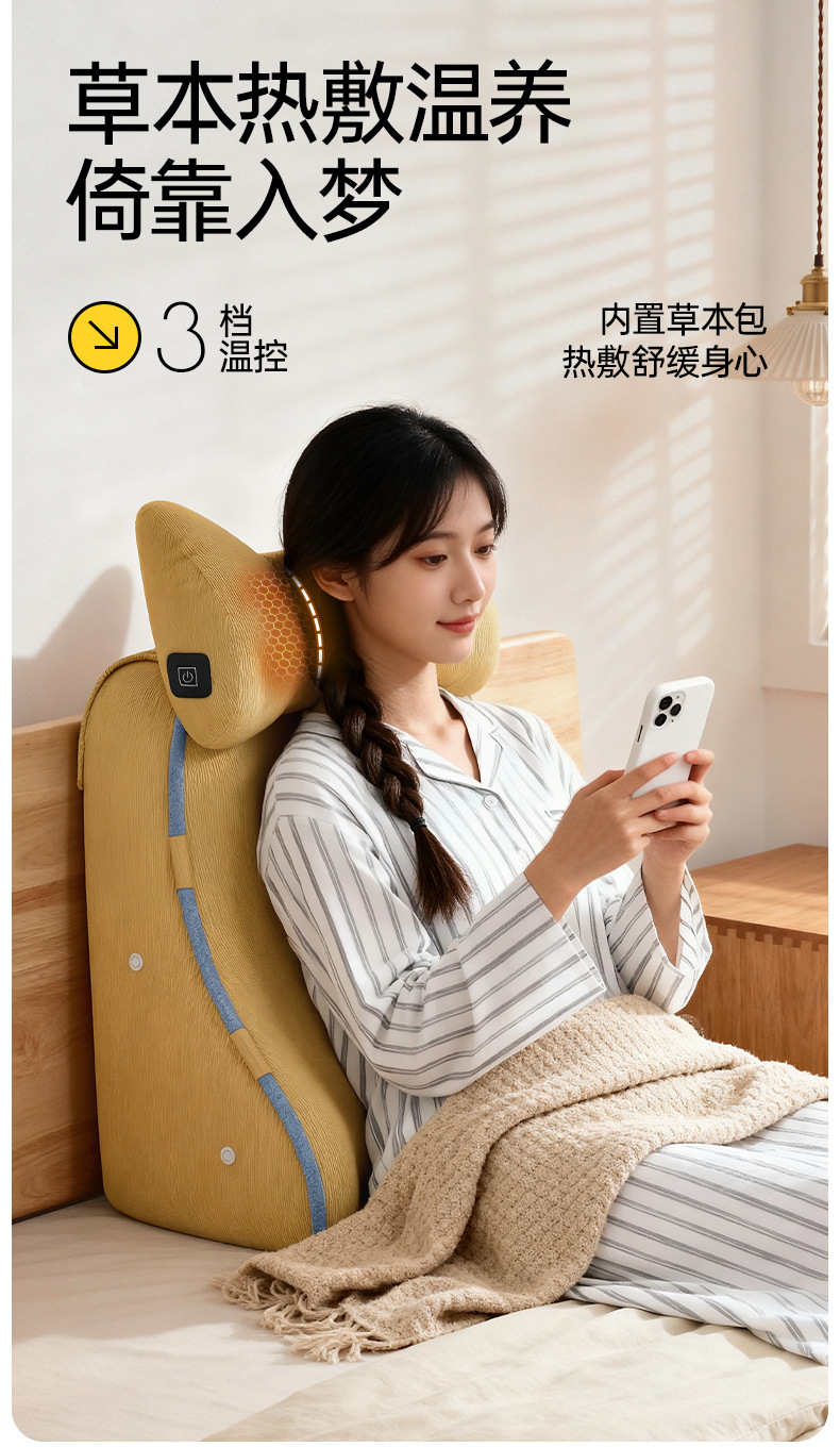 床头软包可加热靠垫靠枕床上大靠背垫半躺神器护颈护腰床靠背靠枕