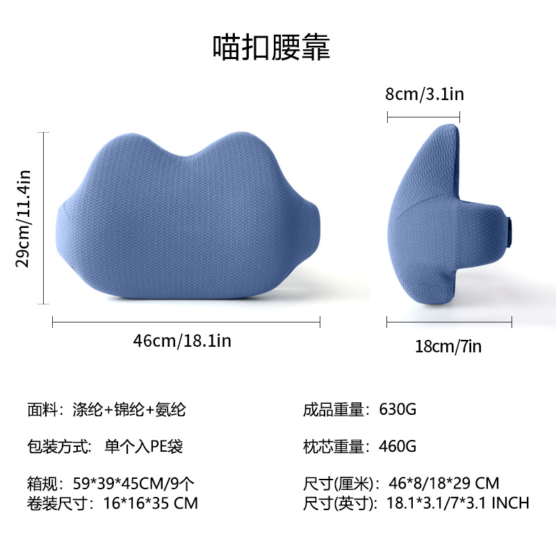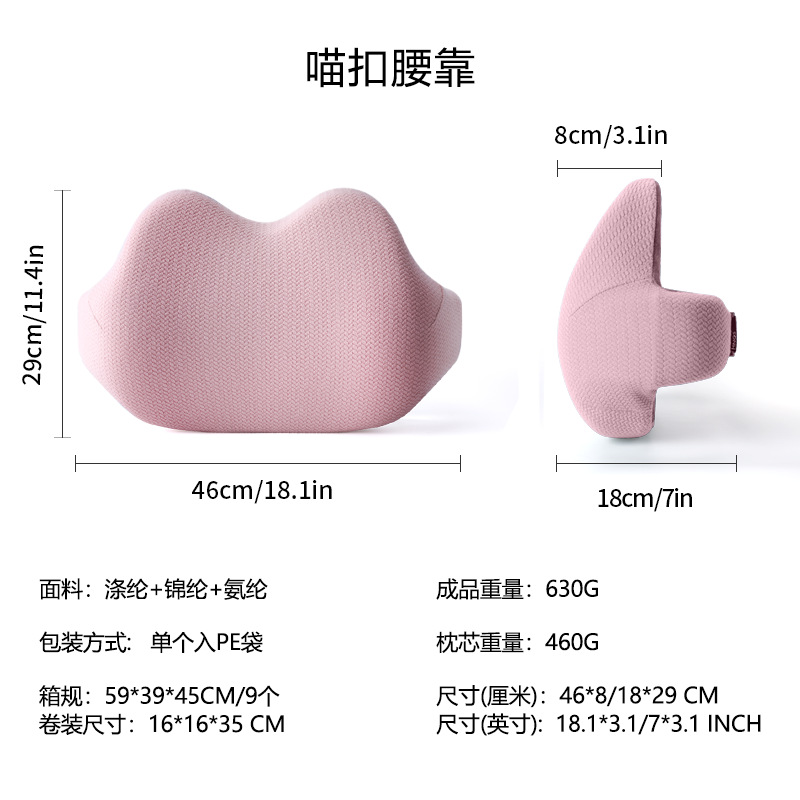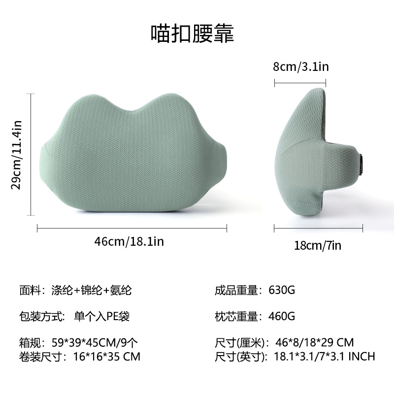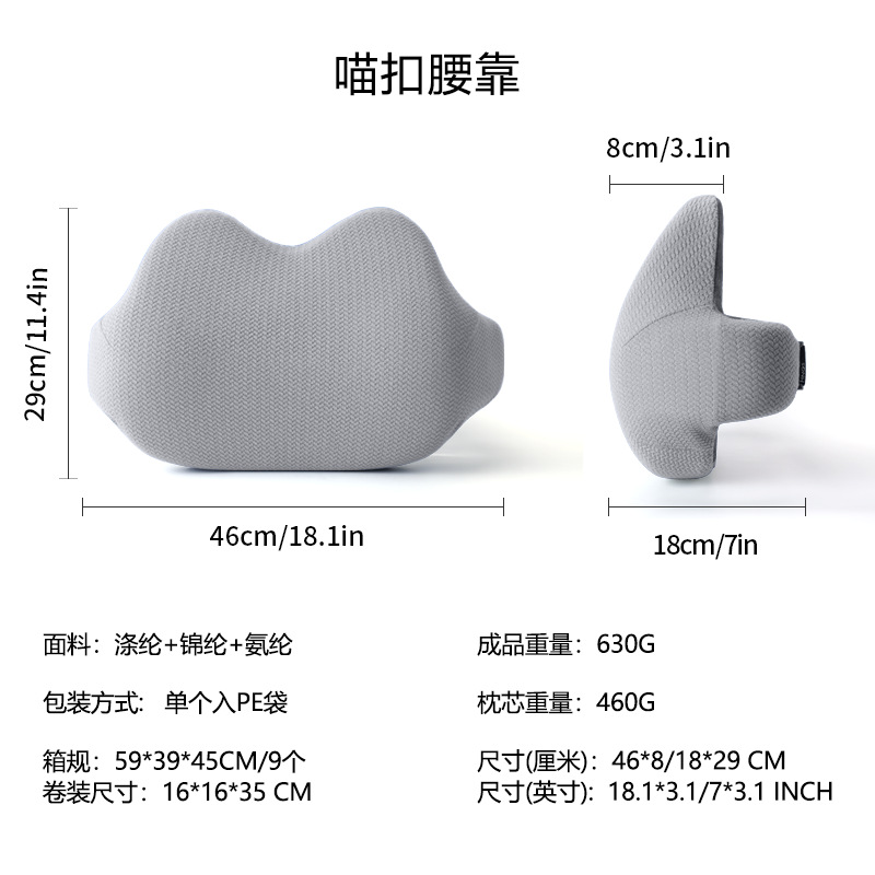 批发跨境腰靠 猫脸座椅护腰医院办公礼品靠枕记忆棉简约回弹腰靠
