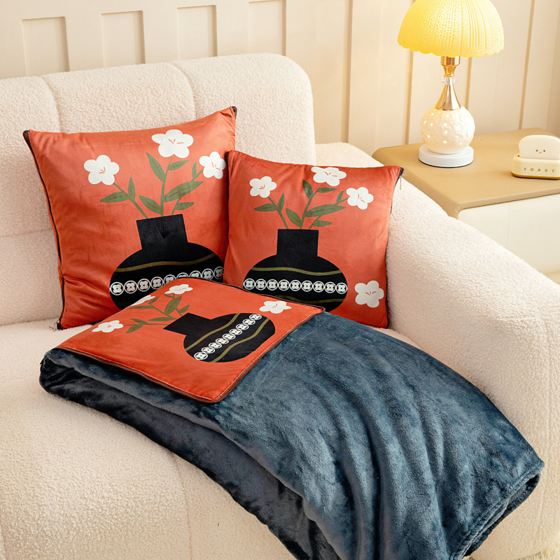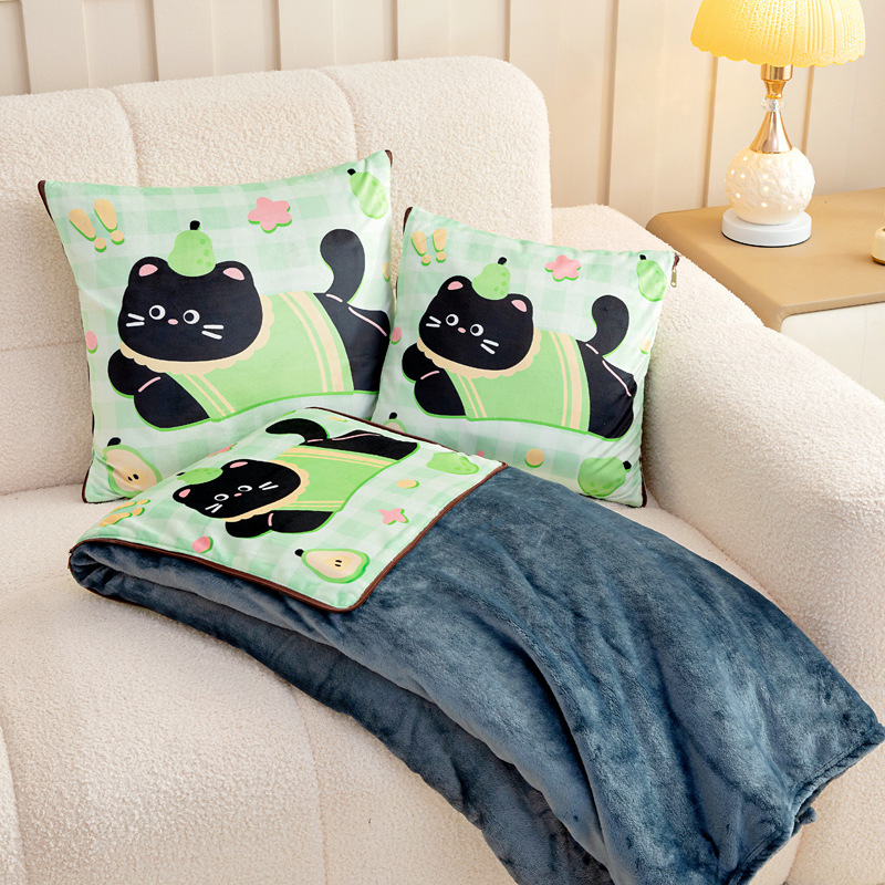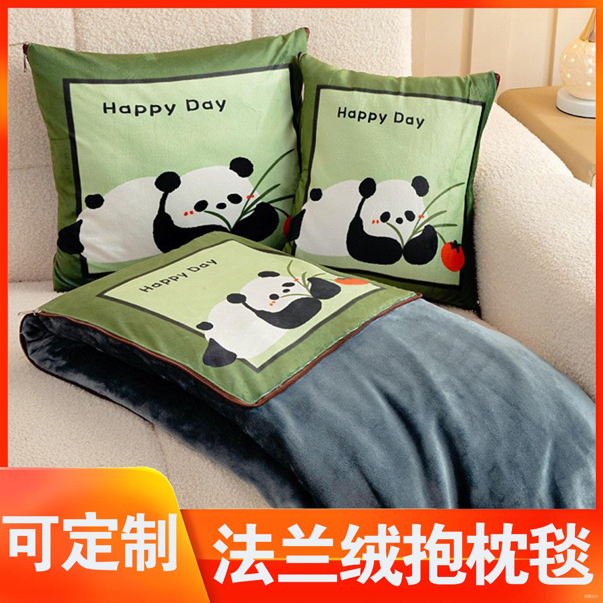 法兰绒抱枕毯子两用来图定制logo车用加厚珊瑚绒汽车午睡毯子靠垫