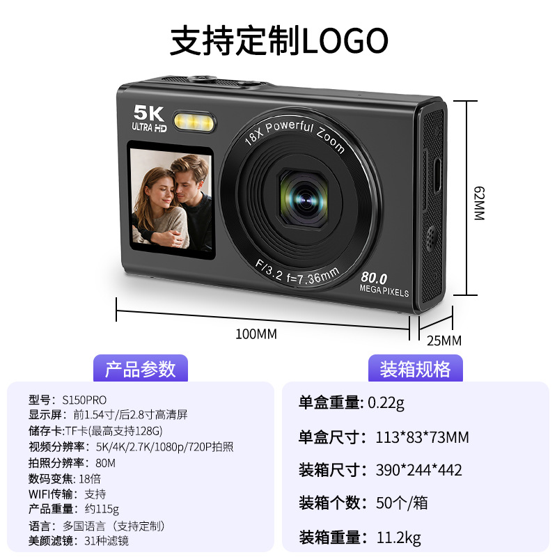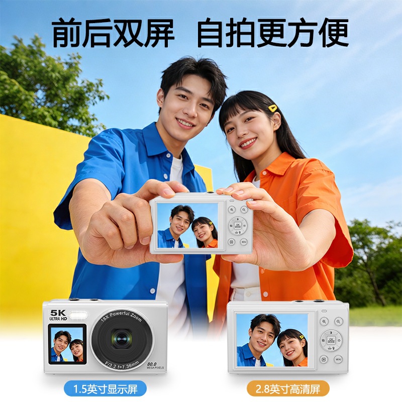 跨境现货ccd相机美颜滤镜5K双屏自拍高清数码相机学生党WiFi互联