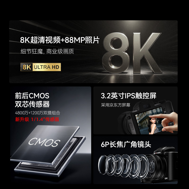 DC226 8K跨境专供数码高清相机4800万传感器学生党自拍双摄美颜相
