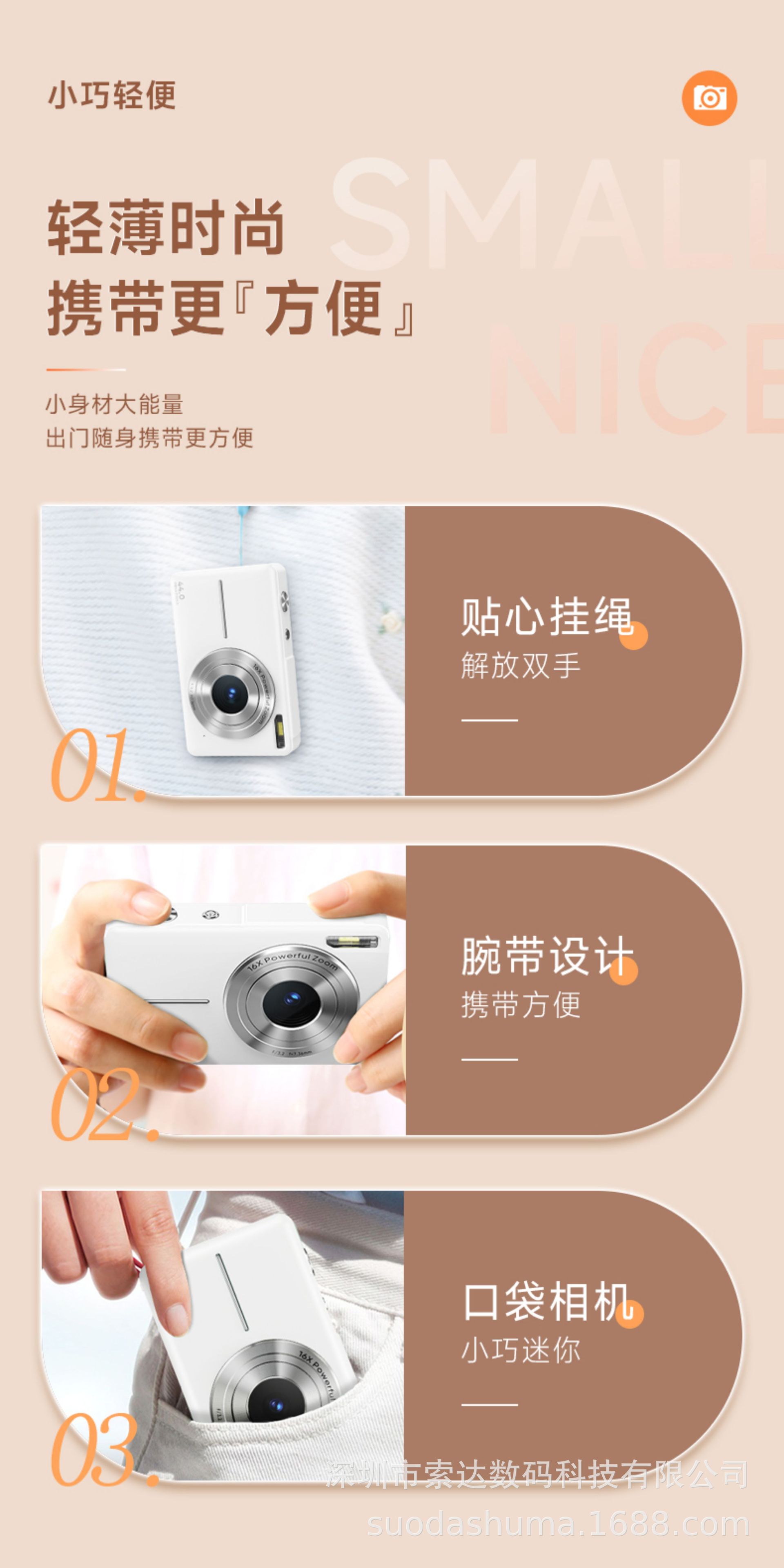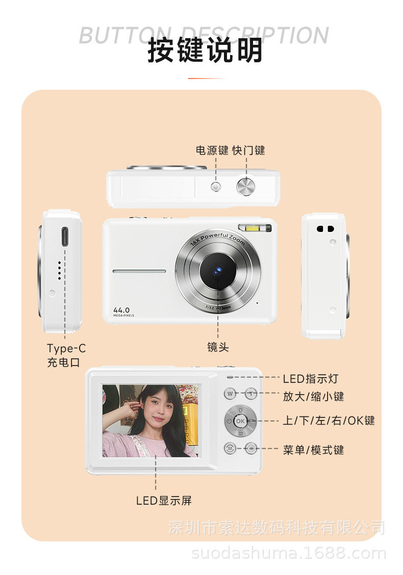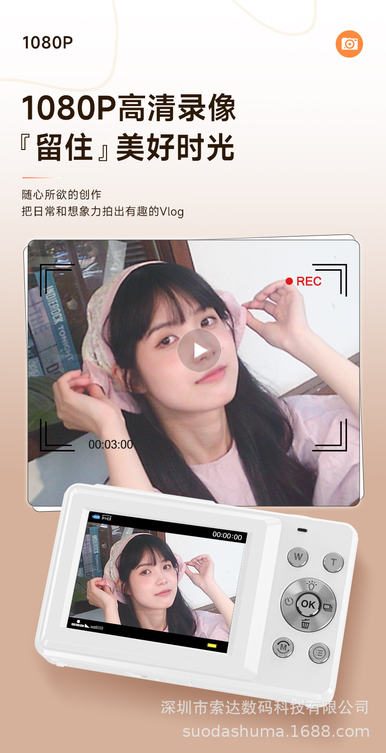 跨境专供高清数码相机学生党迷你相机美颜自拍照相机儿童相机批发