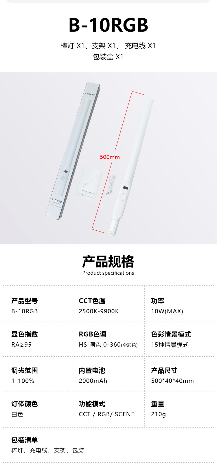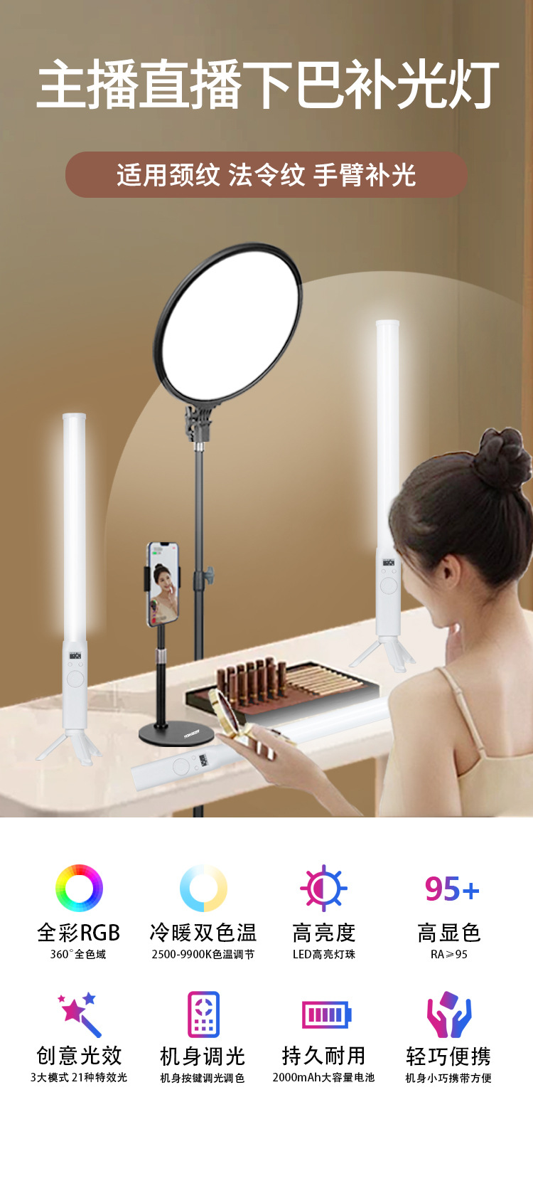 YONGEER手持rgb棒灯下巴颈纹补光灯网红美颜直播专用便携直播灯