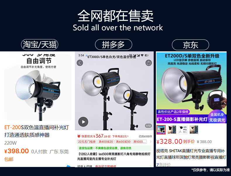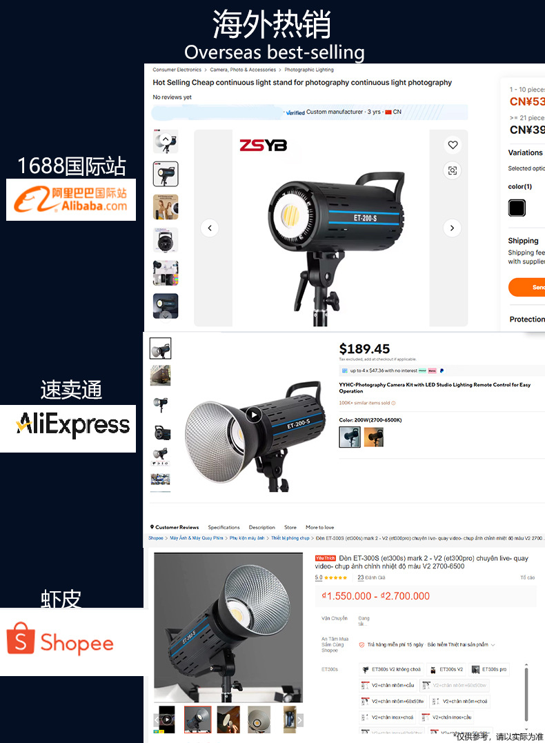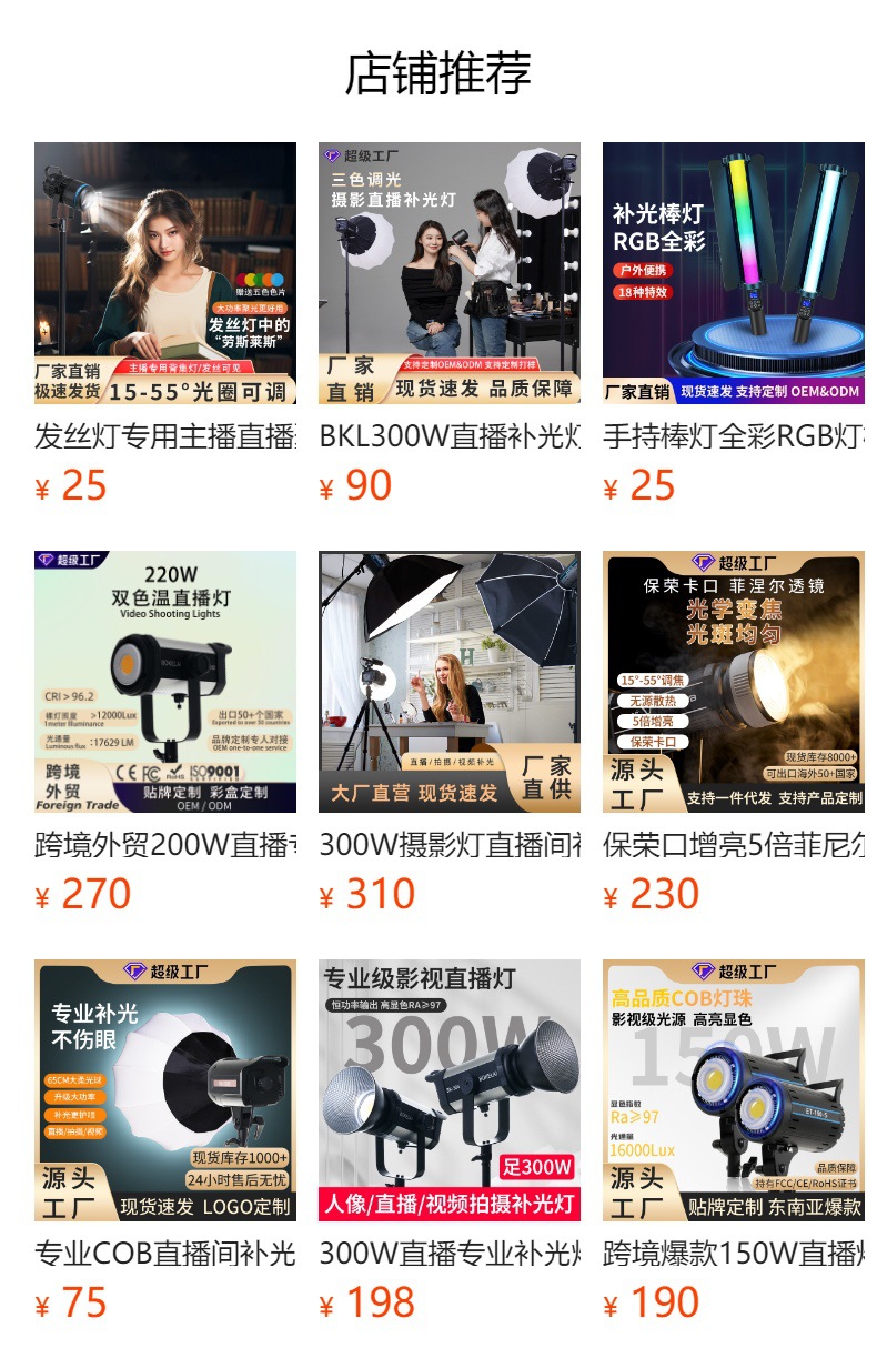 亚马逊专供200W直播补光灯直播背景打光灯拍照摄影美颜柔光聚光灯