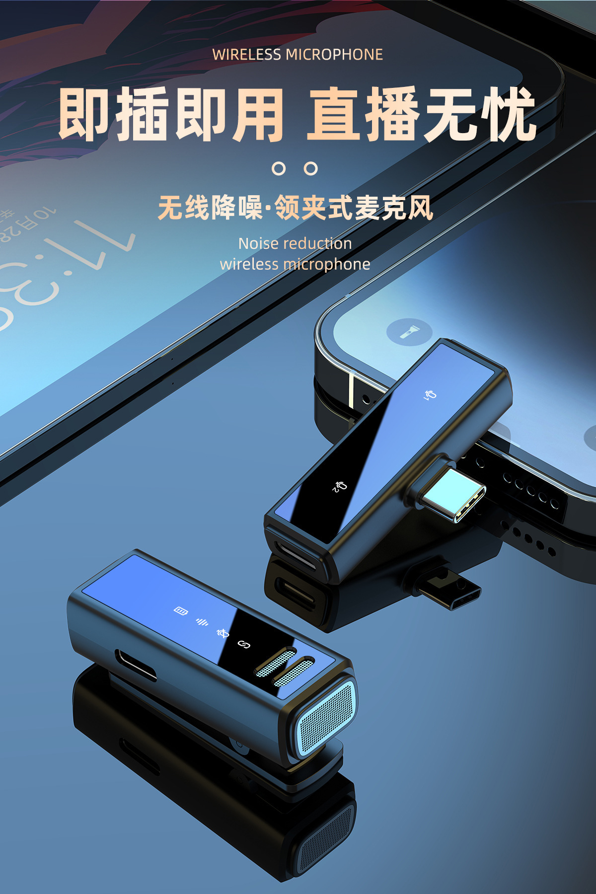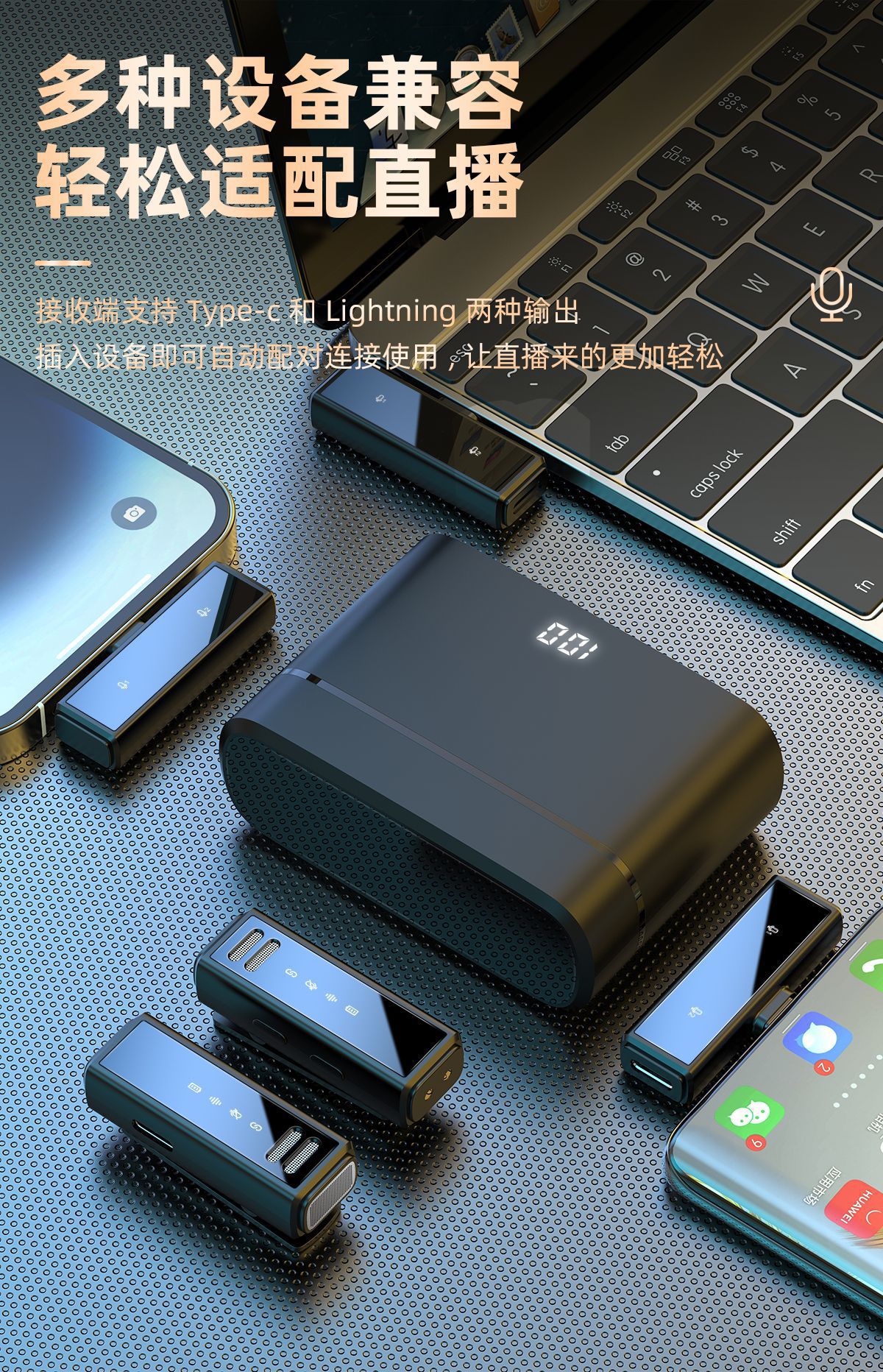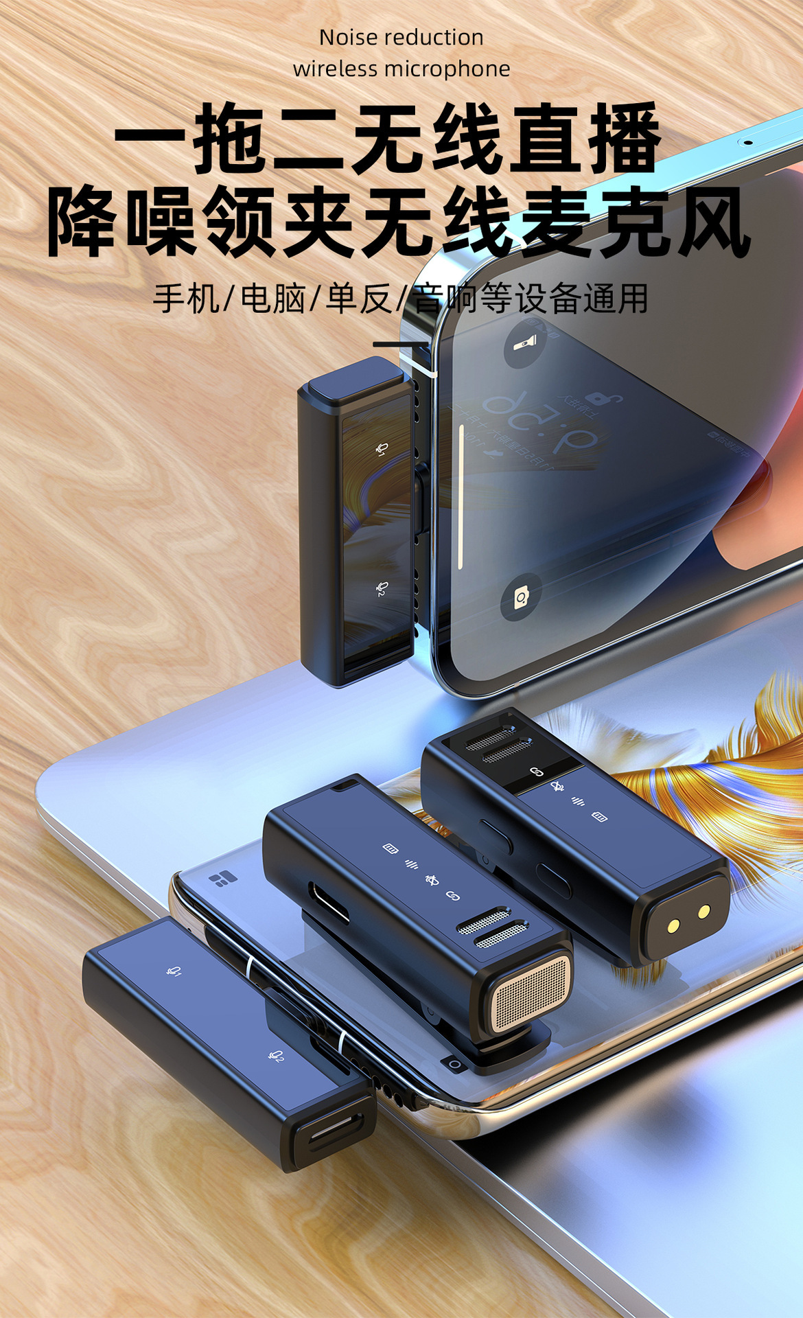 新款领夹麦克风j88智能降噪直播声卡专业收音无线麦迷你音响话筒