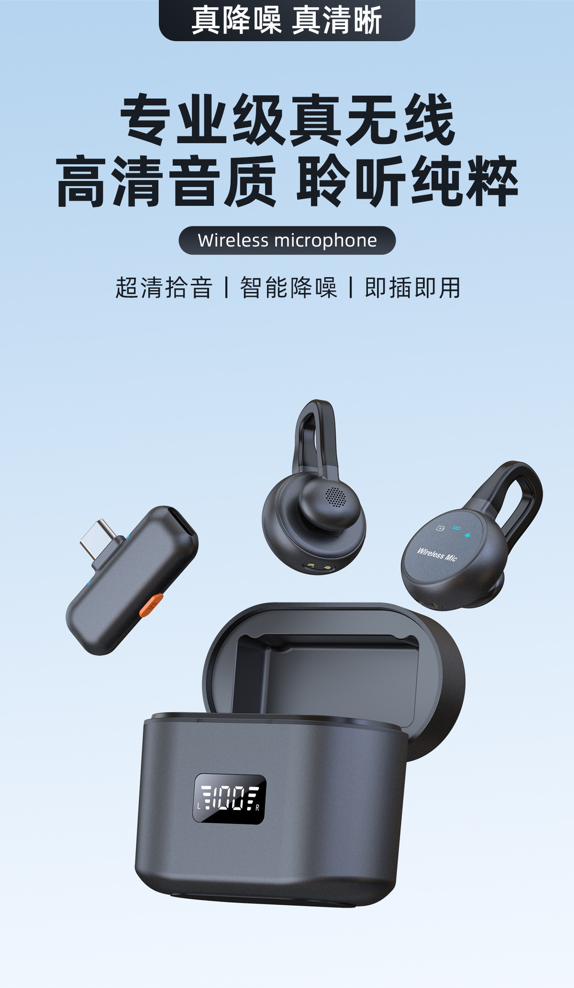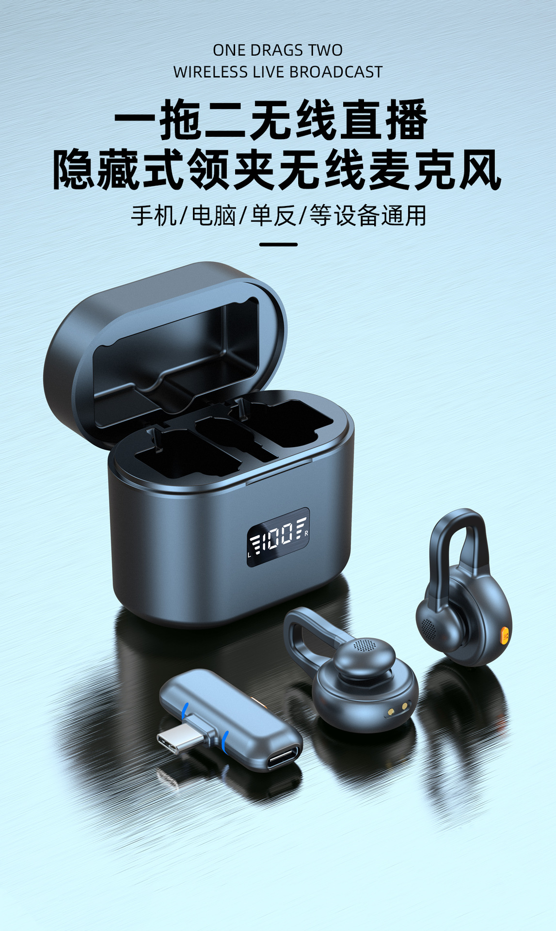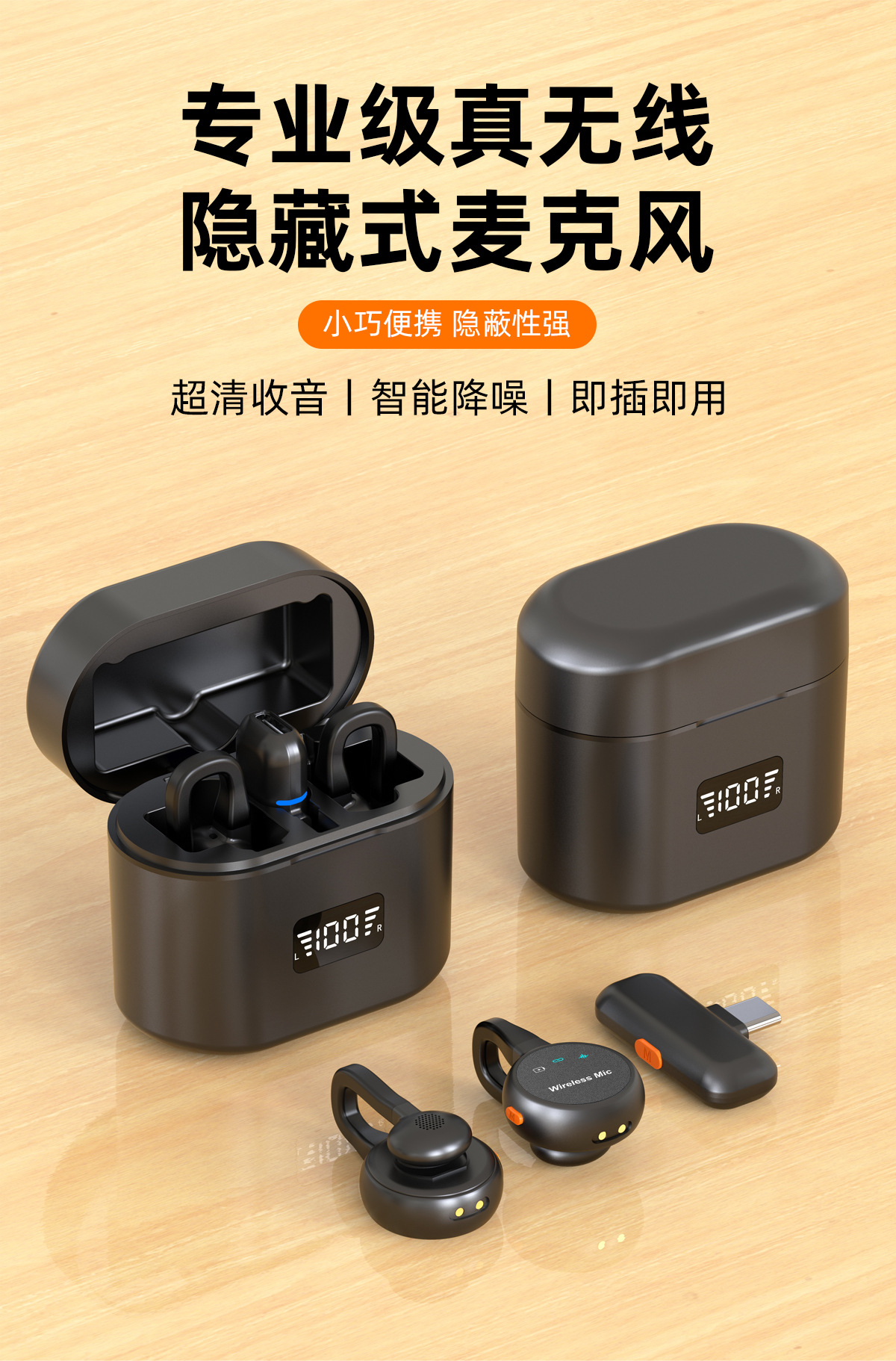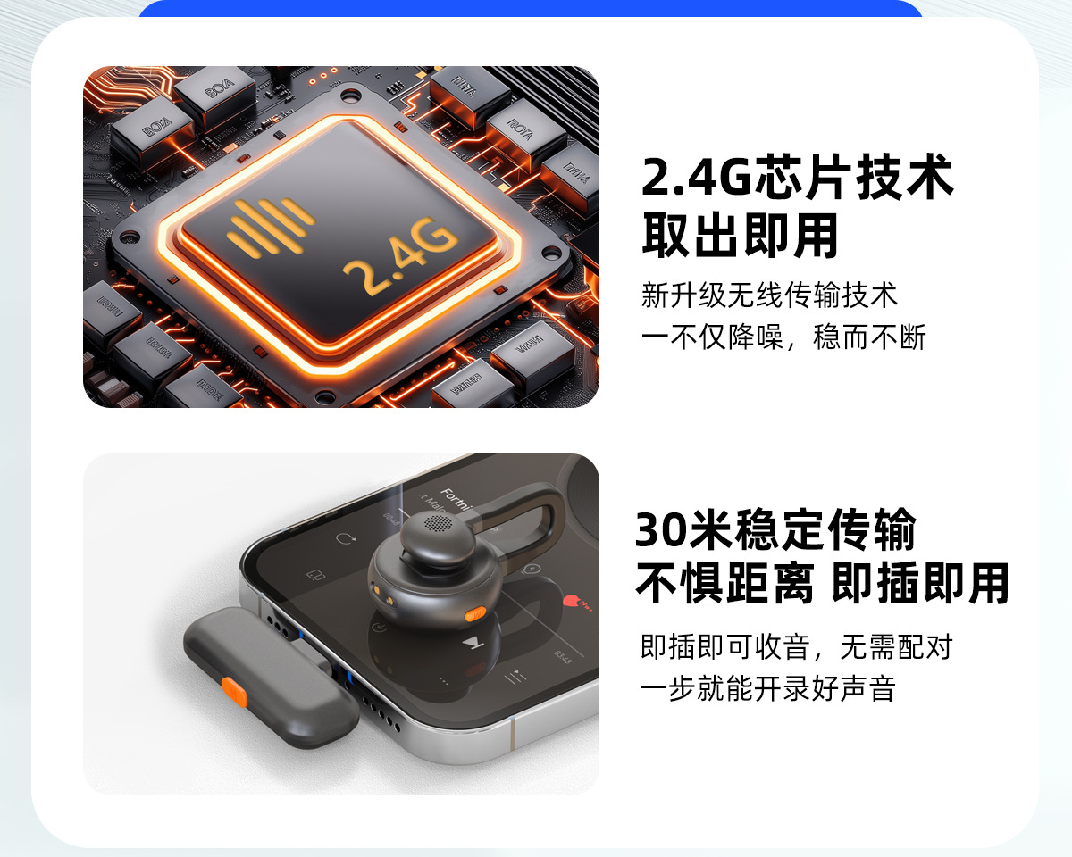 跨境新款2025无线领夹麦克风私模弓形隐藏式直播麦降噪厂家批发