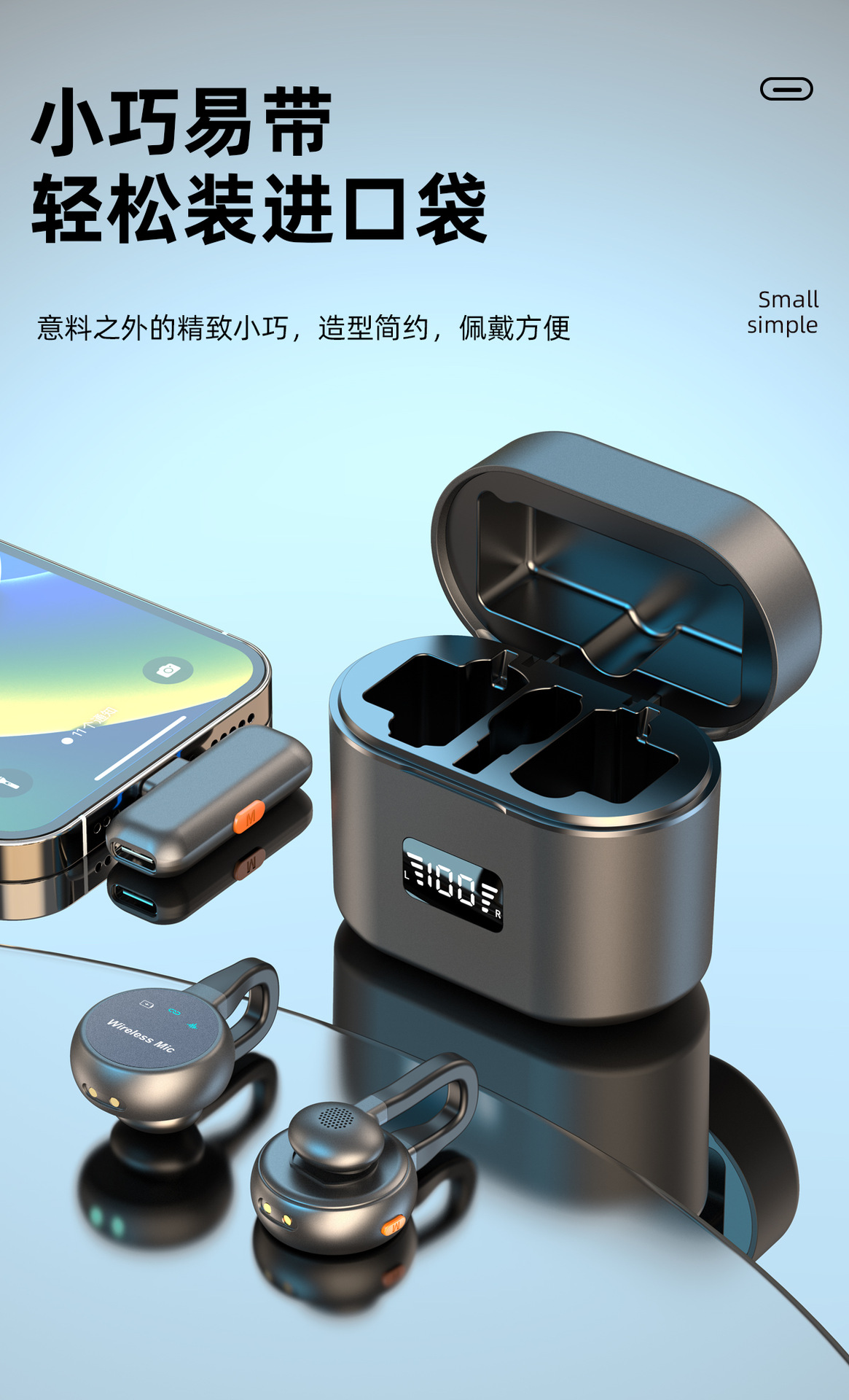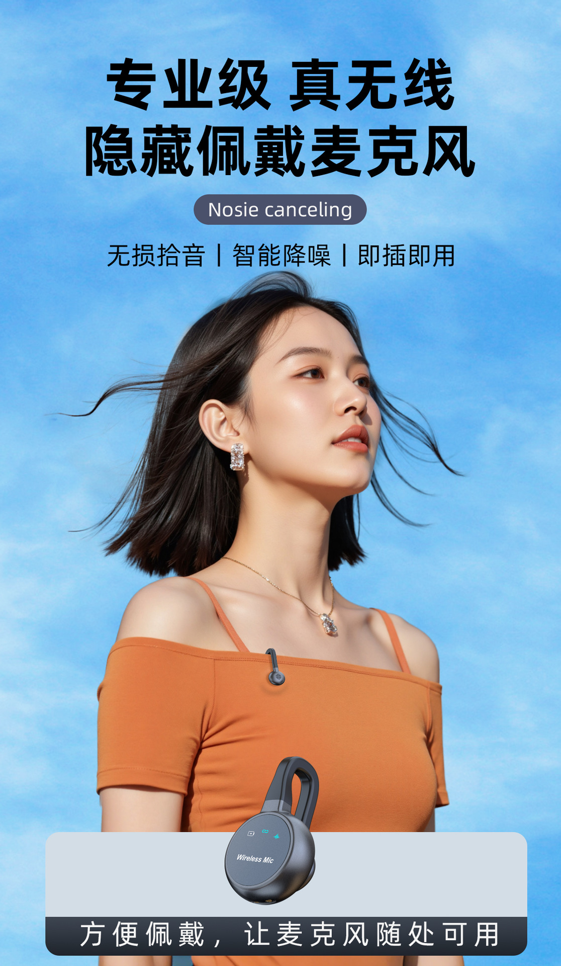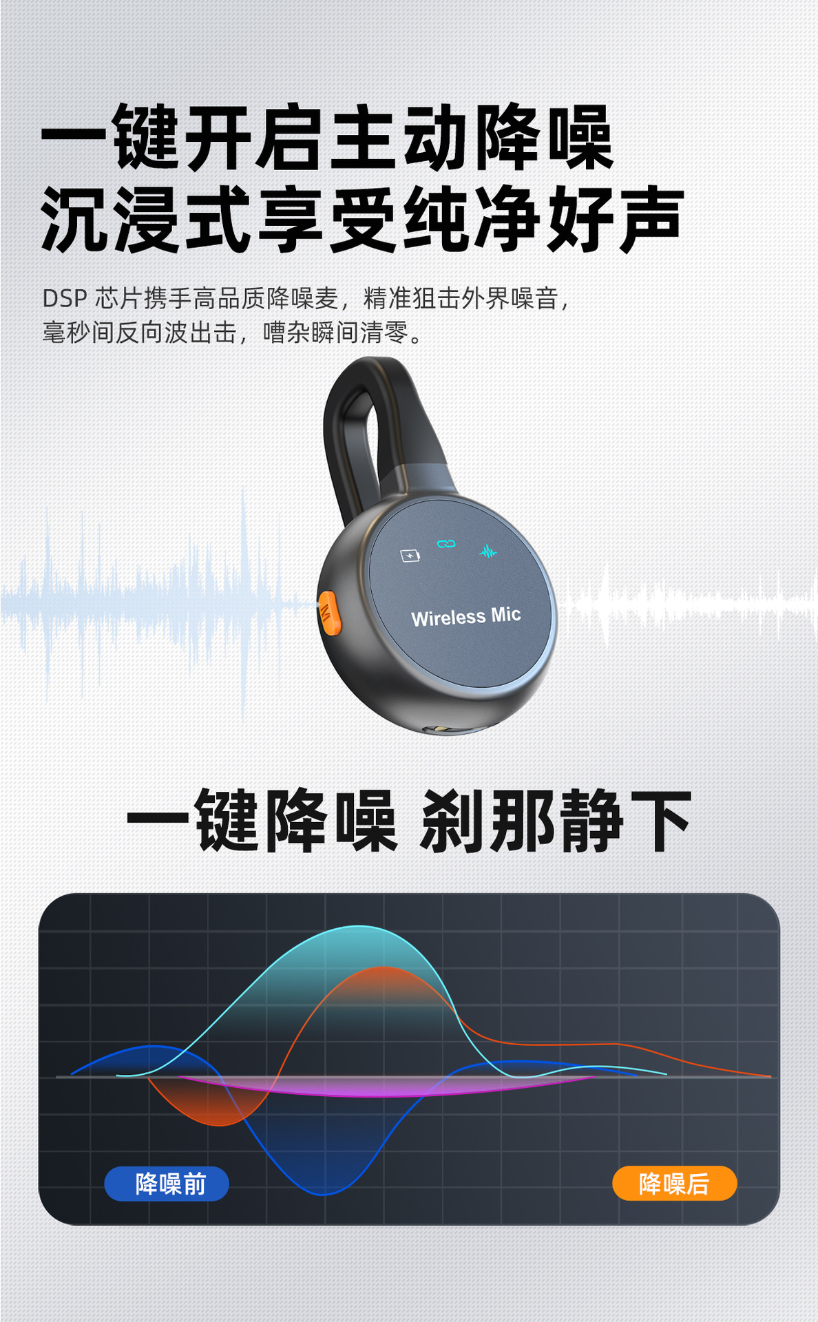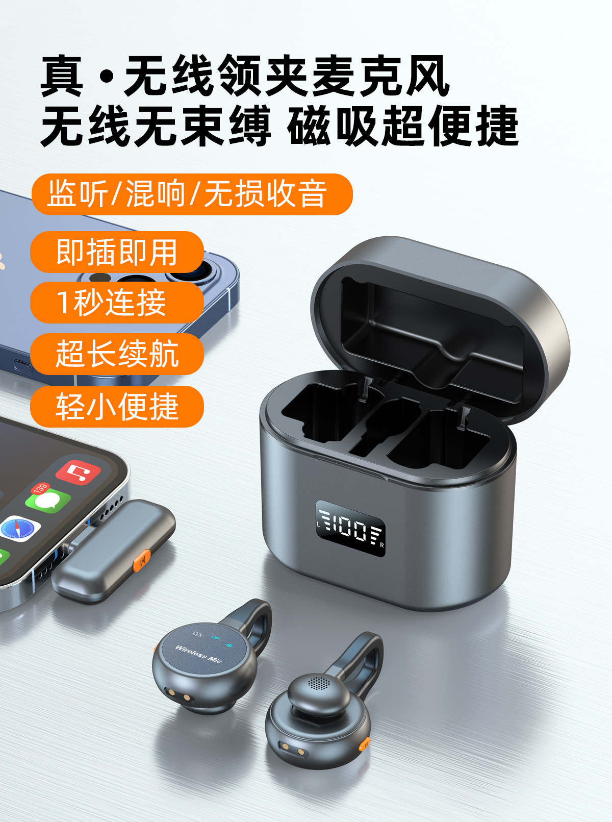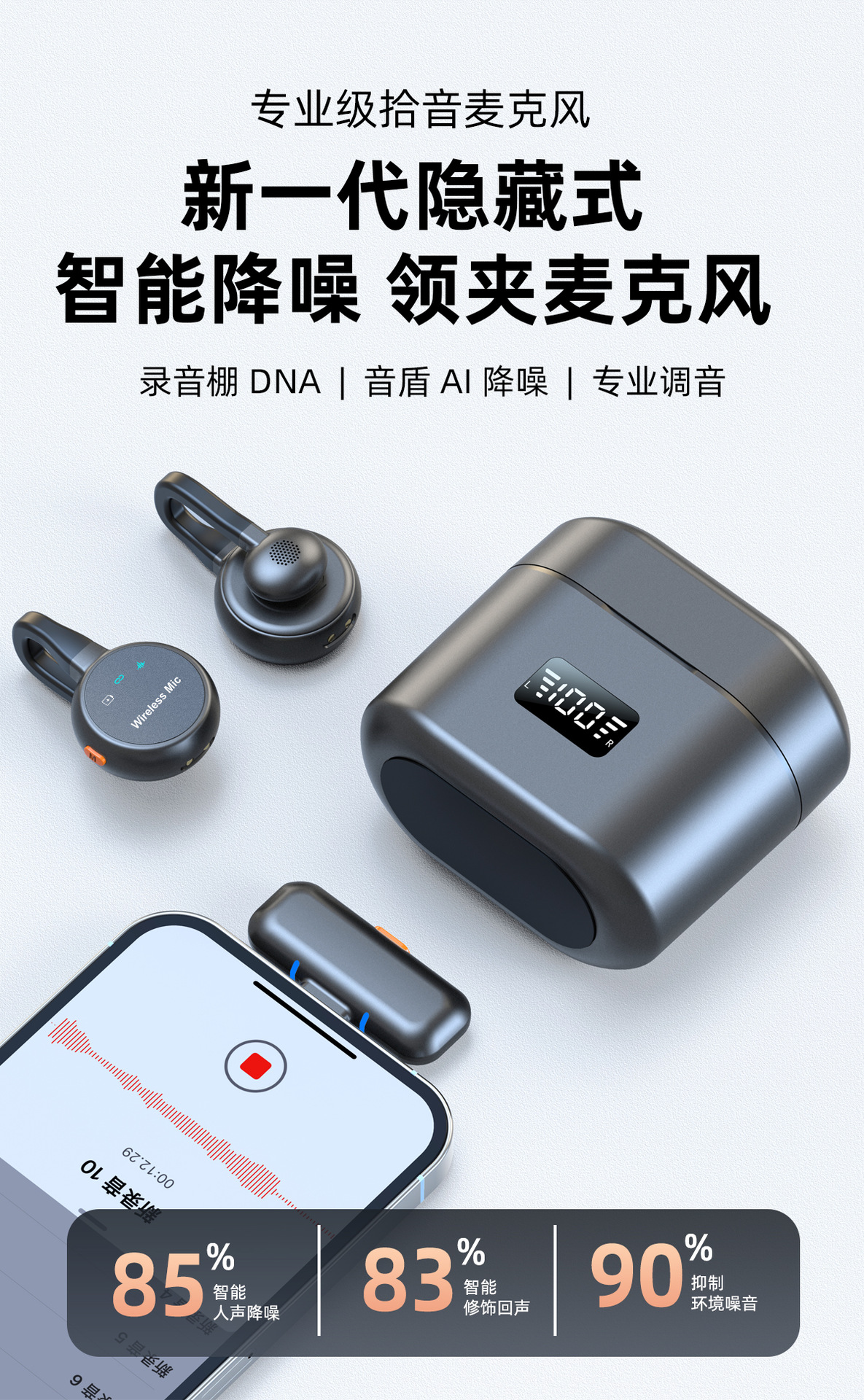 跨境新款2025无线领夹麦克风私模弓形隐藏式直播麦降噪厂家批发
