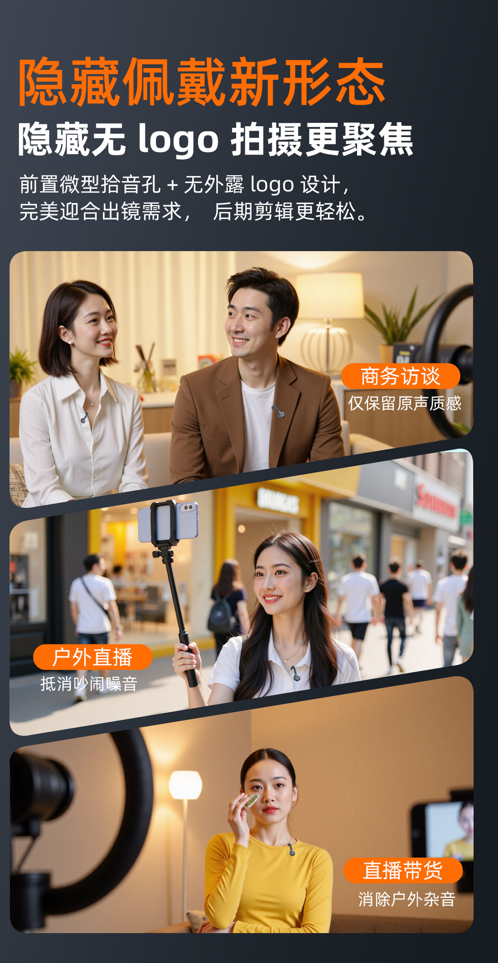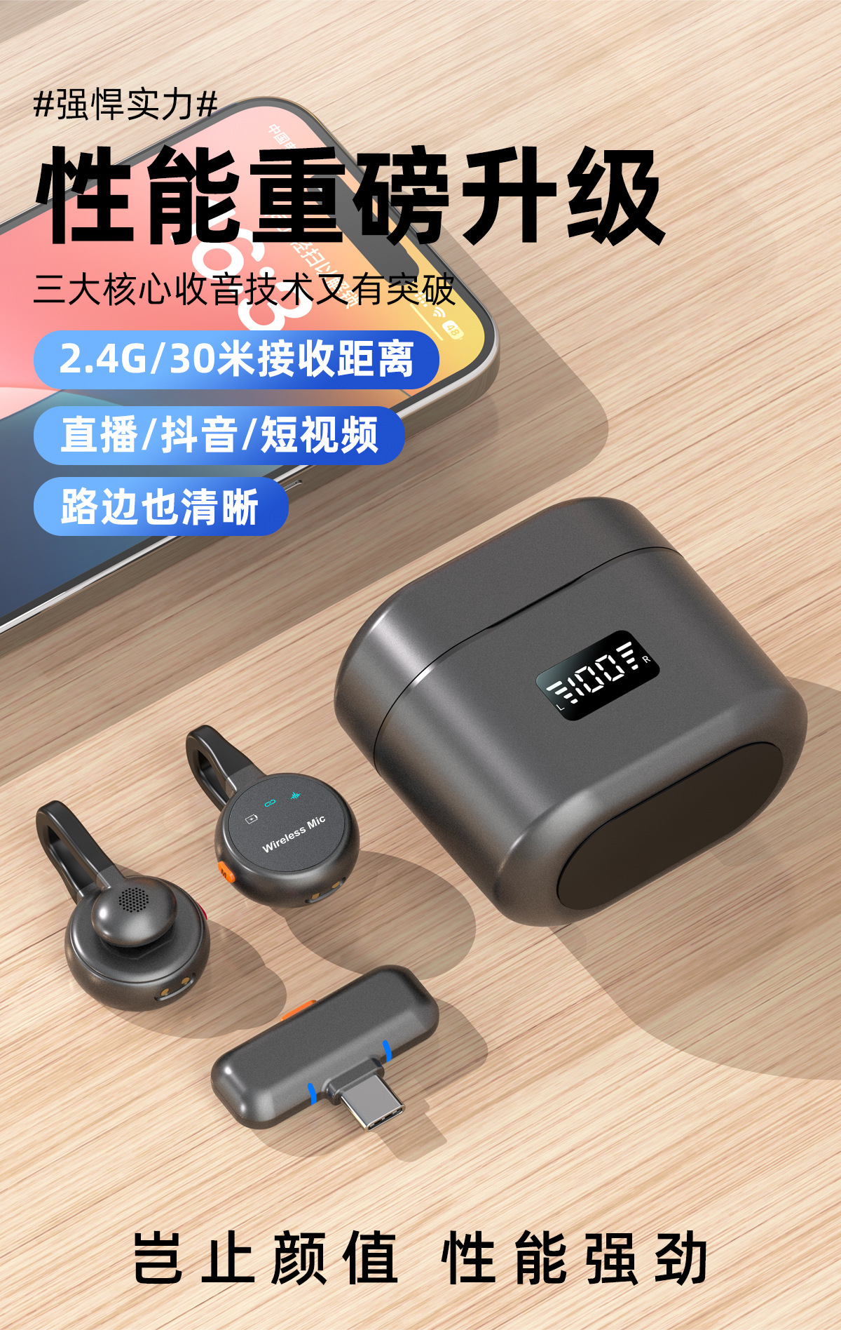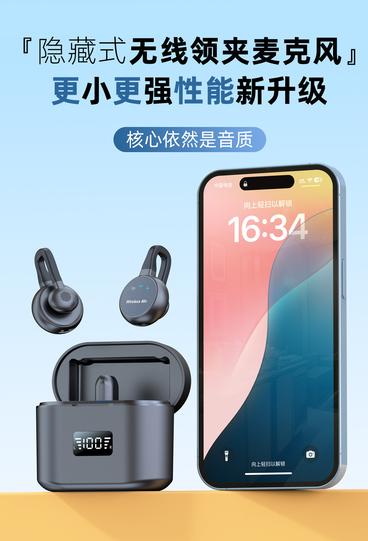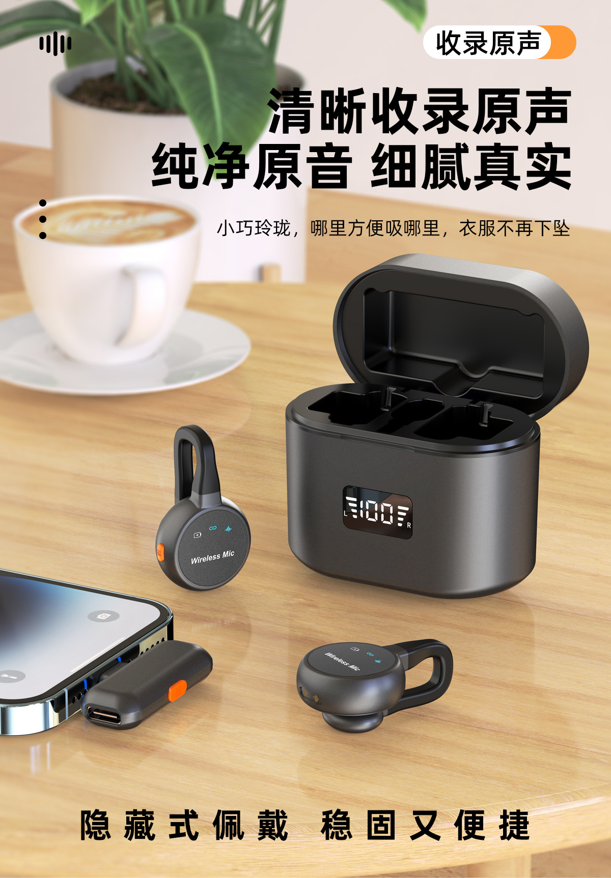 跨境新款2025无线领夹麦克风私模弓形隐藏式直播麦降噪厂家批发
