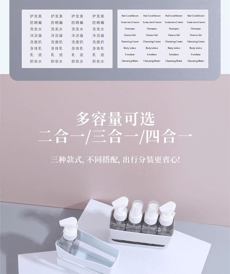 四合一化妆品护肤出行洗发水乳液瓶沐浴露便携洗漱套装旅行分装瓶